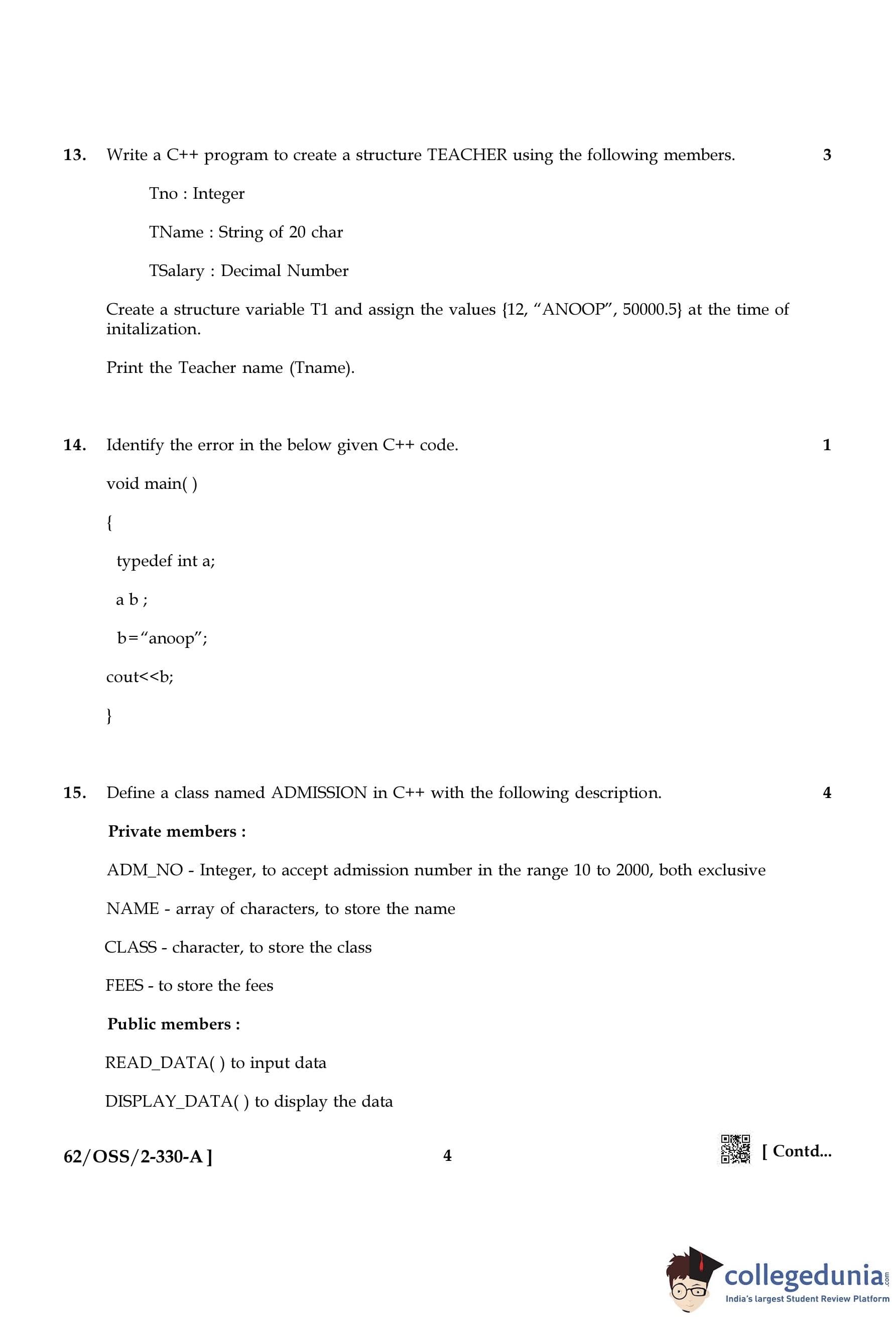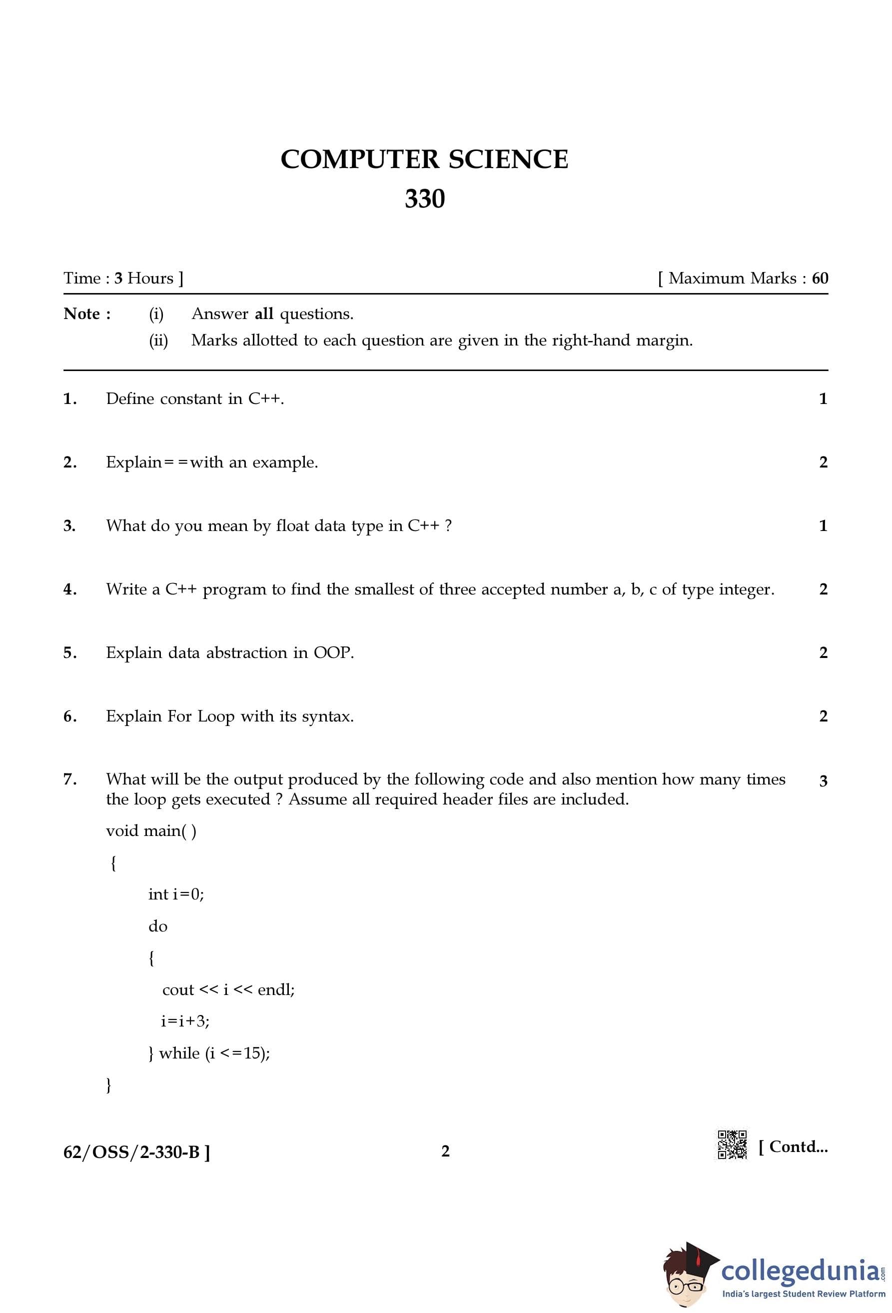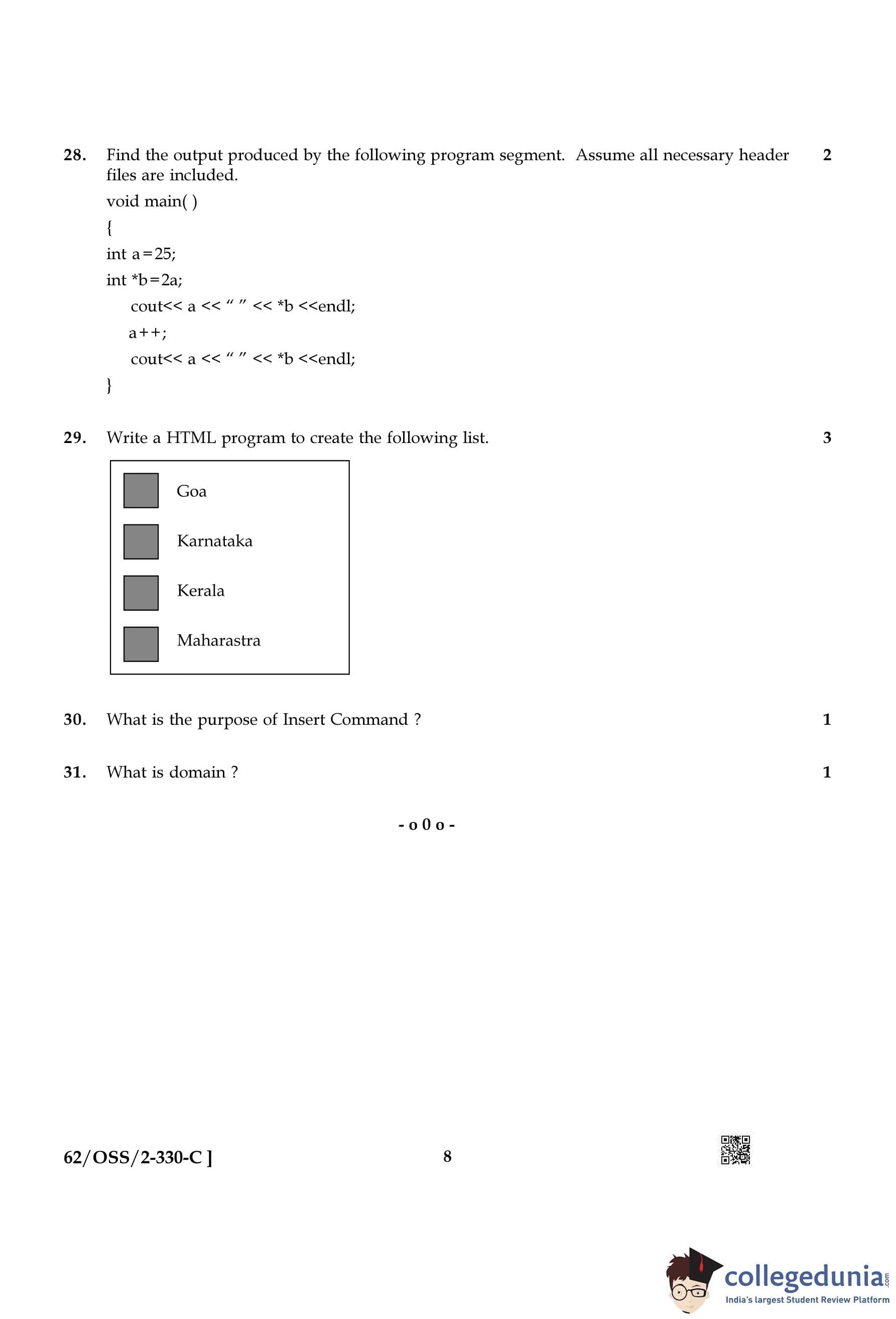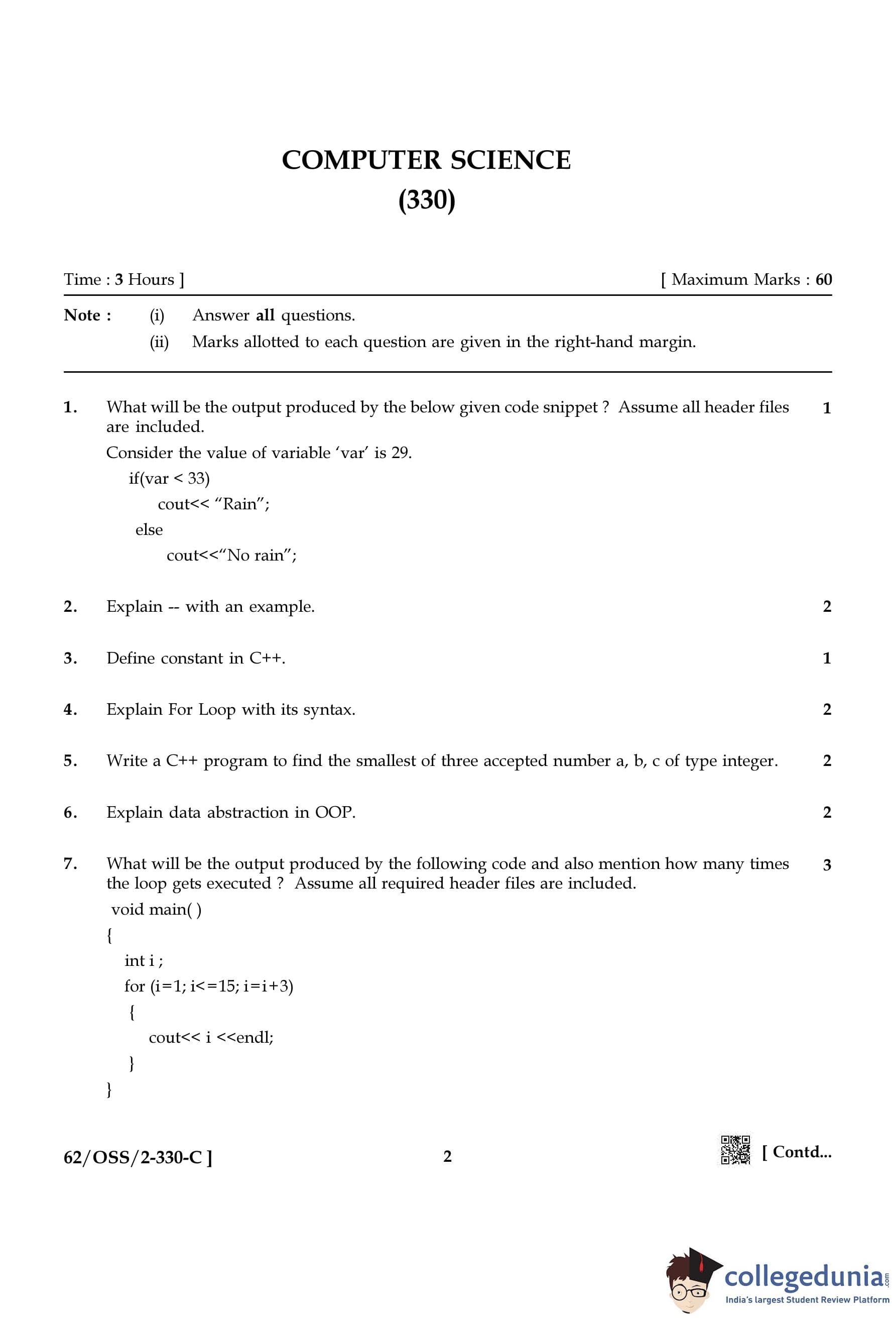 NIOS Class 12 Computer Science Compartment Question Paper 2021 with Answer Key pdf is available for download here. The exam was conducted by National Institute of Open Schooling on December 13, 2021 in the Afternoon Session 2:30 PM to 5:30 PM. The question paper comprised a total of 31 questions.