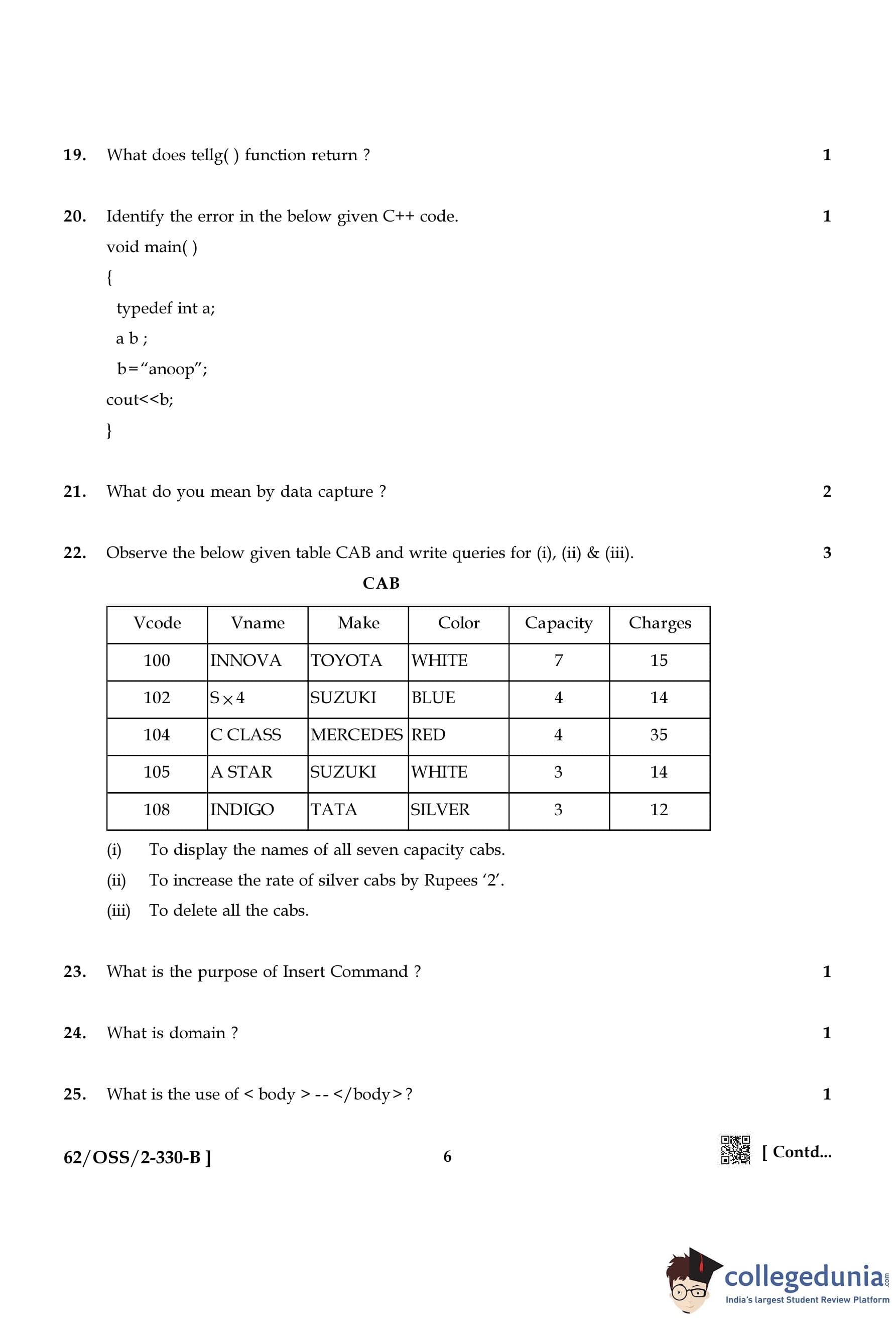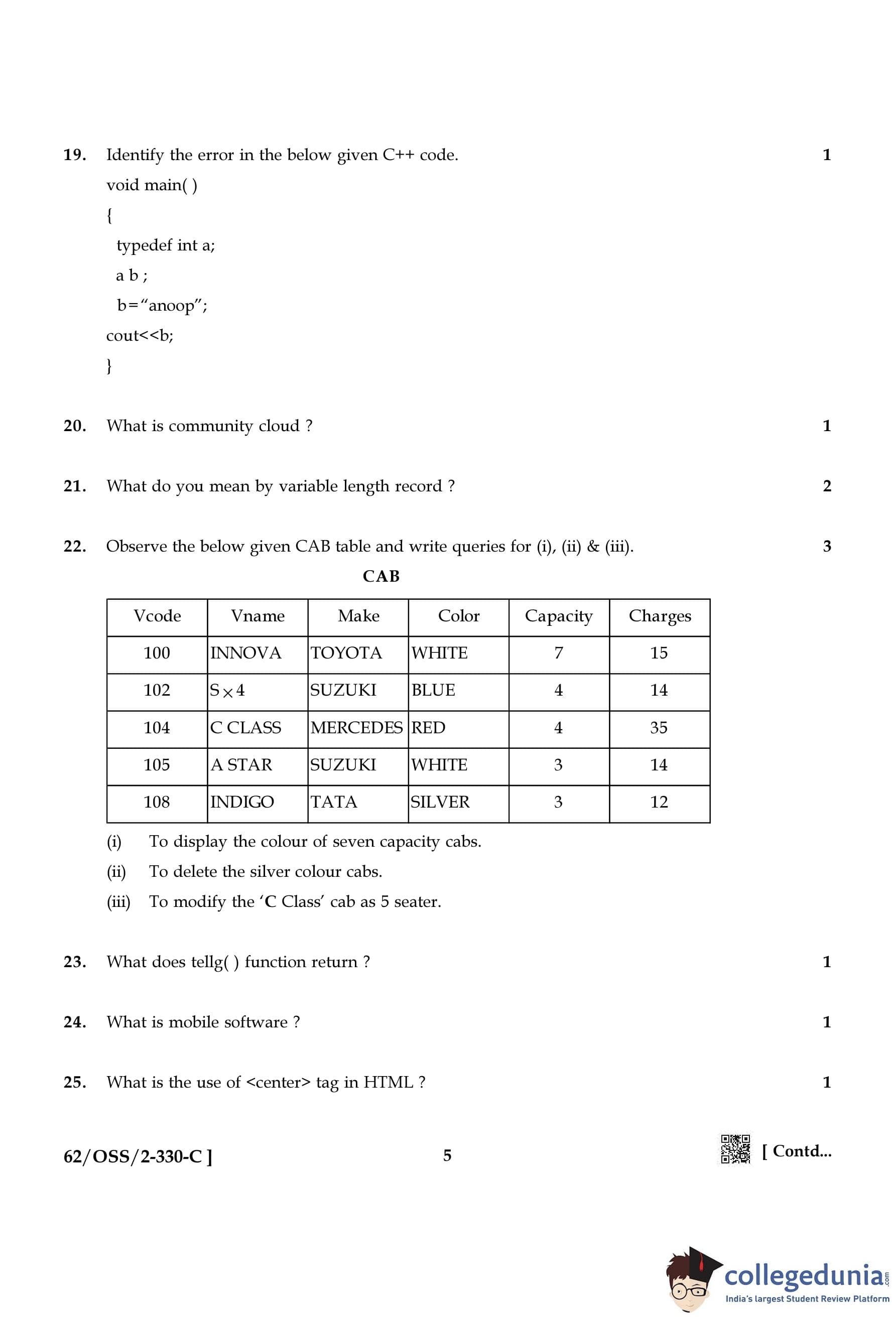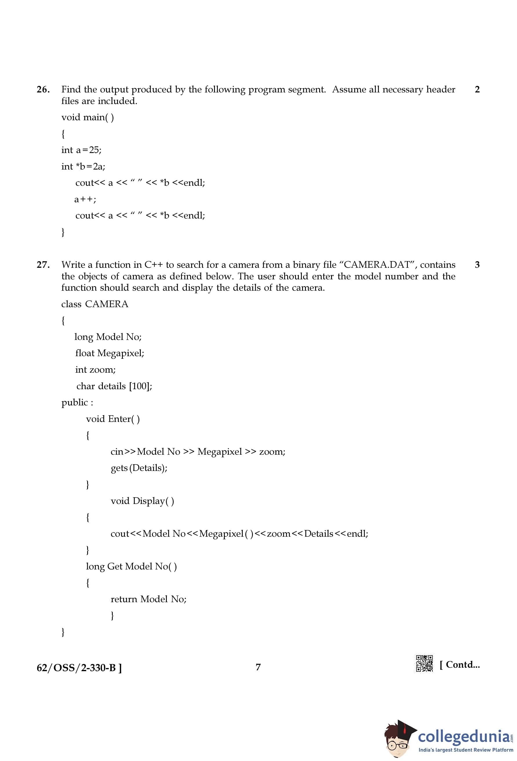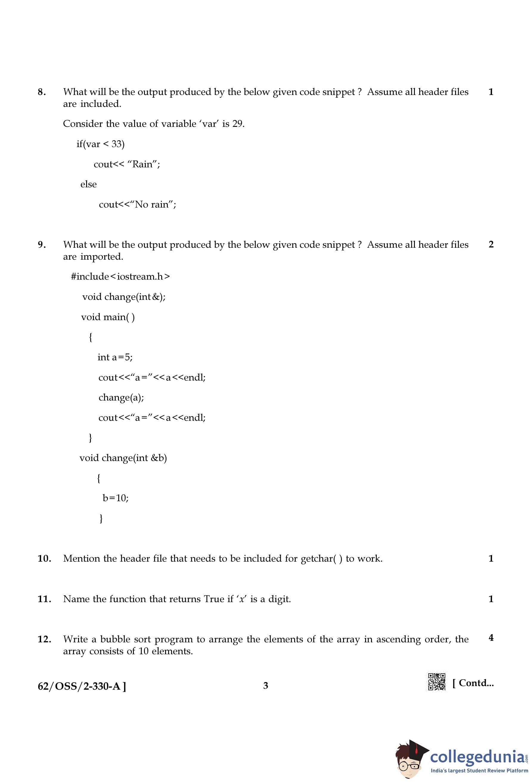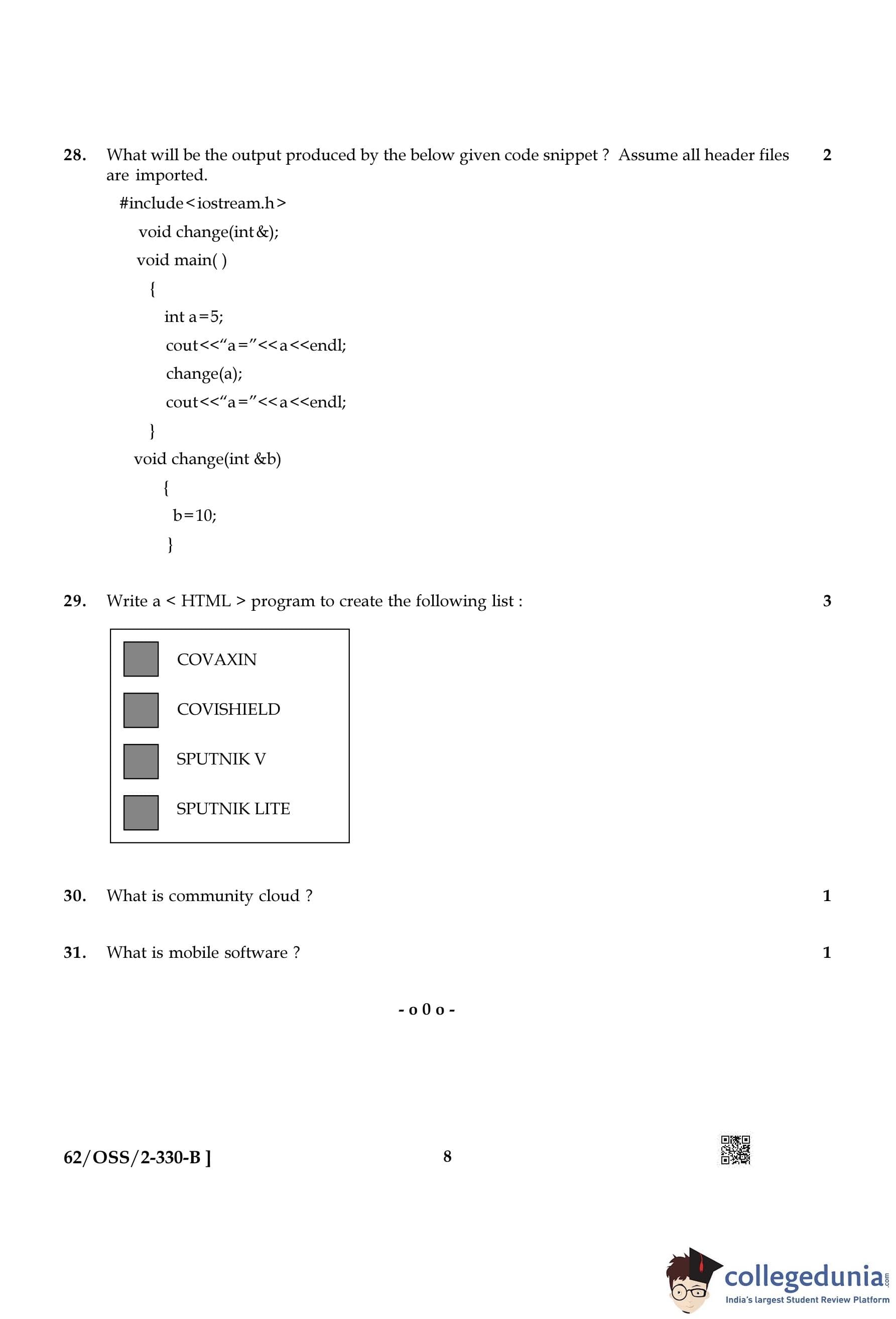 NIOS Class 12 Computer Science Compartment Question Paper 2021 with Answer Key