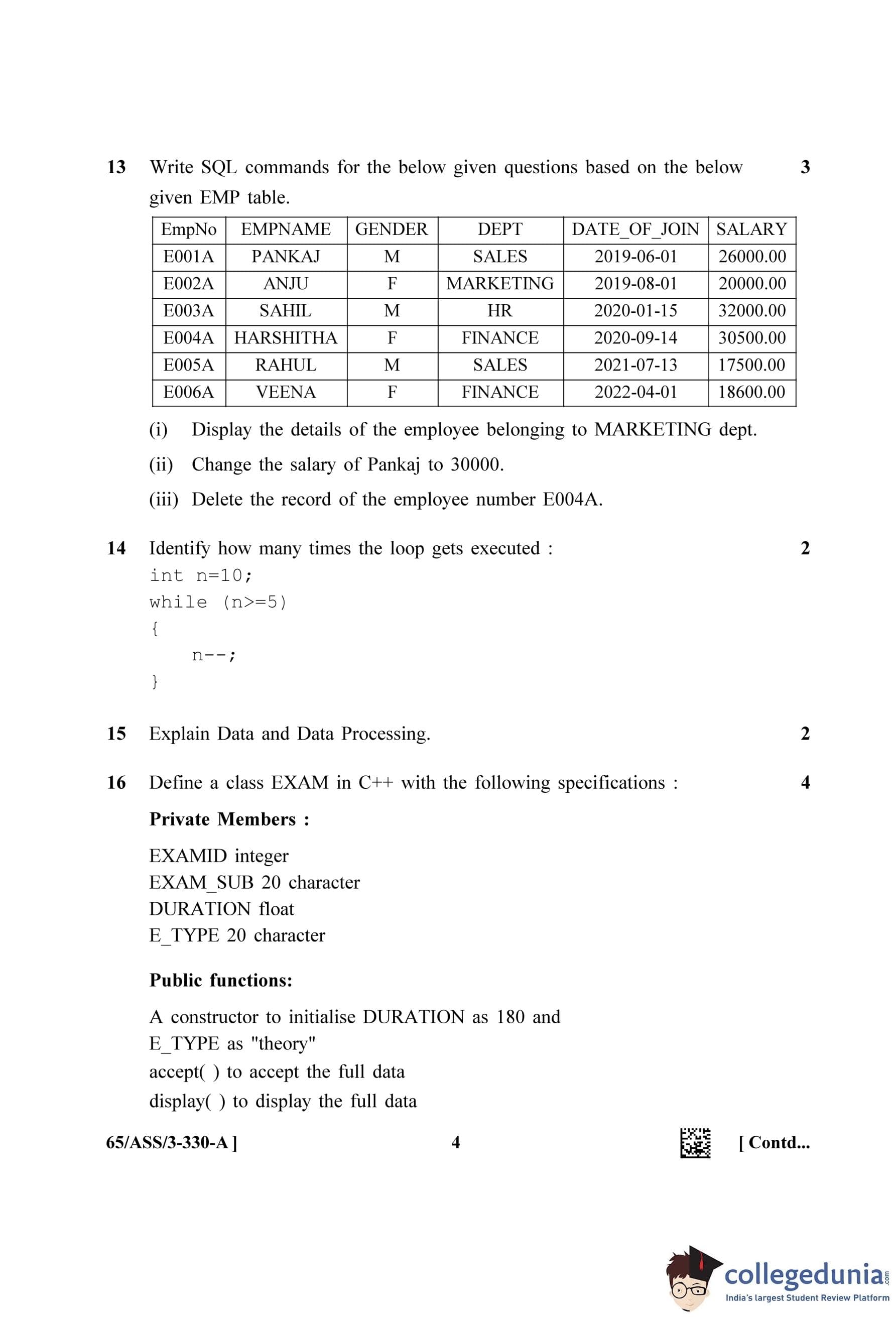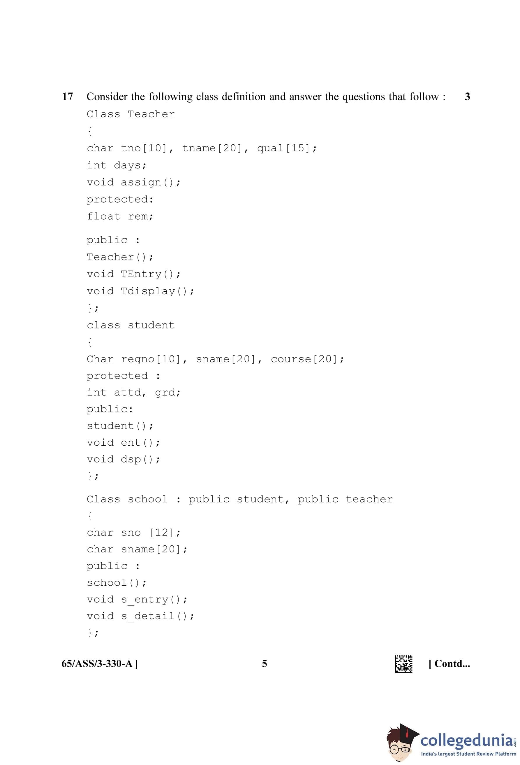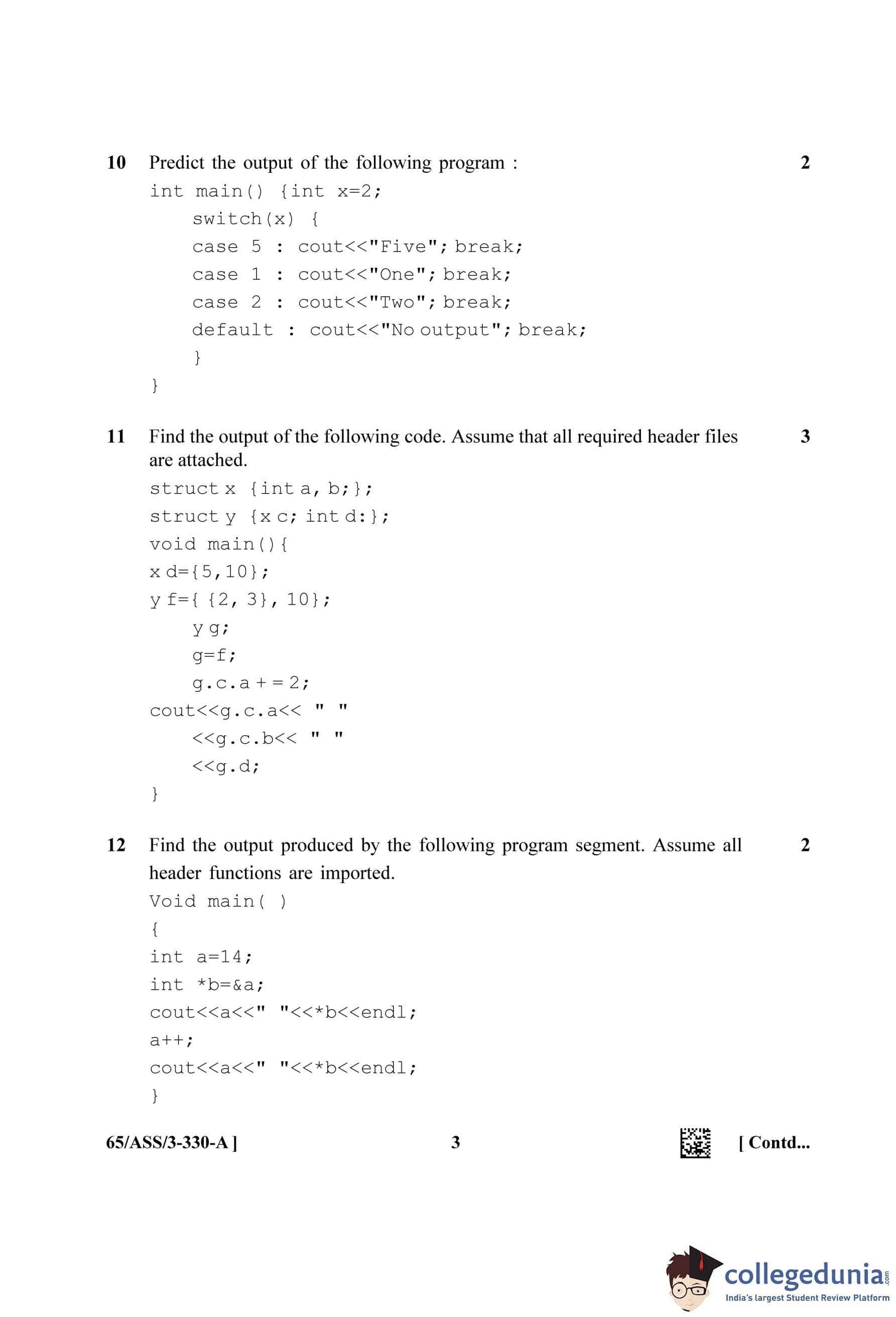 NIOS Class 12 Computer Science Question Paper 2023 with Answer Key (Set A - ASS)