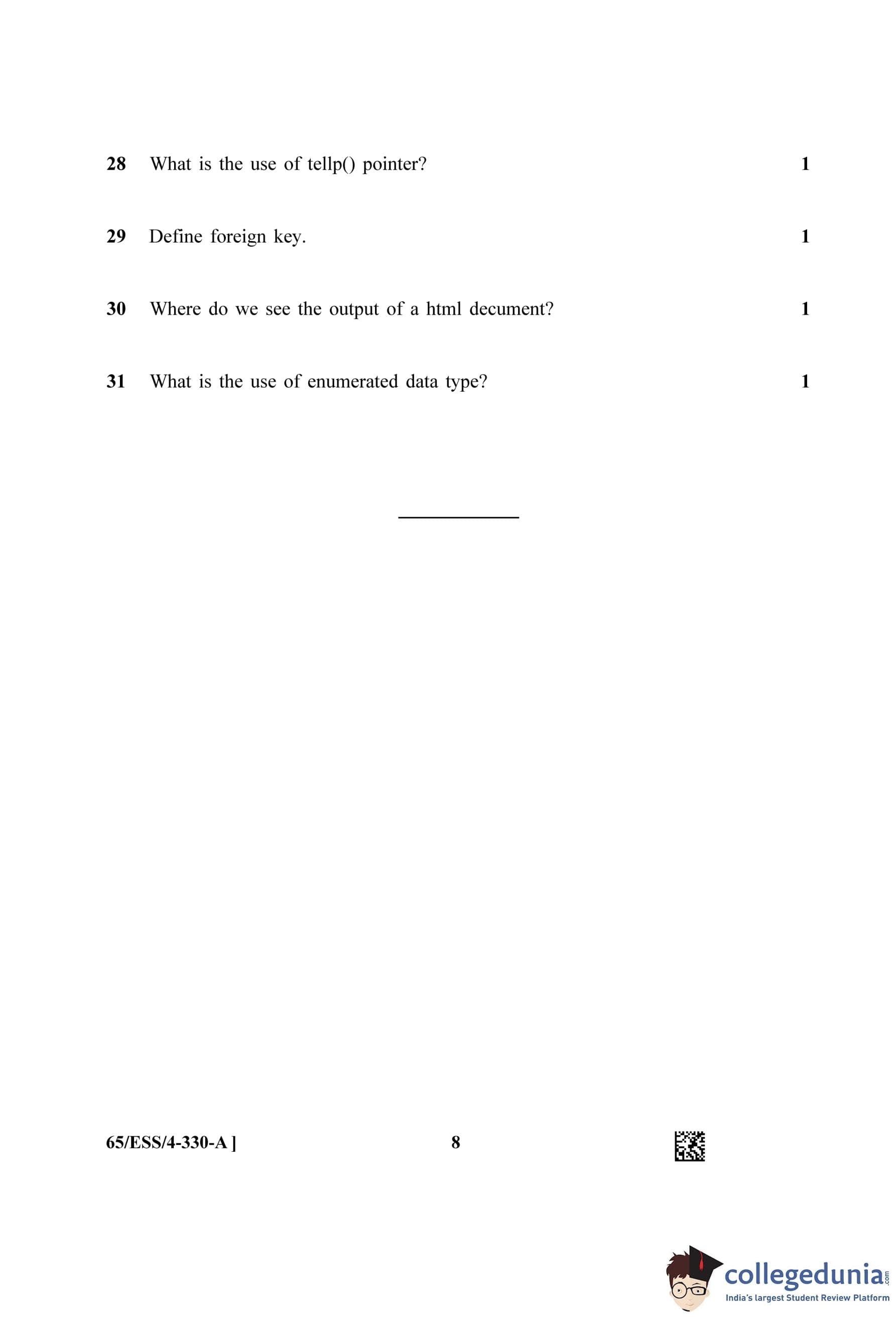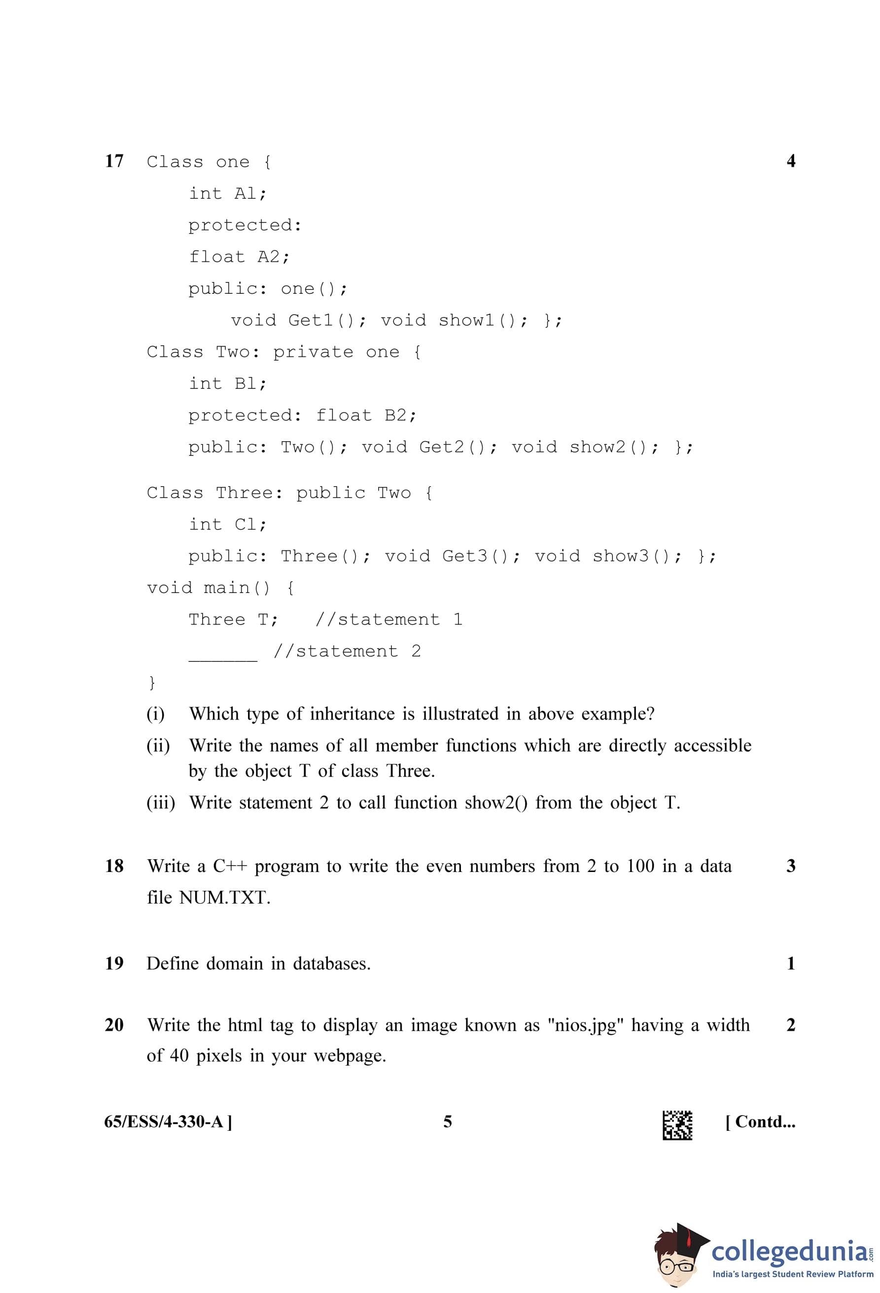 NIOS Class 12 Computer Science Question Paper 2023 with Answer Key (Set A - ESS)