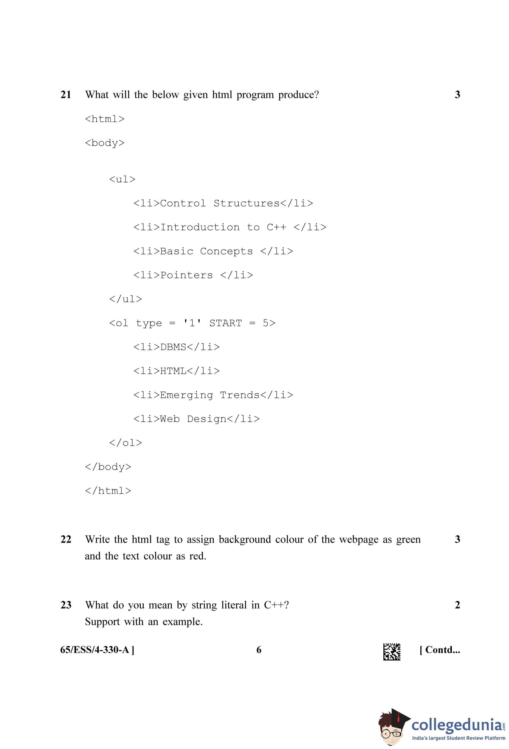 NIOS Class 12 Computer Science Question Paper 2023 with Answer Key pdf (Set A - ESS) is available for download here. The exam was conducted by National Institute of Open Schooling on April 18, 2023 in the Afternoon Session 2.30 PM to 5.30 PM. The question paper comprised a total of 31 questions.