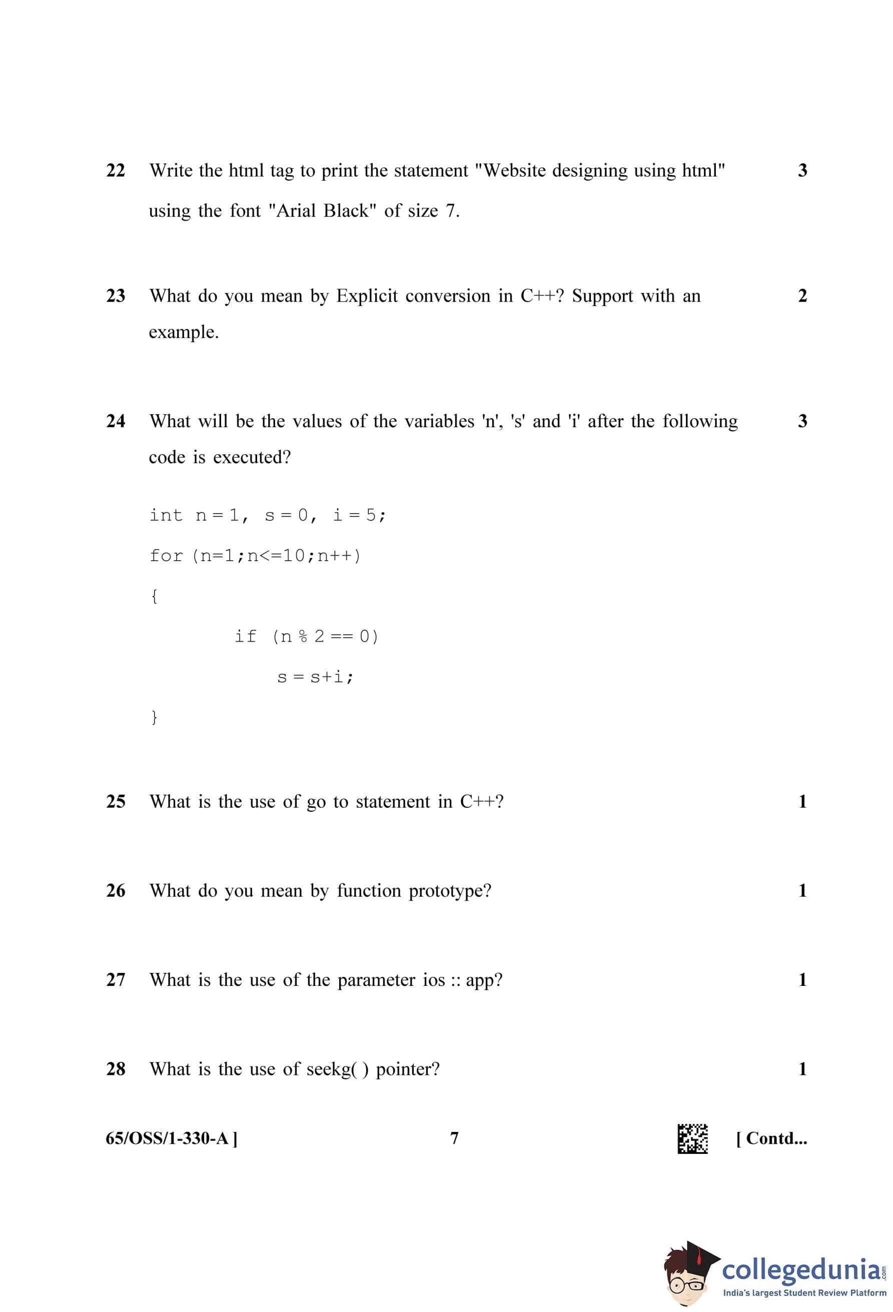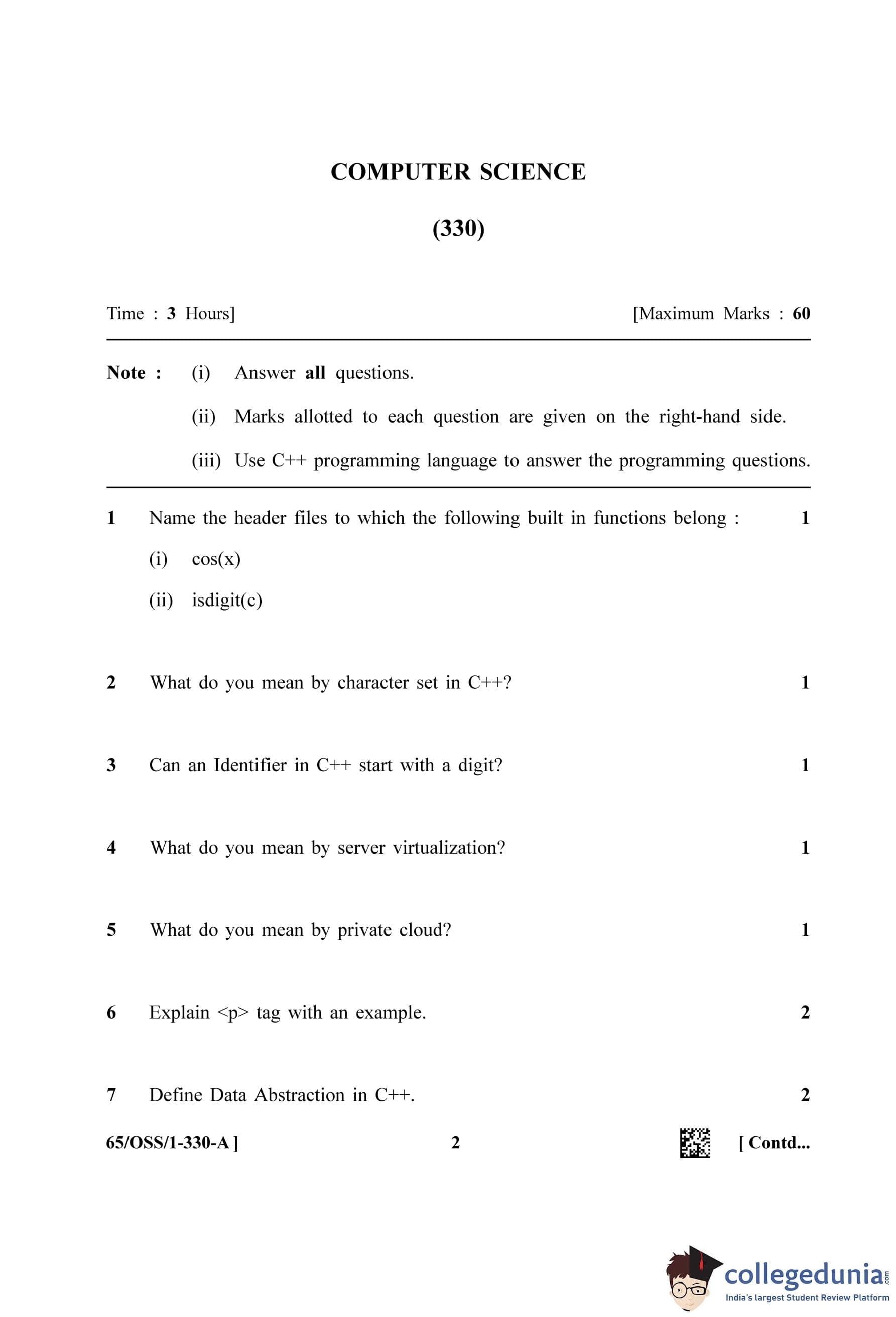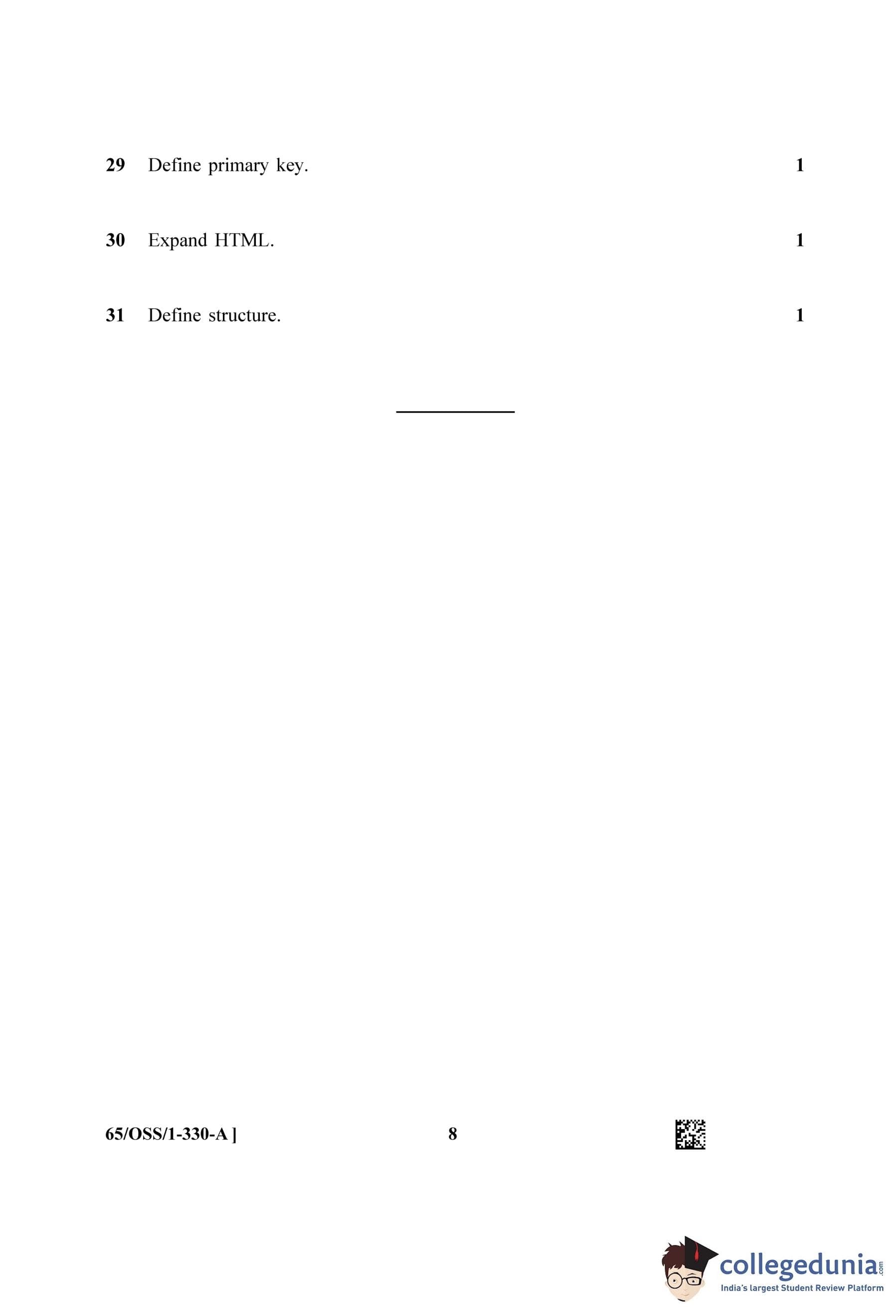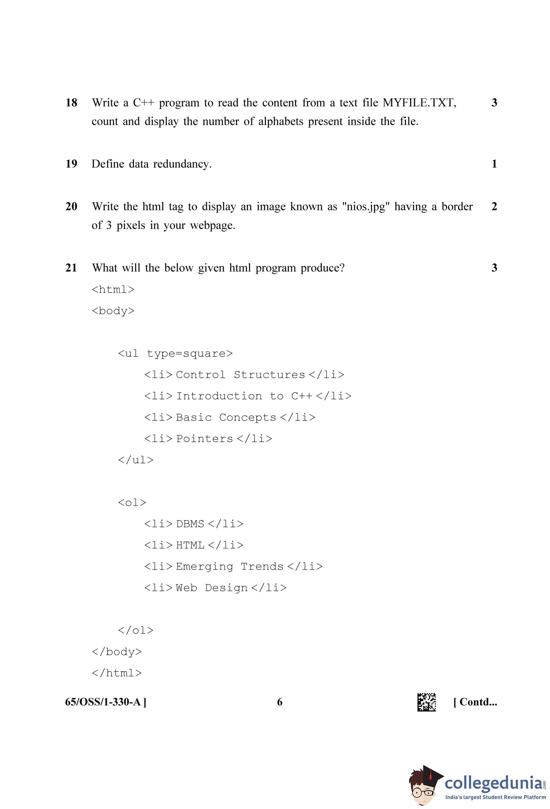 NIOS Class 12 Computer Science Question Paper 2023 with Answer Key pdf (Set A - OSS) is available for download here. The exam was conducted by National Institute of Open Schooling on April 18, 2023 in the Afternoon Session 2.30 PM to 5.30 PM. The question paper comprised a total of 31 questions.