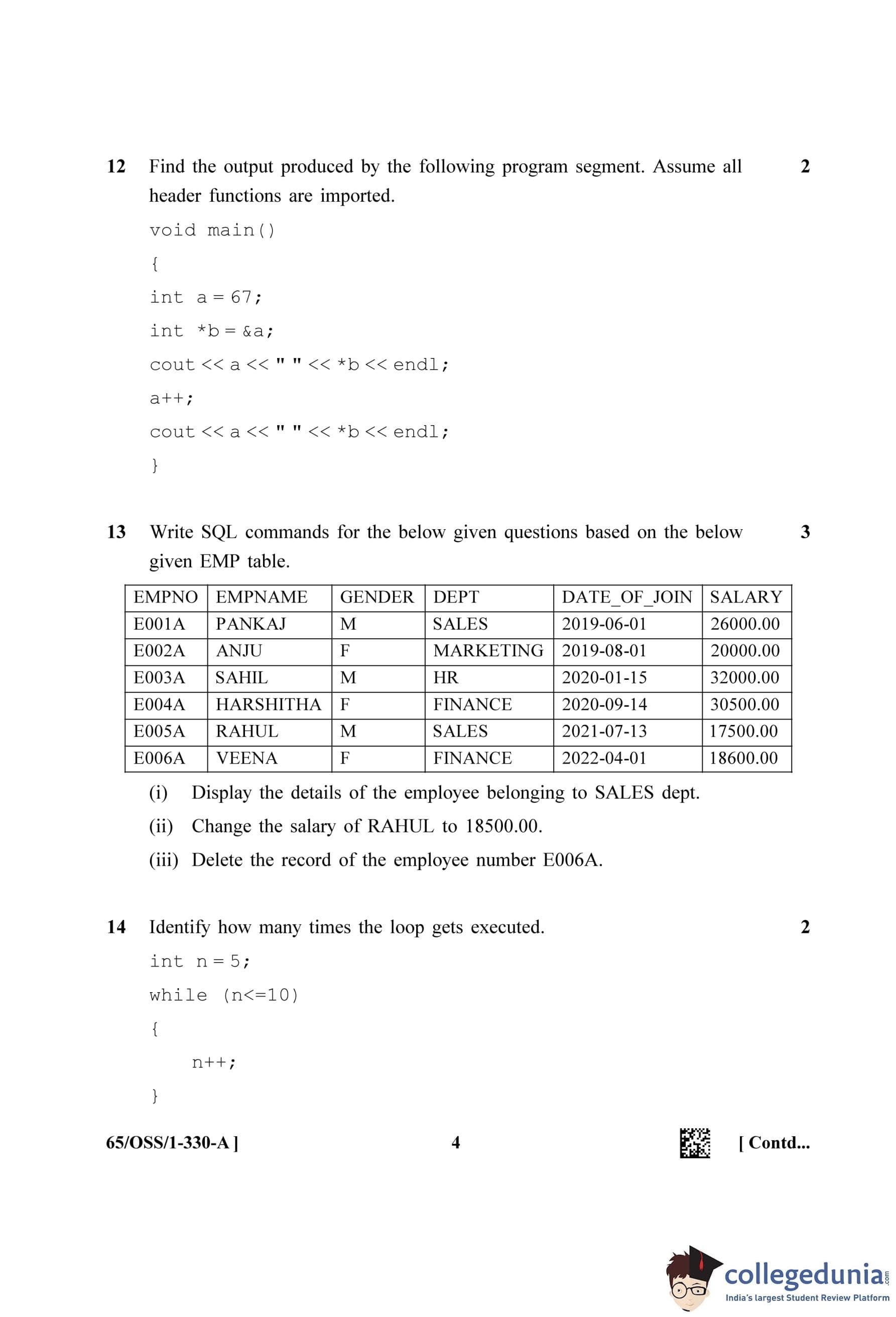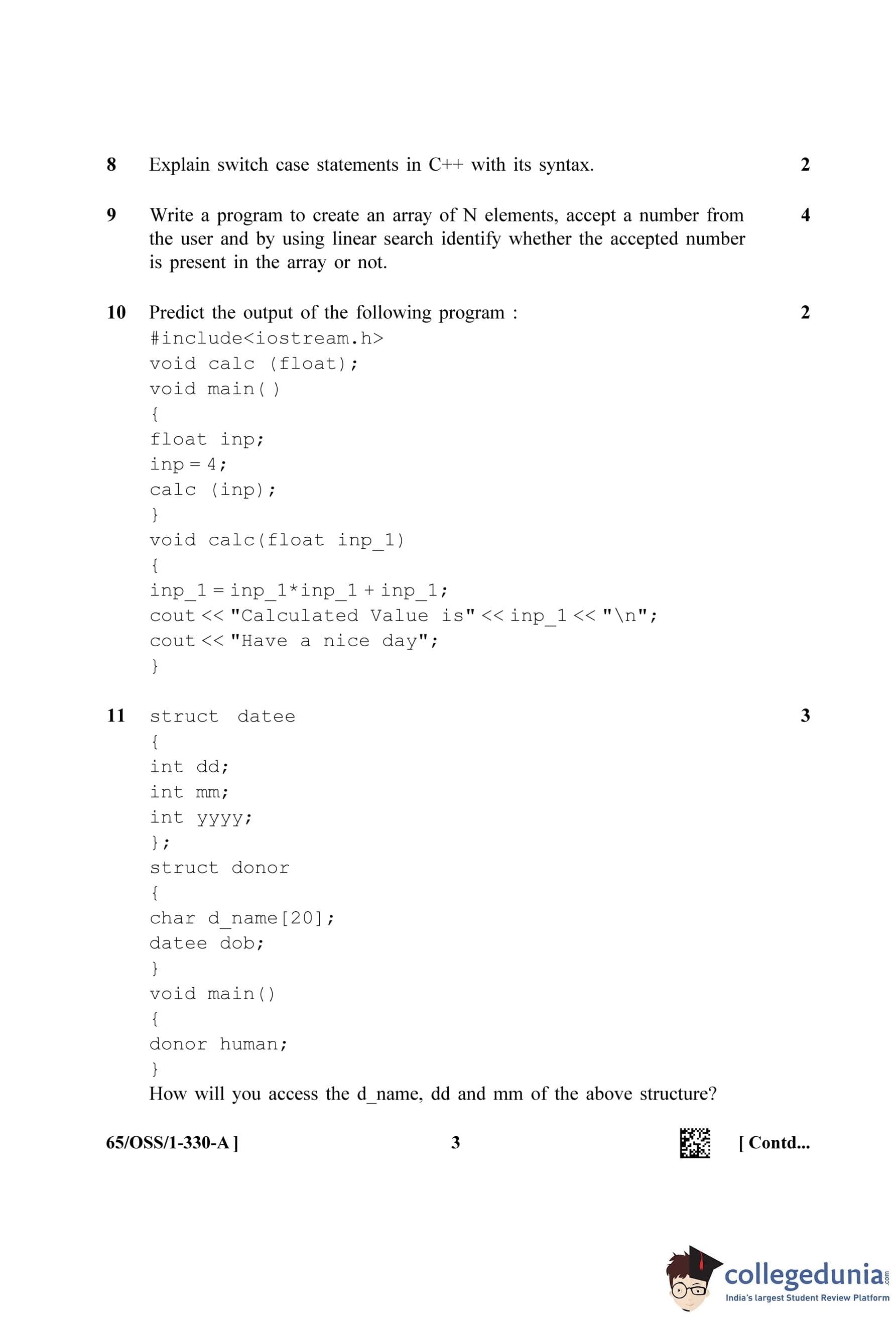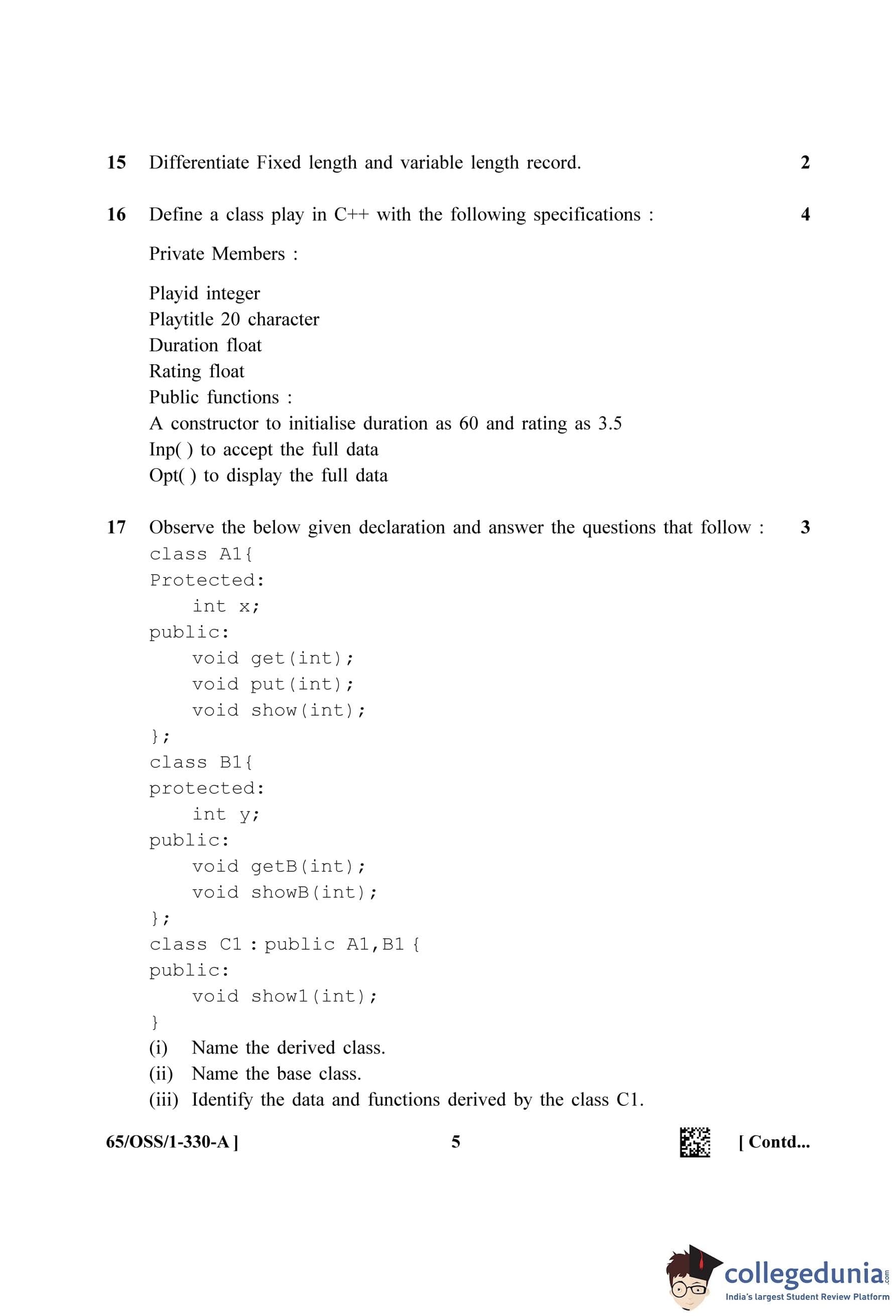 NIOS Class 12 Computer Science Question Paper 2023 with Answer Key (Set A - OSS)
