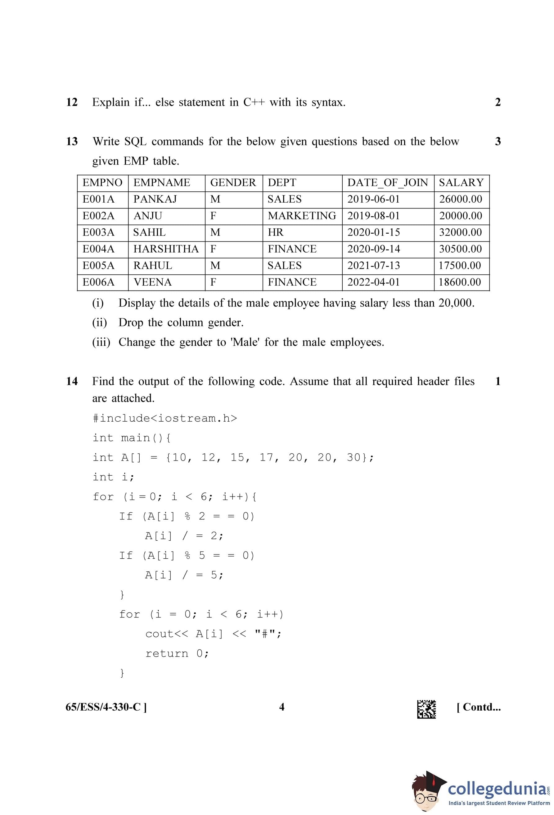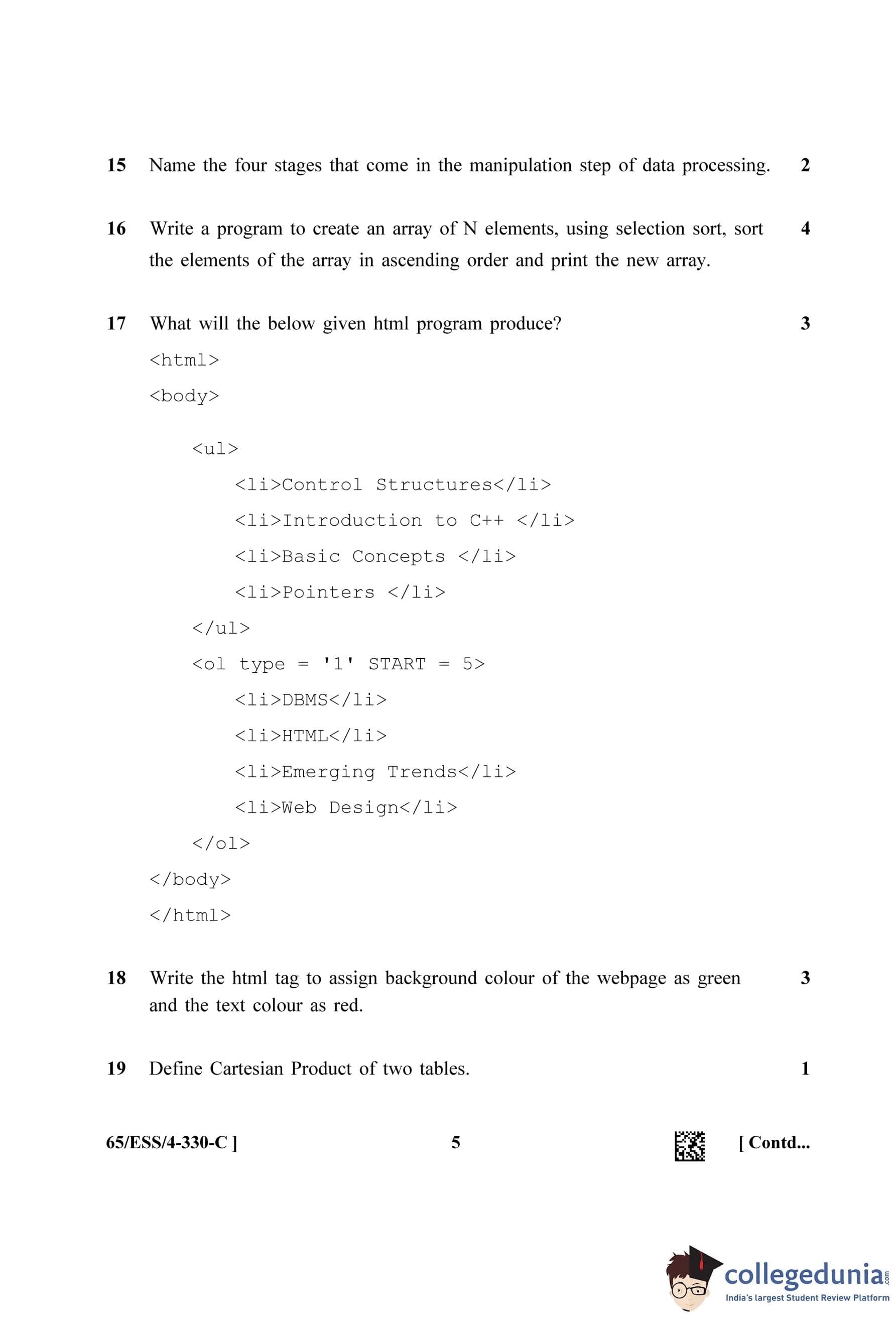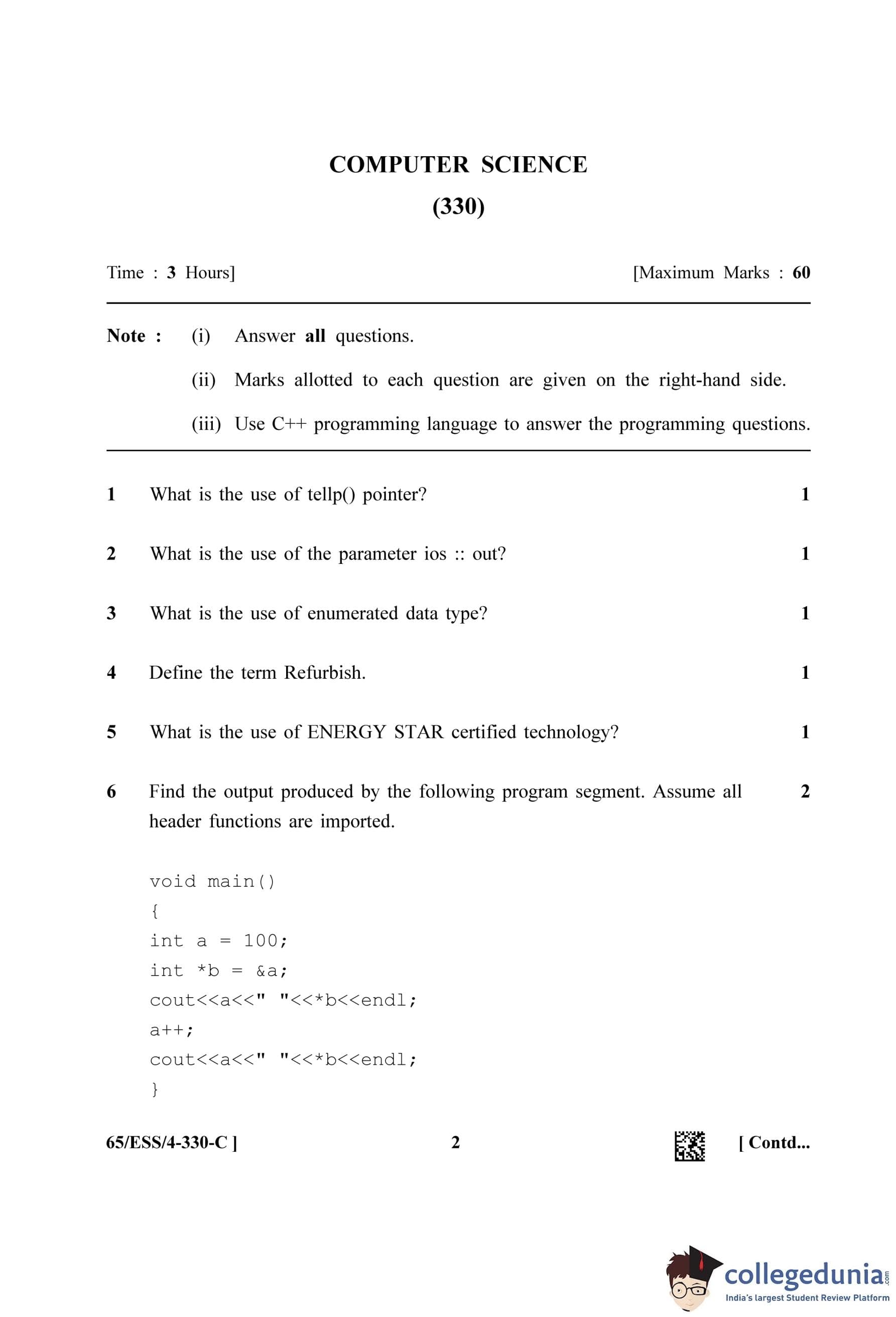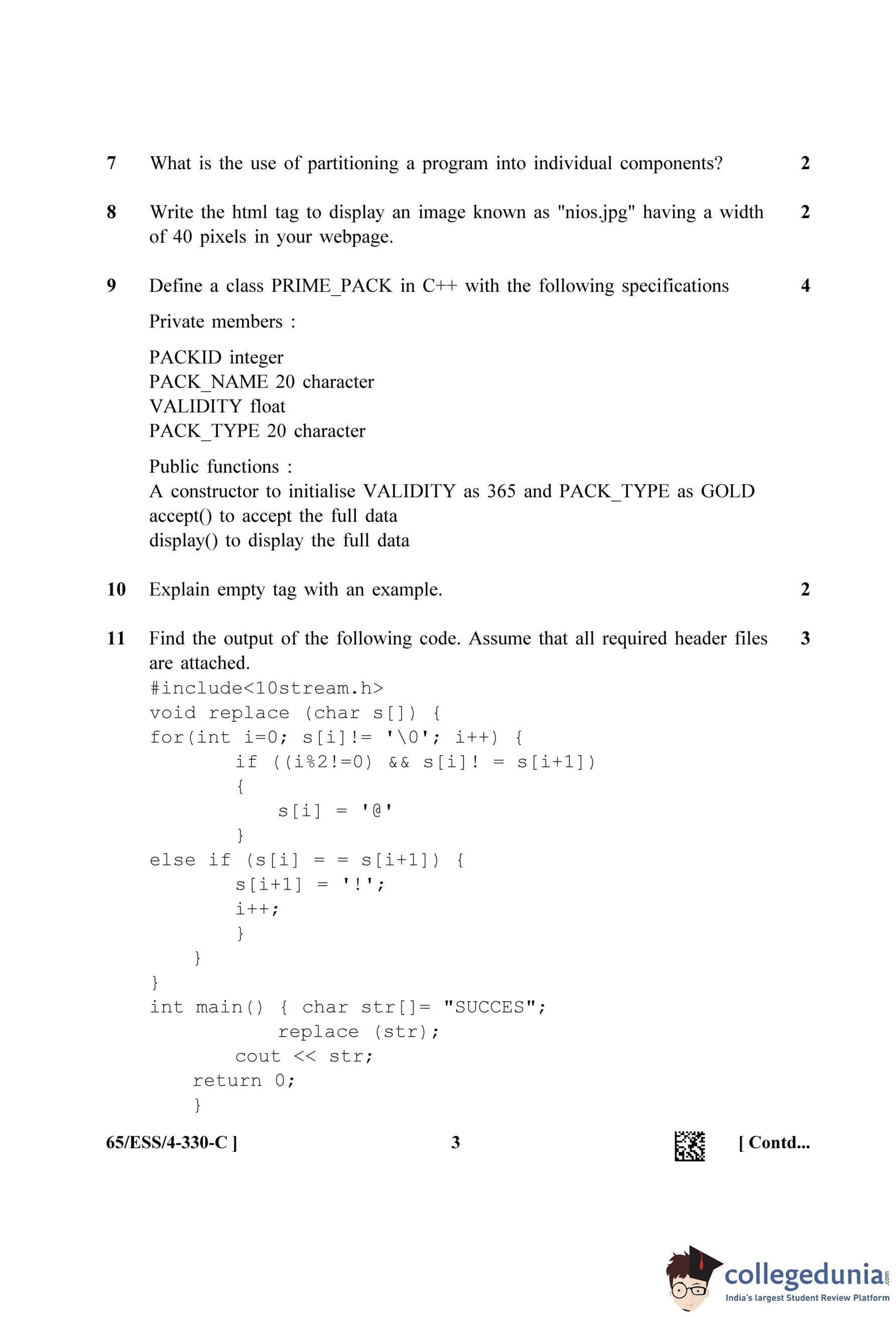 NIOS Class 12 Computer Science Question Paper 2023 with Answer Key pdf (Set C - ESS) is available for download here. The exam was conducted by National Institute of Open Schooling on April 18, 2023 in the Afternoon Session 2.30 PM to 5.30 PM. The question paper comprised a total of 31 questions.