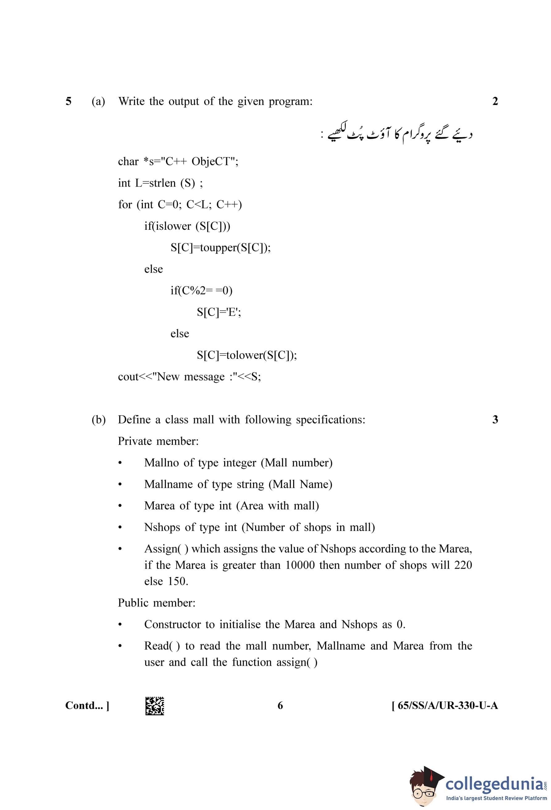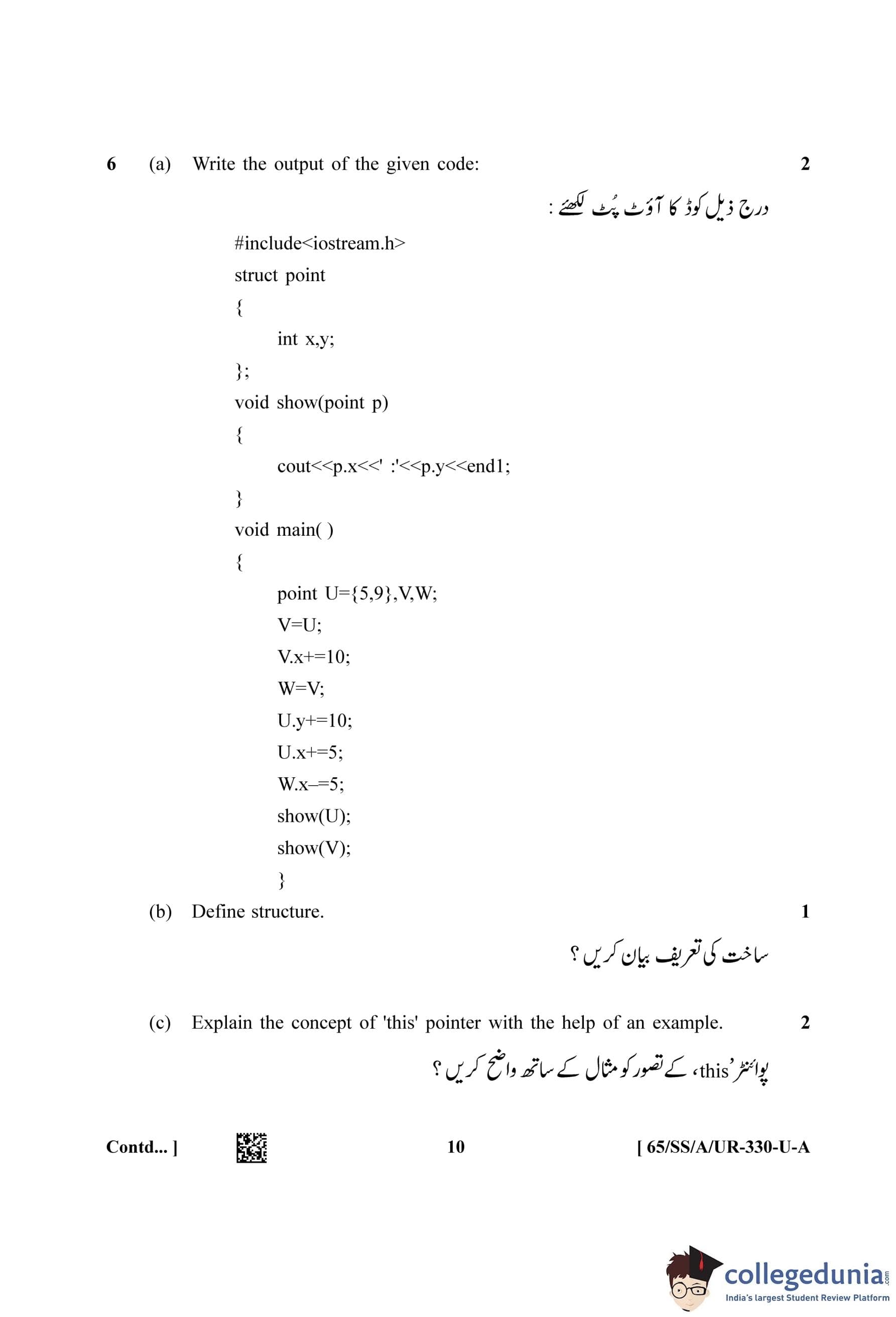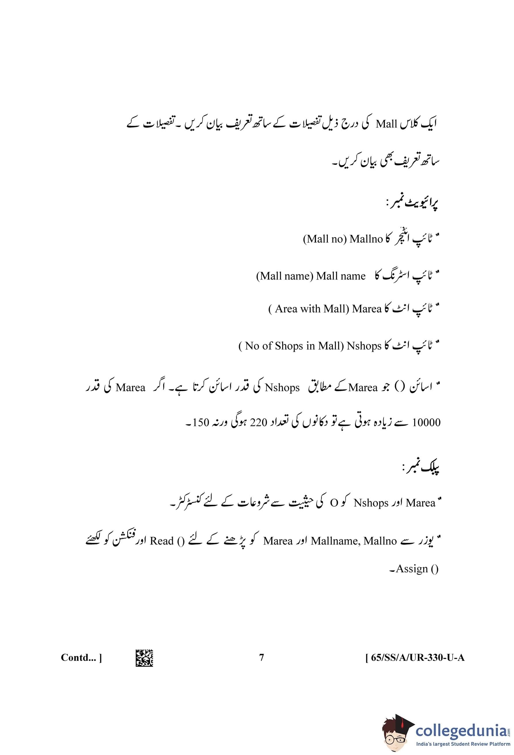 NIOS Class 12 Computer Science Urdu (Set A) Question Paper 2023 with Answer Key