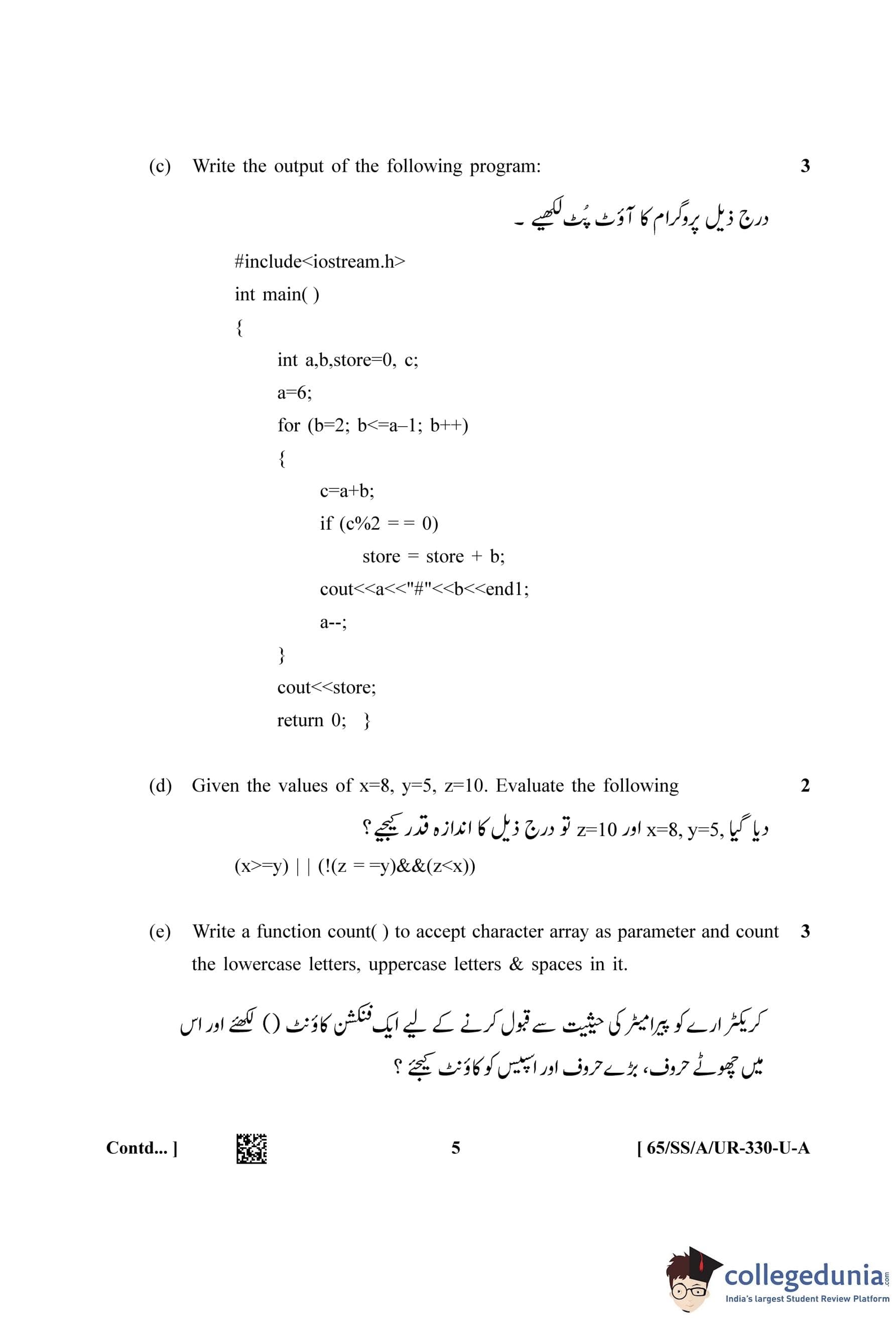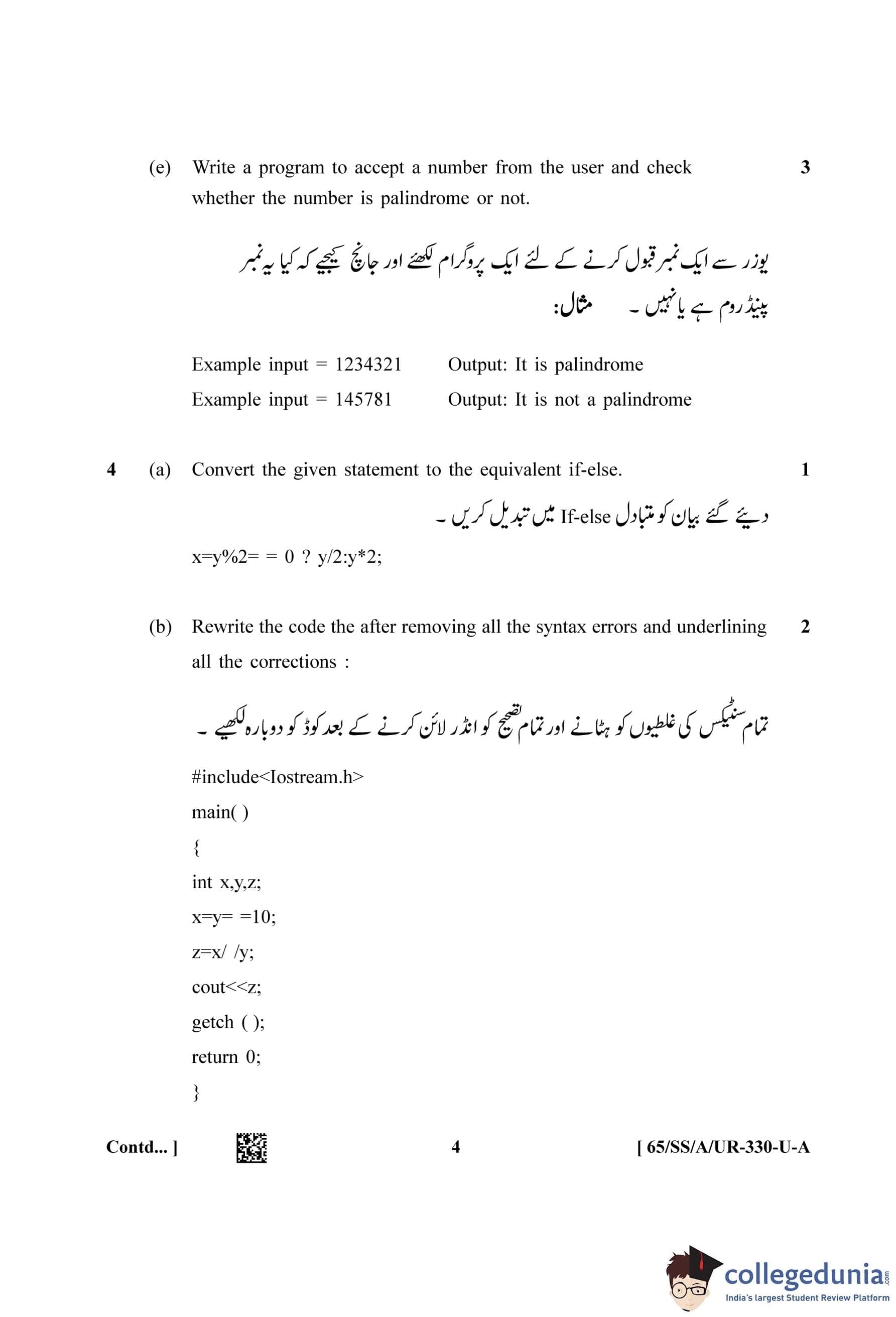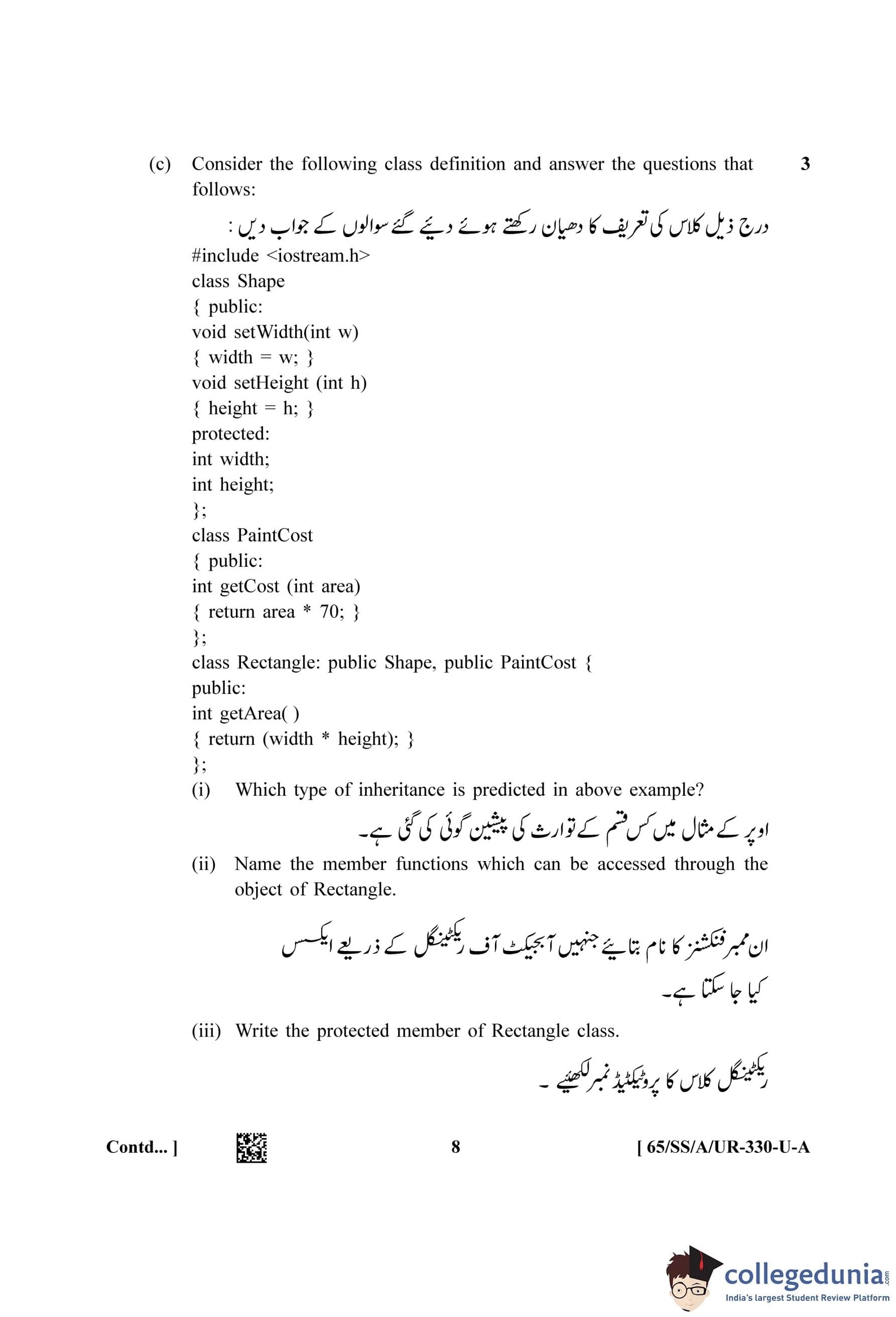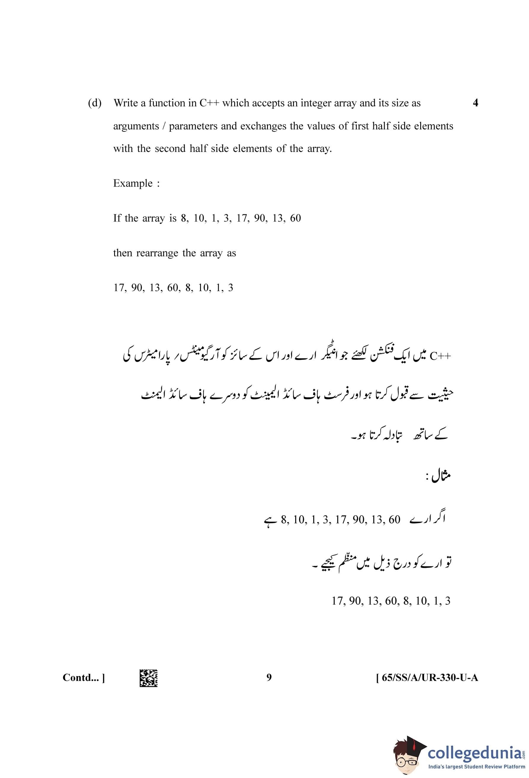 NIOS Class 12 Computer Science Urdu (Set A) Question Paper 2023 with Answer Key
