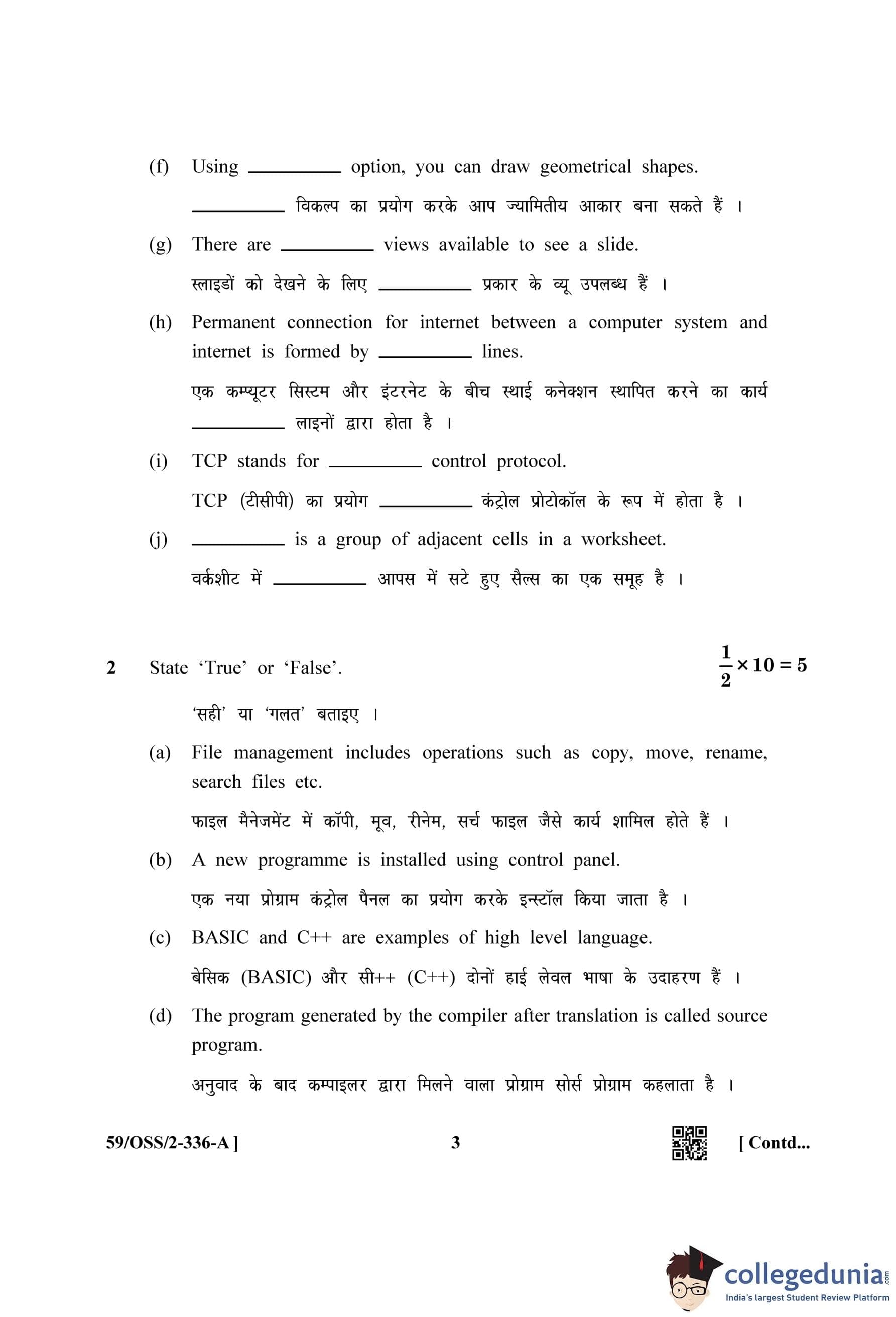 NIOS Class 12 Data Entry Operations (Set A) Compartment Question Paper 2019 with Answer Key