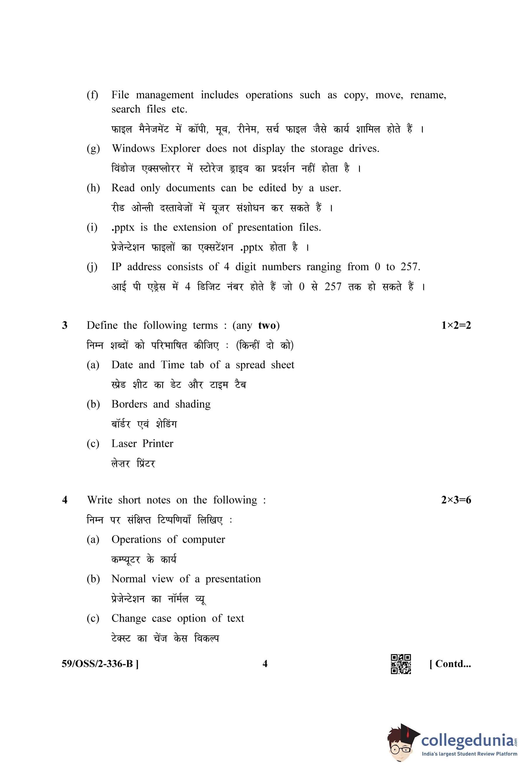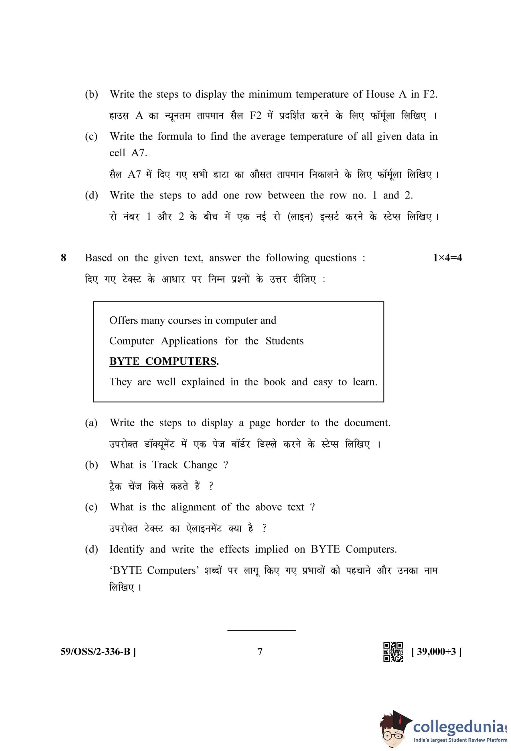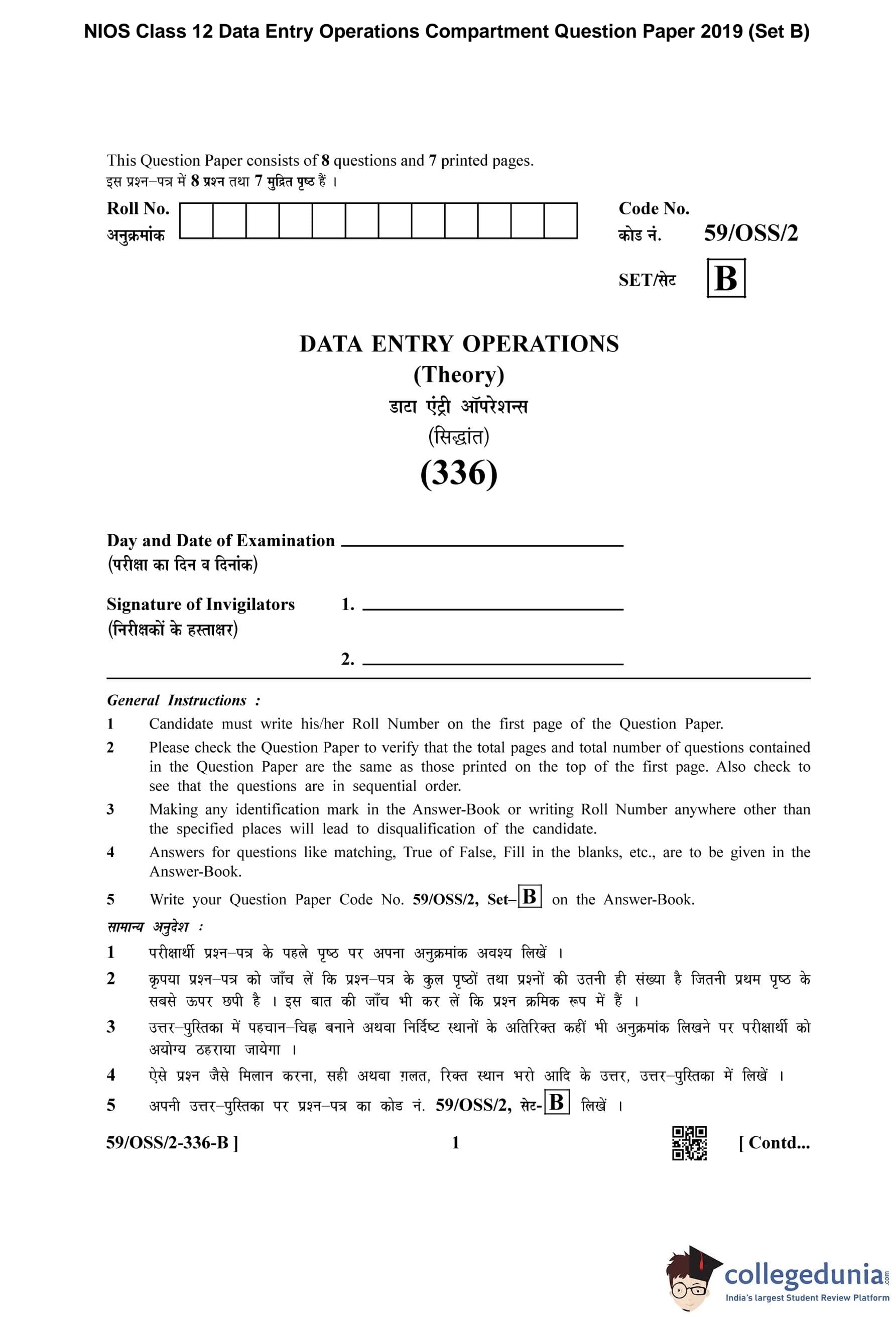 NIOS Class 12 Data Entry Operations (Set B) Compartment Question Paper 2019 with Answer Key