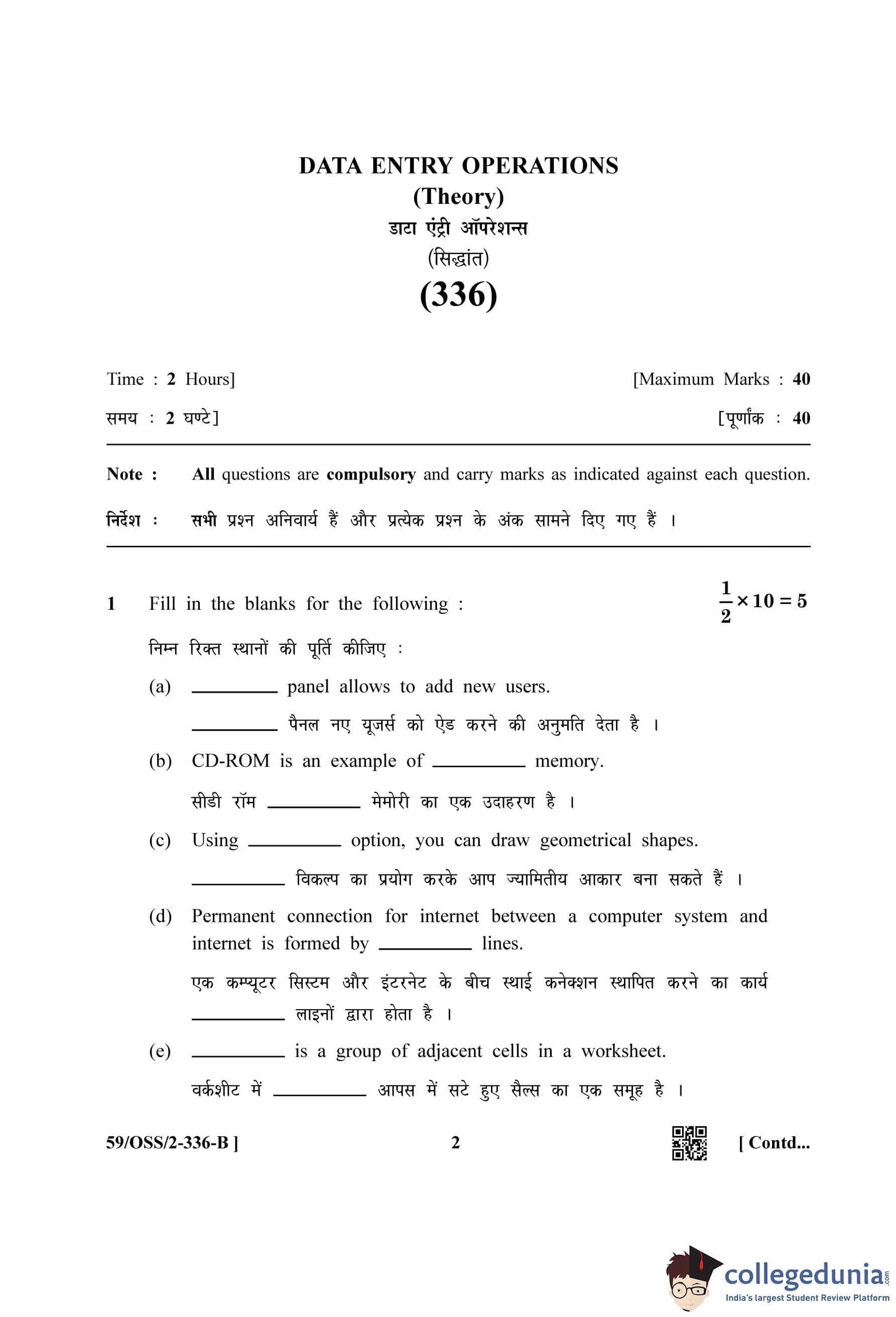 | NIOS Class 12 Data Entry Operations Question Paper 2019 PDF | NIOS Class 12 Data Entry Operations Answer Key 2019 PDF |