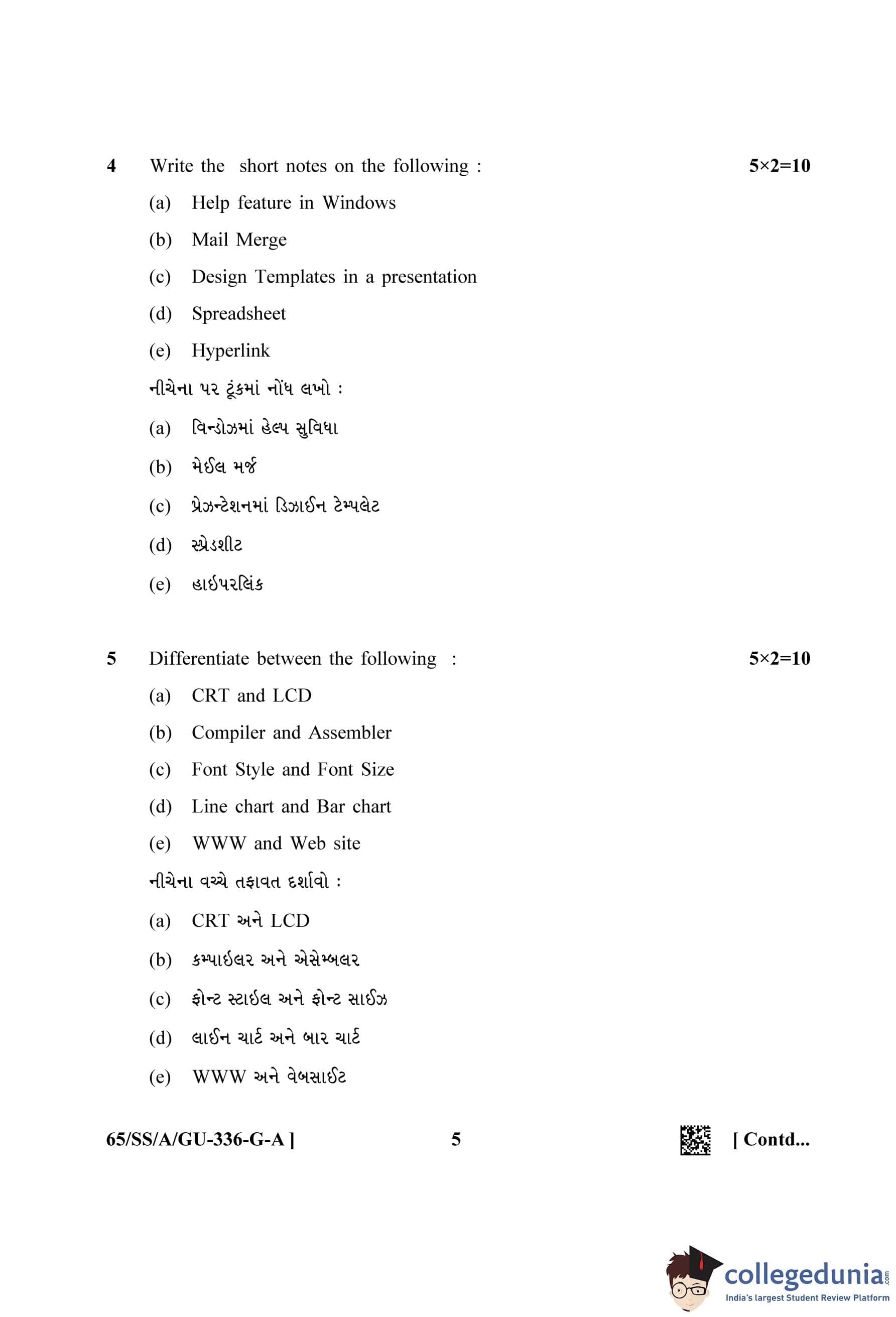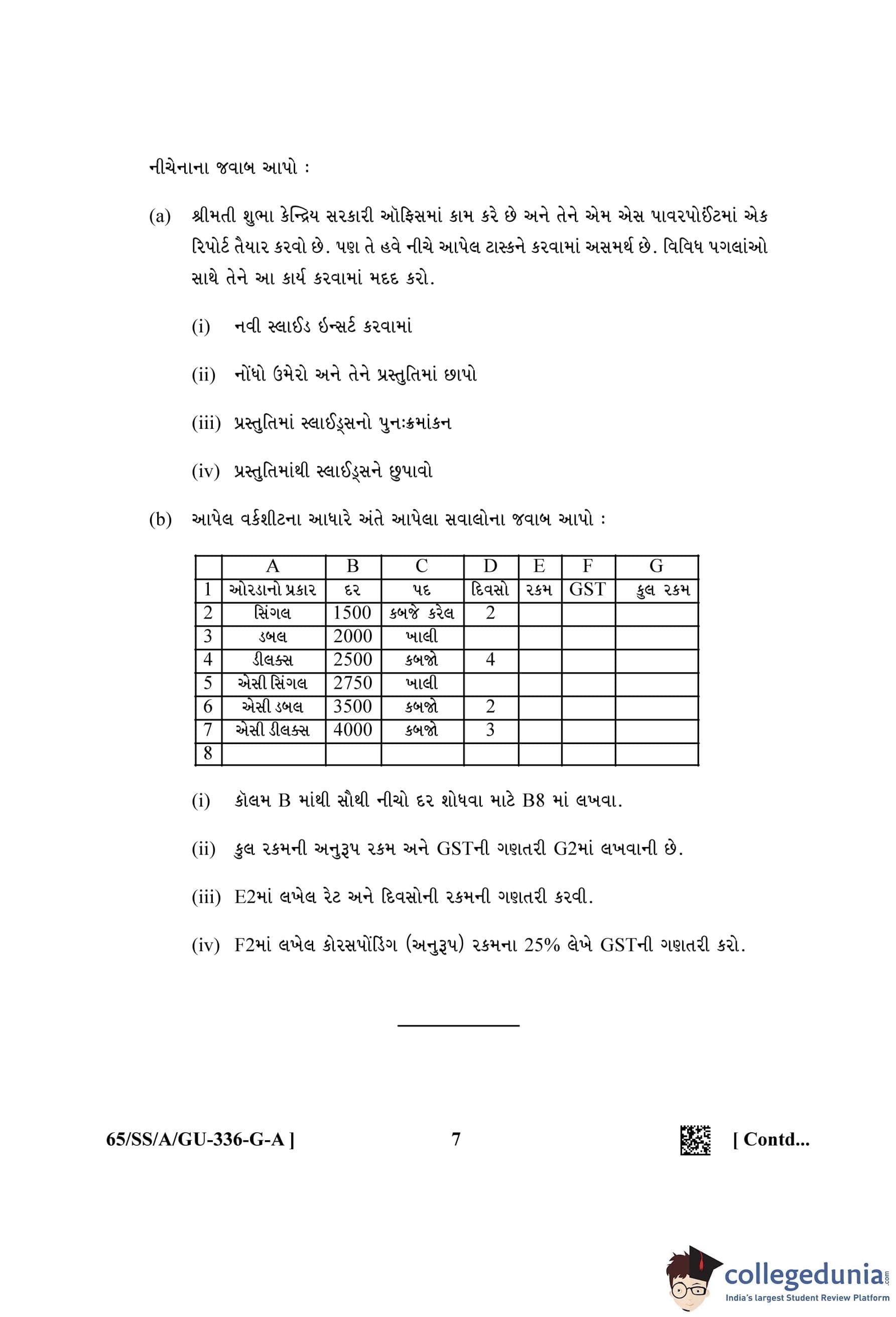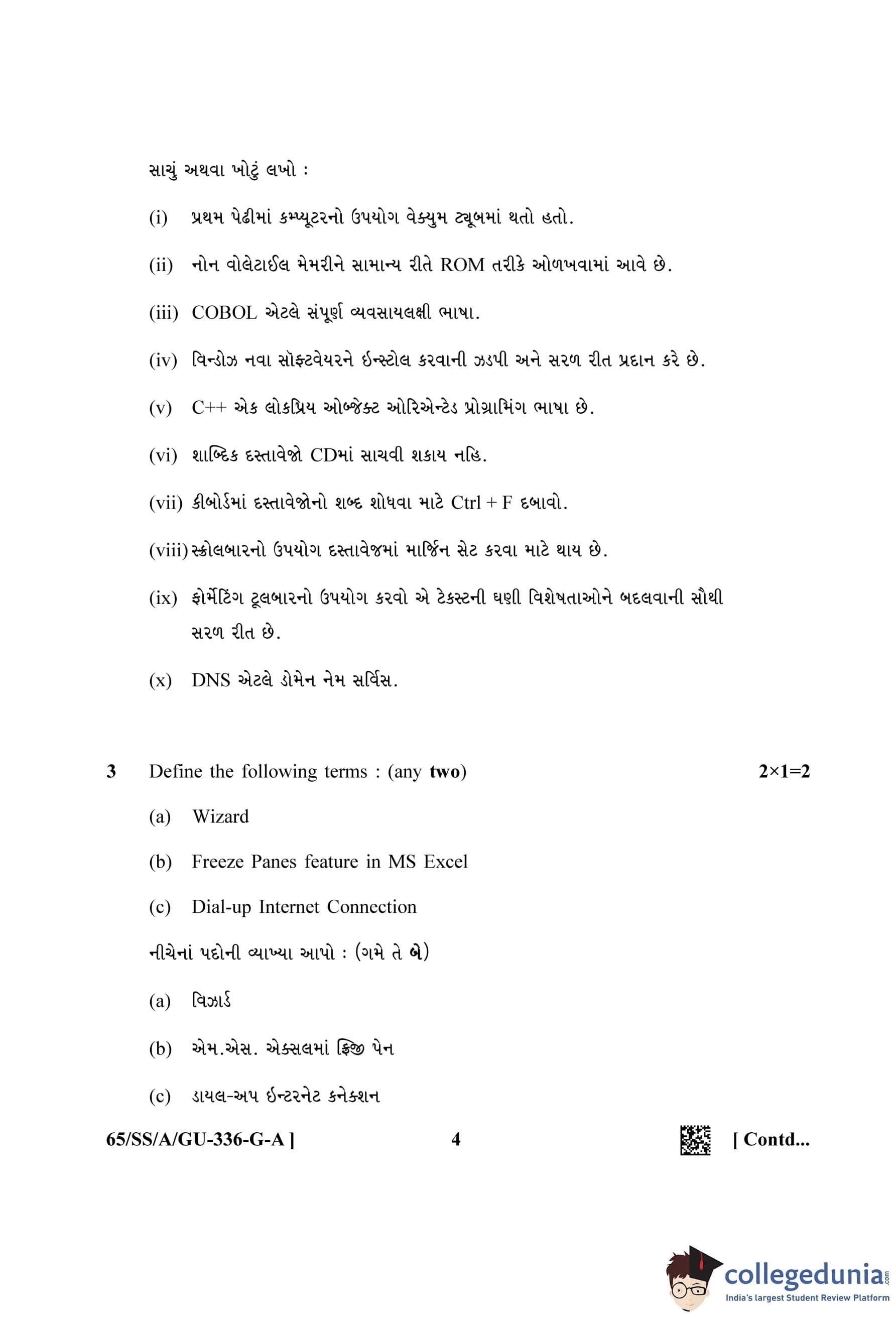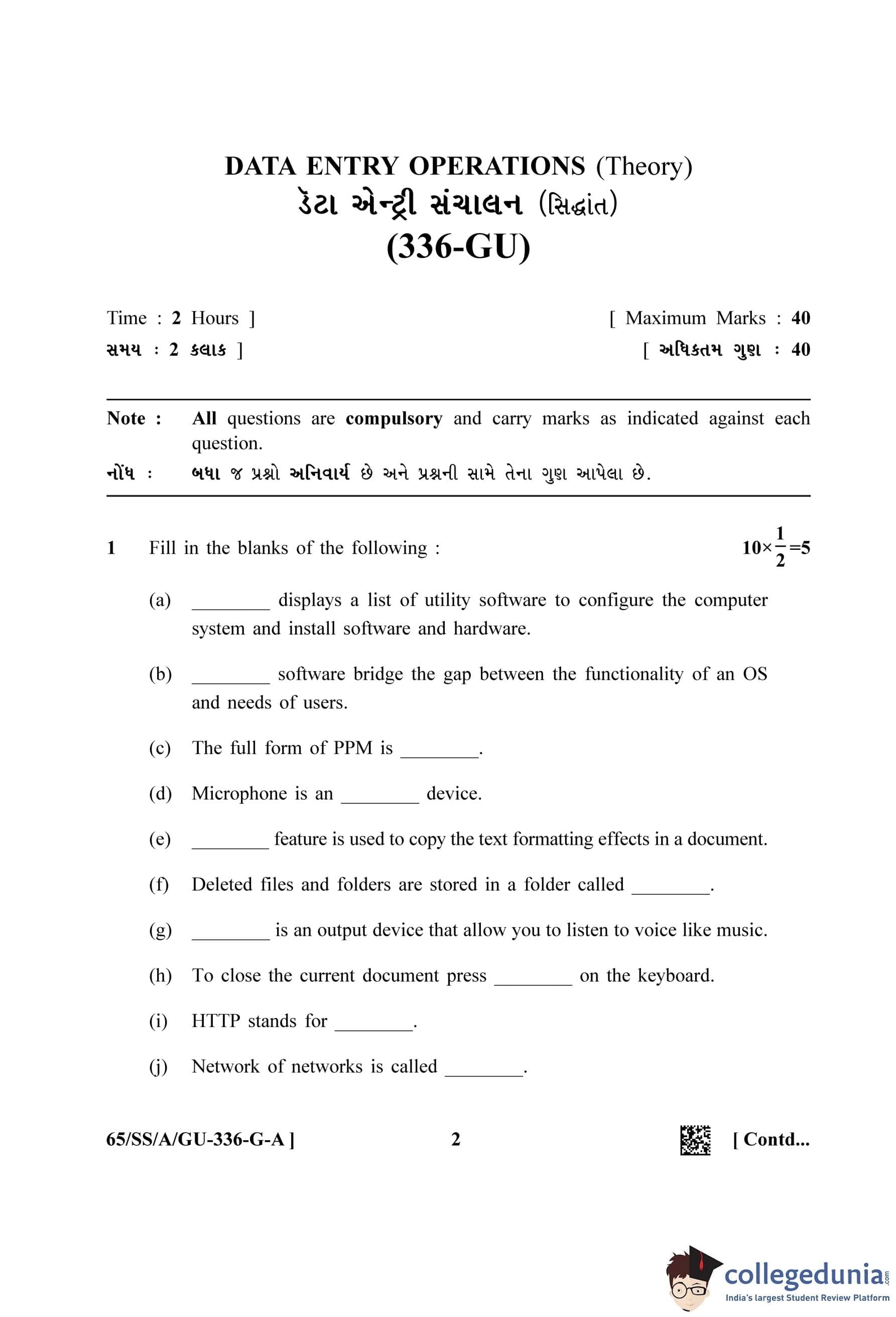 NIOS Class 12 Data Entry Operations Gujarati (Set A) Question Paper 2023 with Answer Key