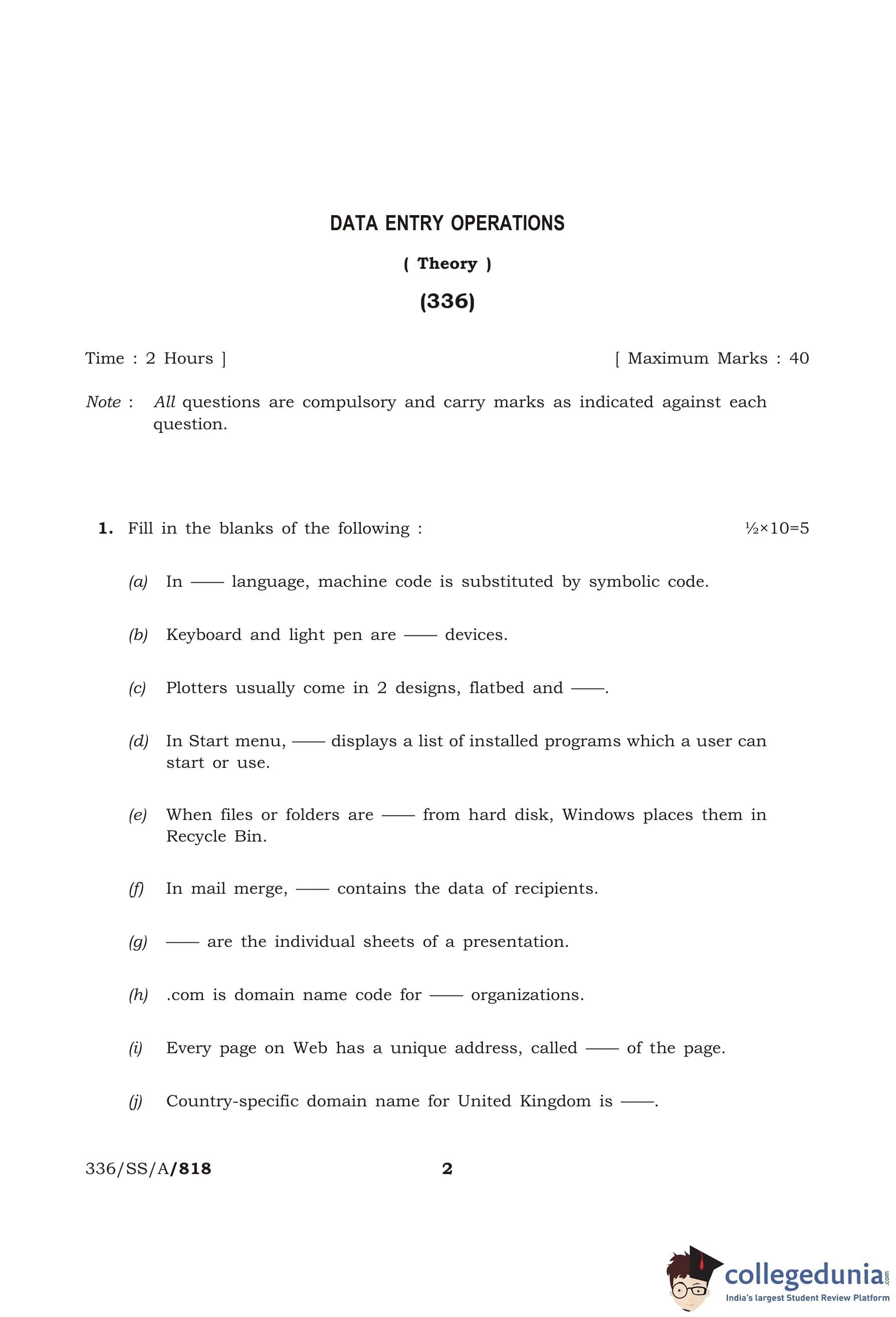| NIOS Class 12 Data Entry Operations Question Paper 2015 PDF | NIOS Class 12 Data Entry Operations Answer Key 2015 PDF |