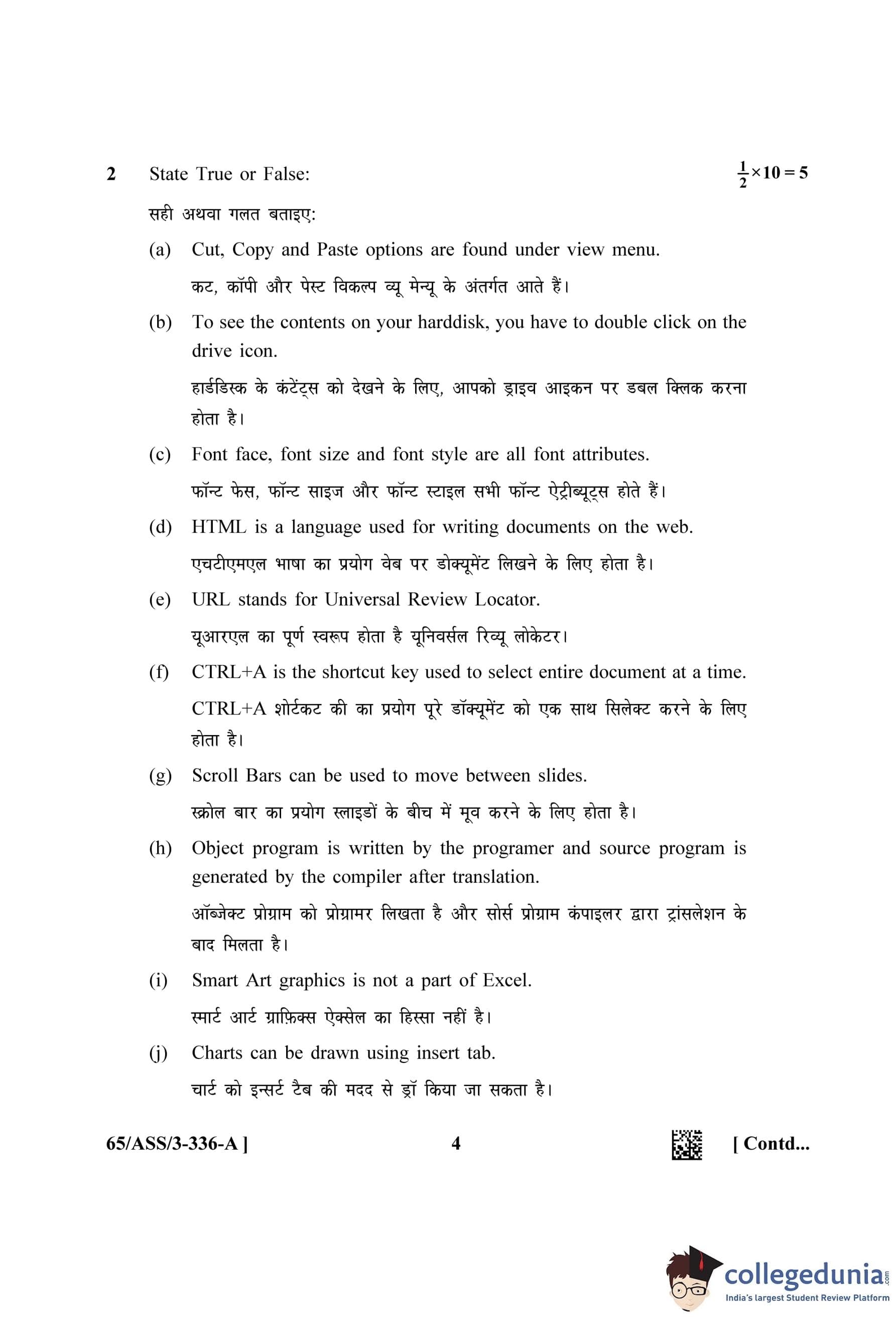 NIOS Class 12 Data Entry Operations (Set A - ASS) Question Paper 2023 with Answer Key