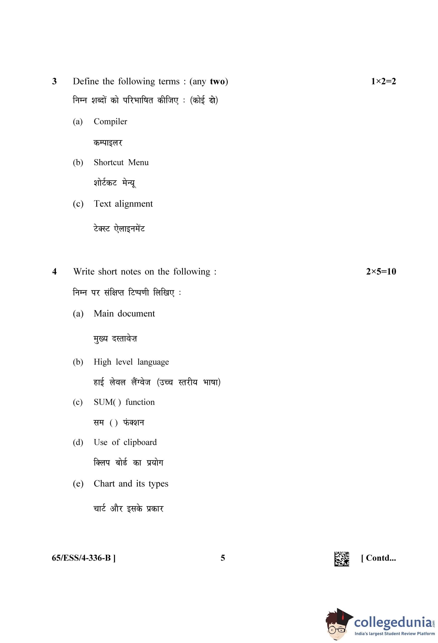 NIOS Class 12 Data Entry Operations (Set B - ESS) Question Paper 2023 with Answer Key