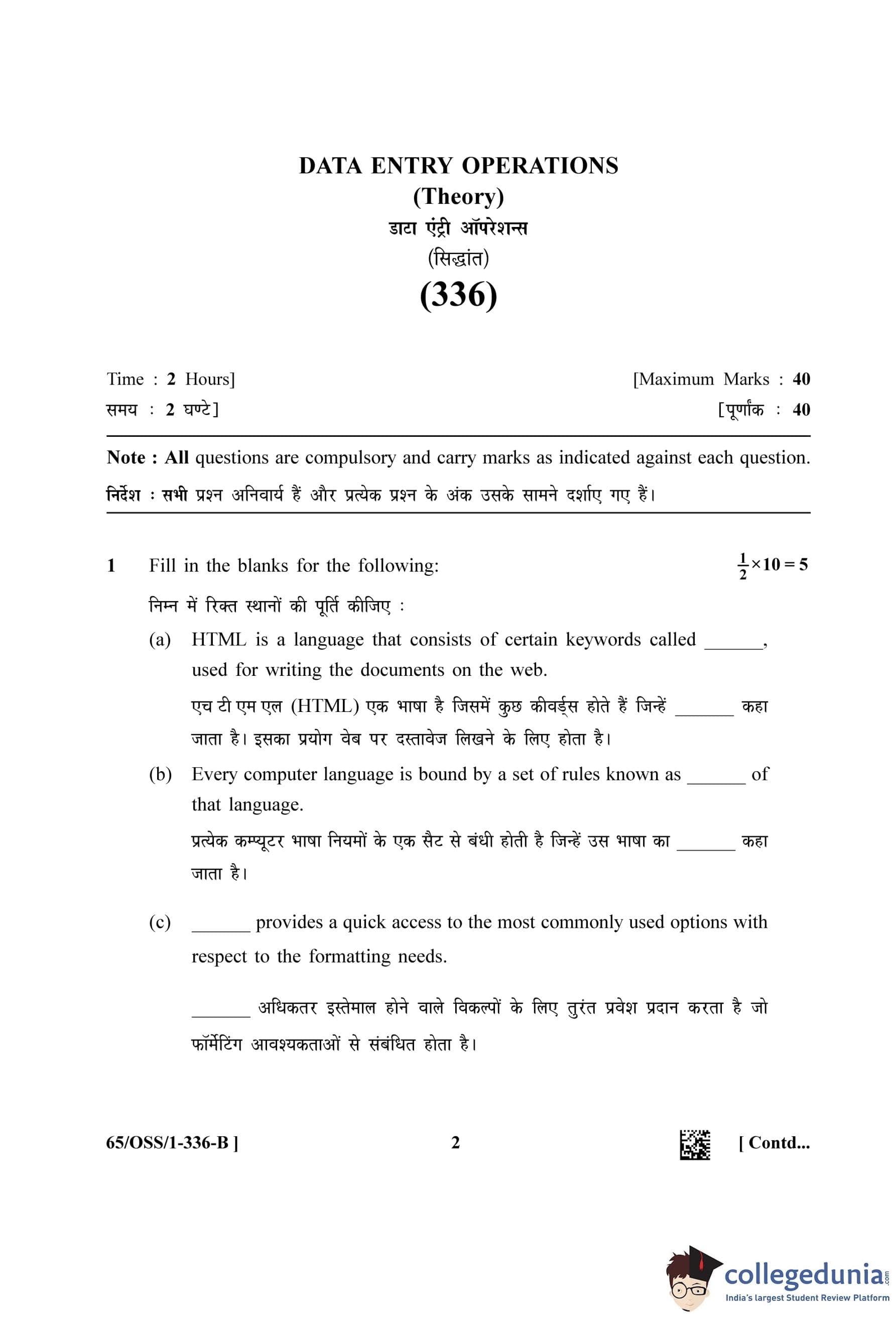 | NIOS Class 12 Data Entry Operations Question Paper 2023 PDF | NIOS Class 12 Data Entry Operations Answer Key 2023 PDF |