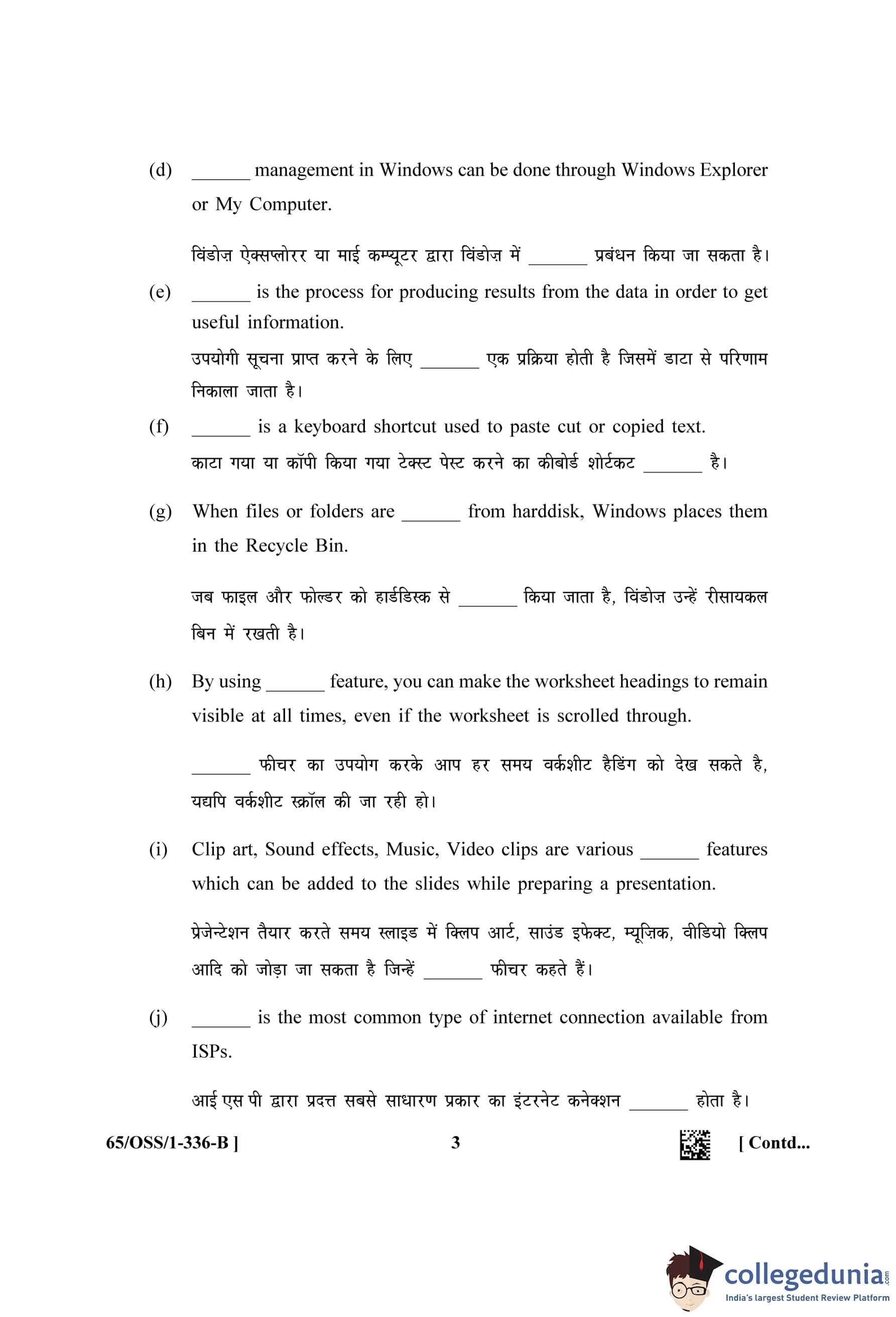 NIOS Class 12 Data Entry Operations (Set B - OSS) Question Paper 2023 with Answer Key