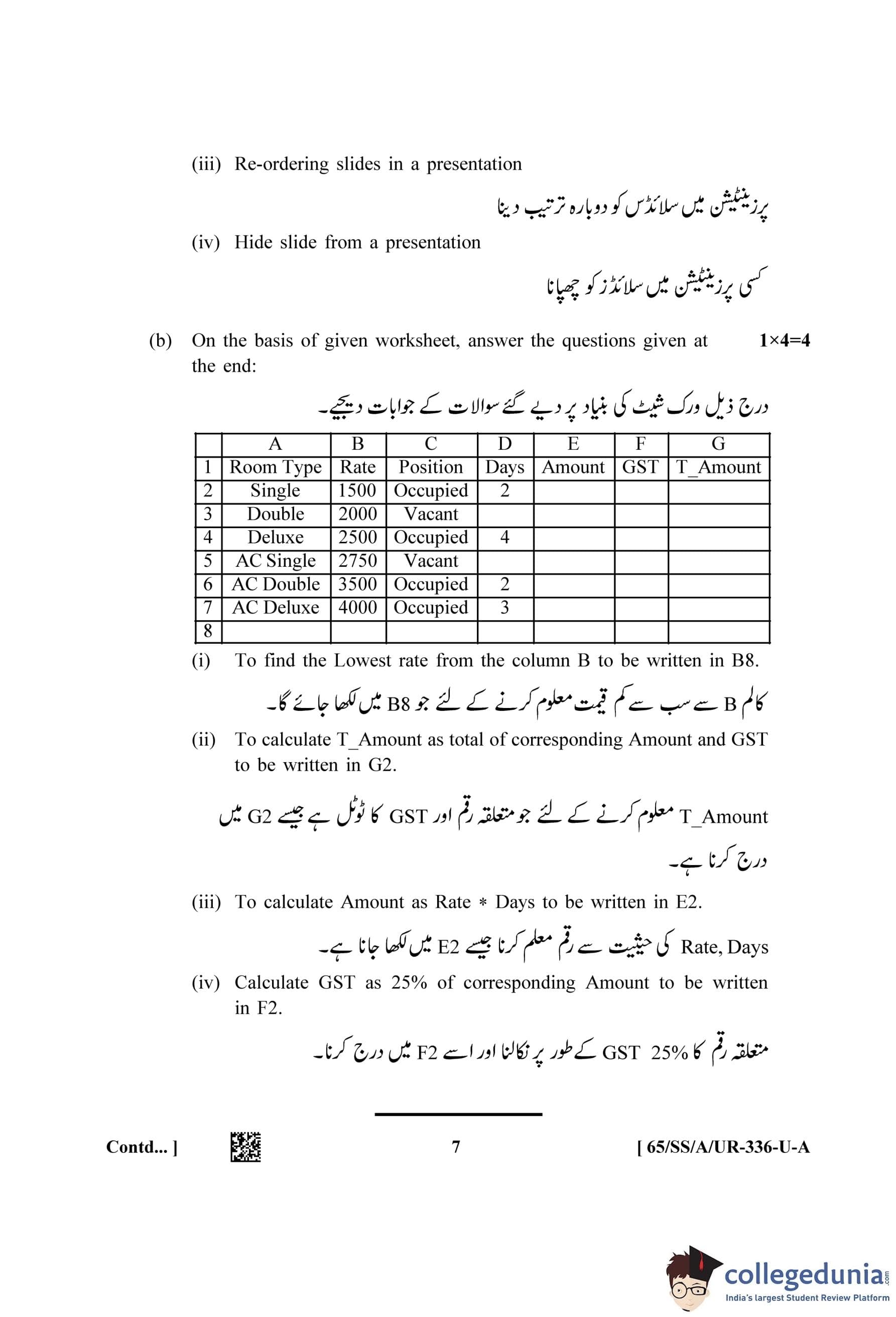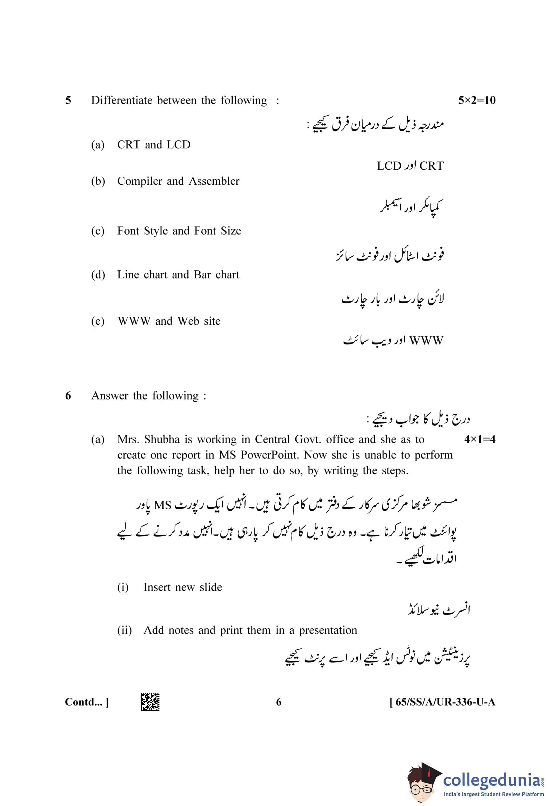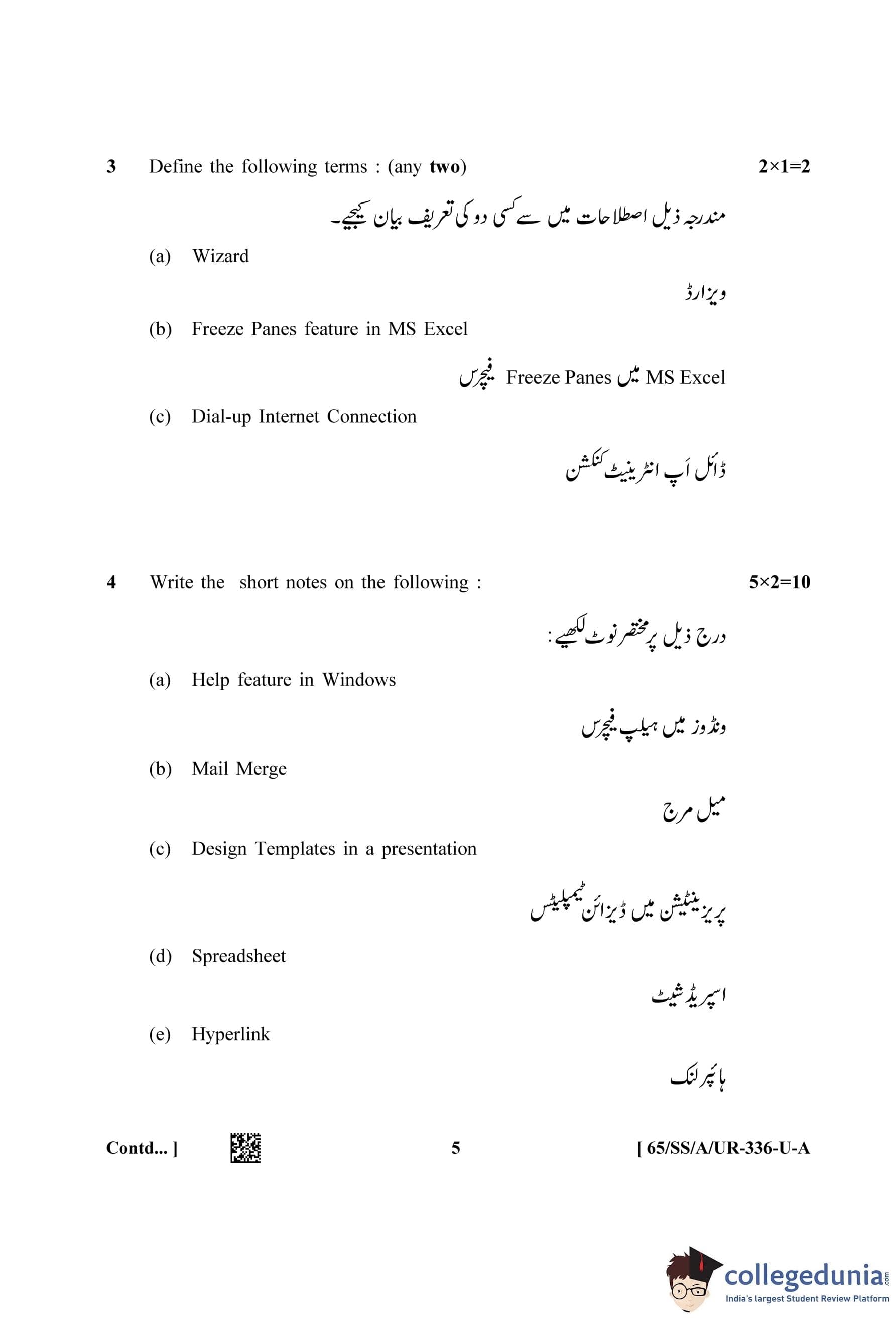 NIOS Class 12 Data Entry Operations Urdu (Set A) Question Paper 2023 with Answer Key