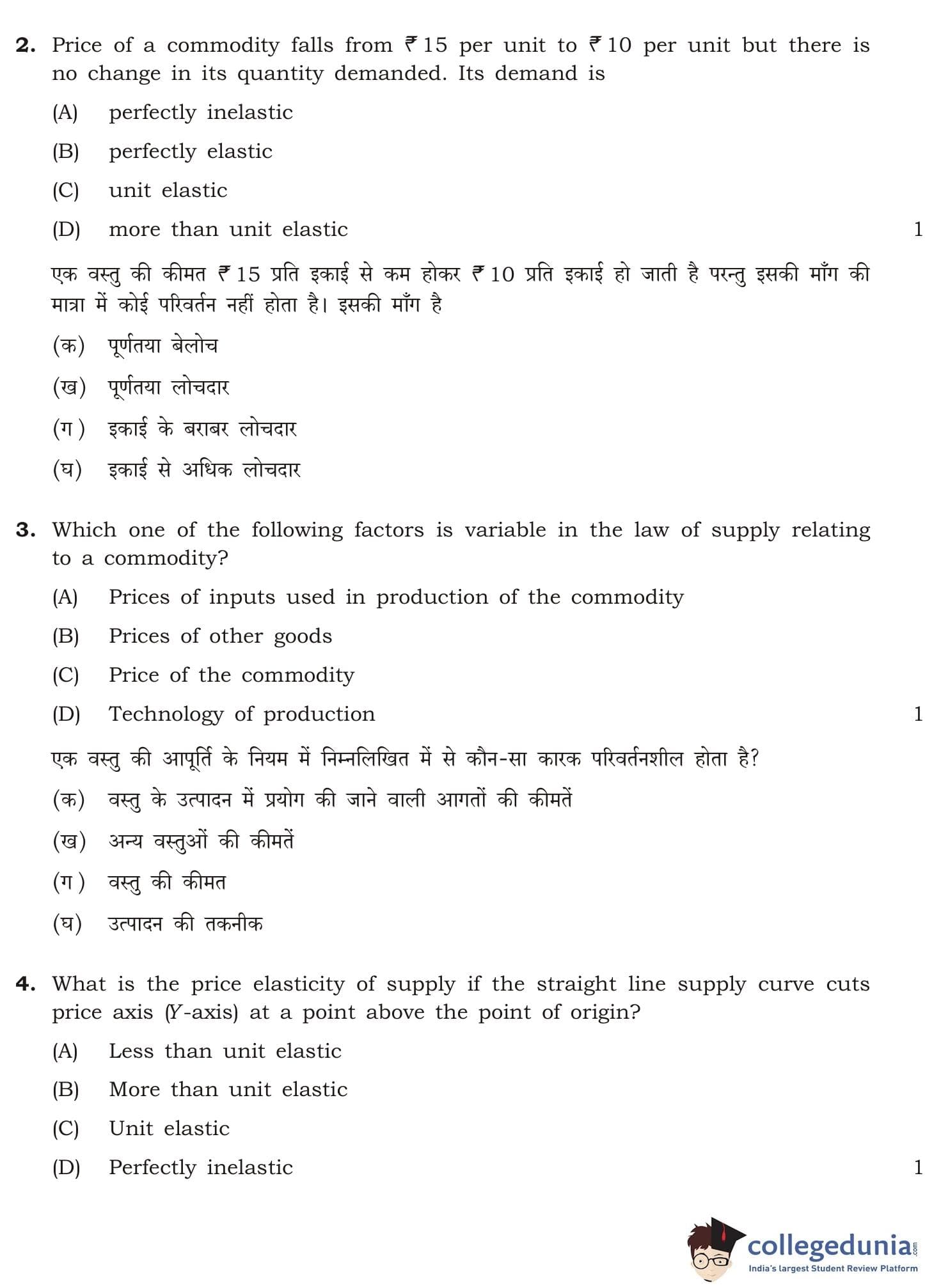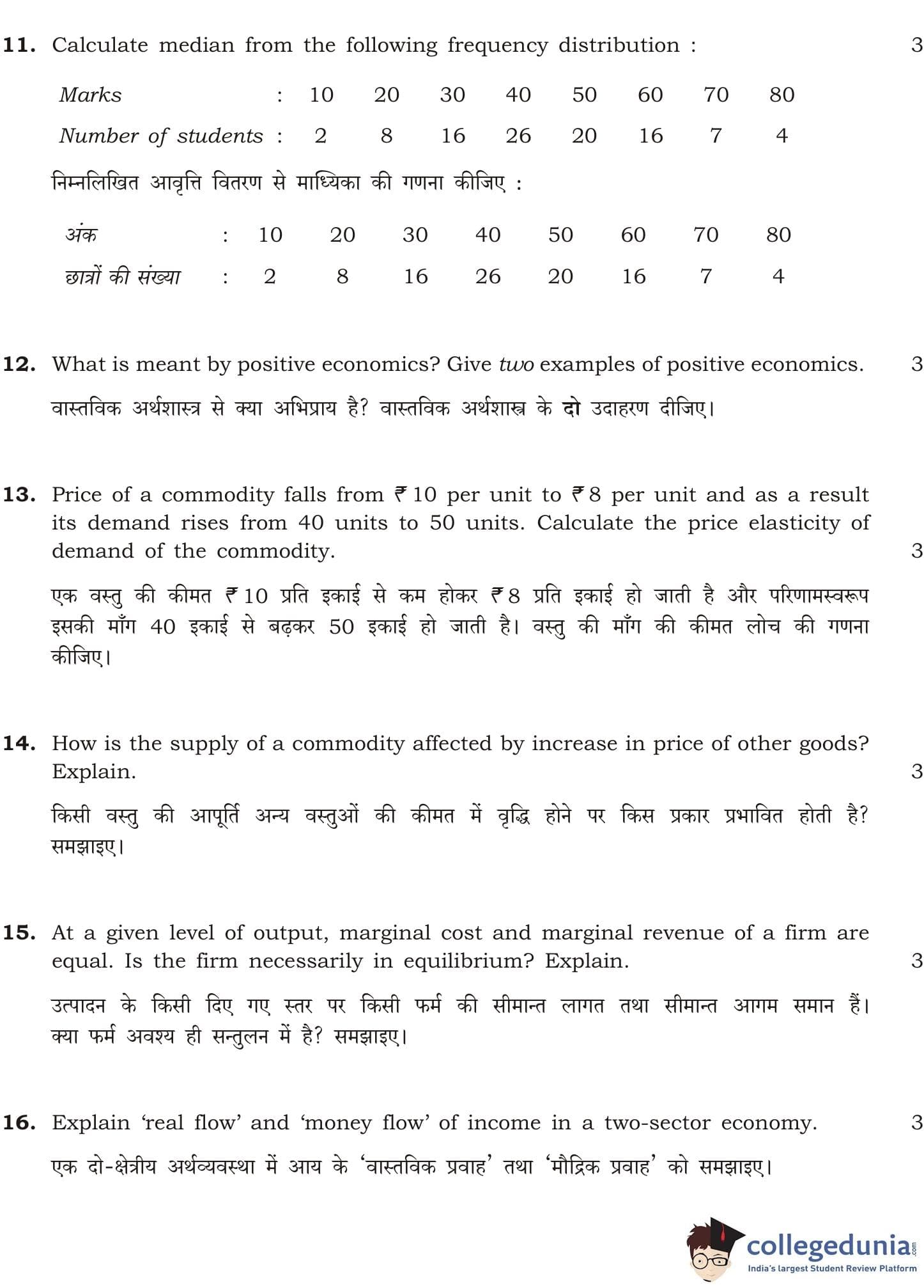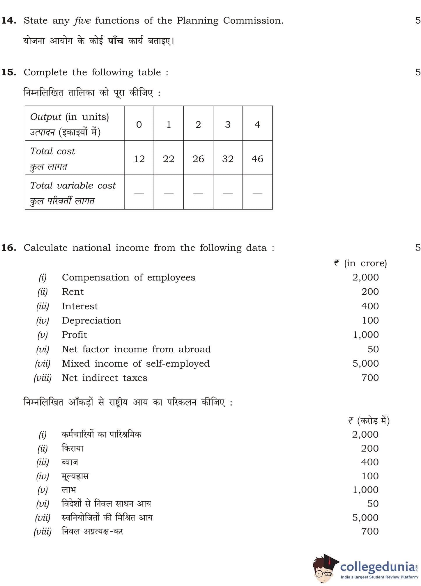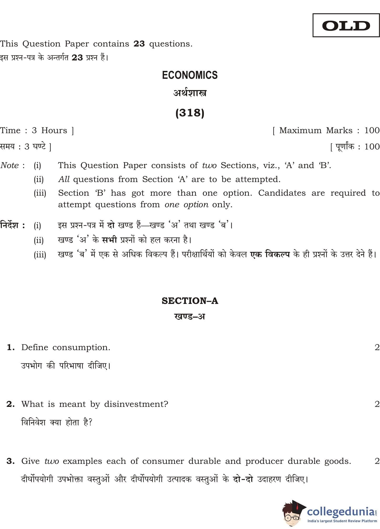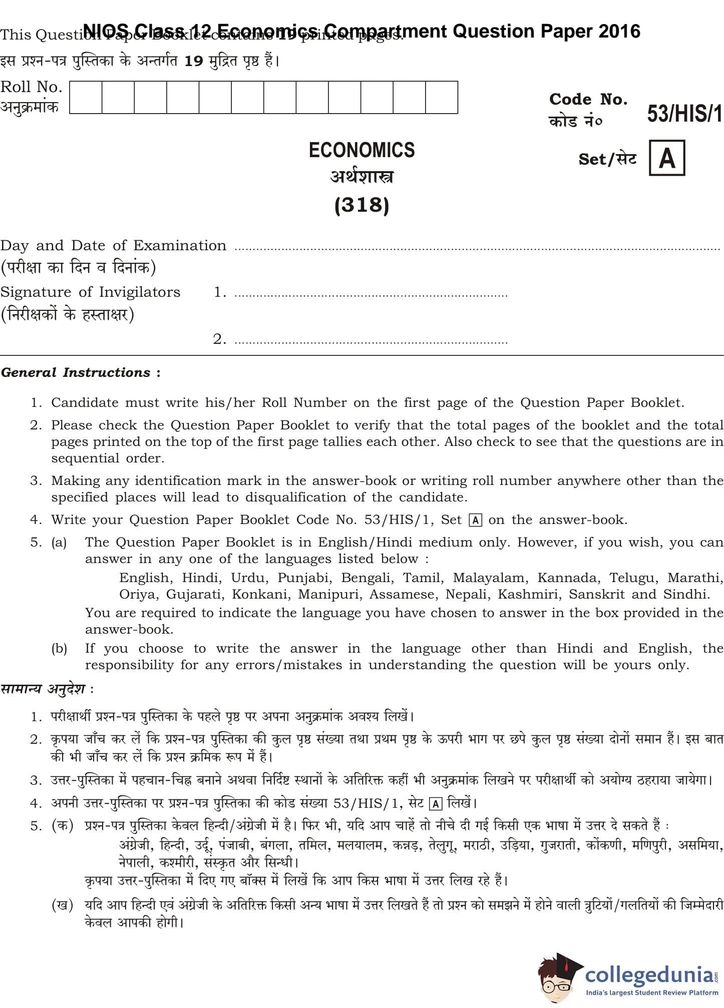 NIOS Class 12 Economics Compartment Question Paper 2016 with Answer Key