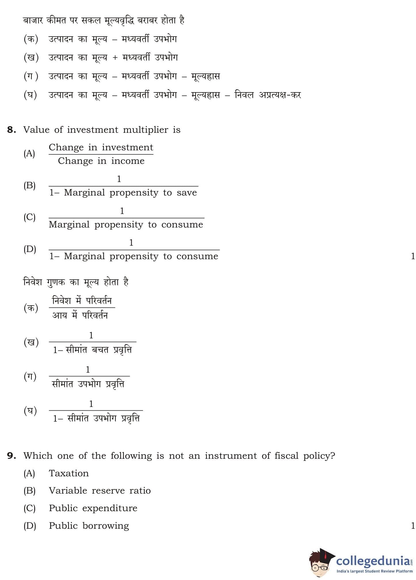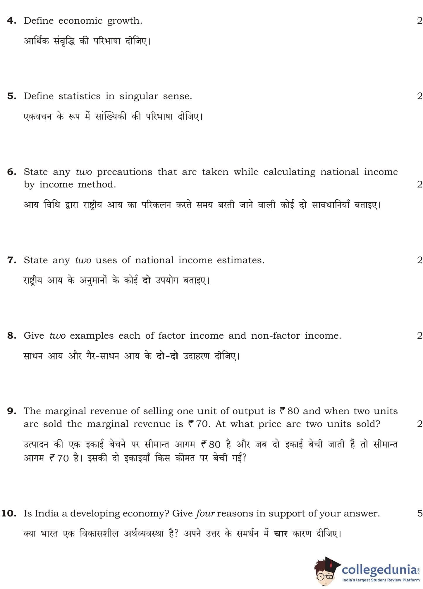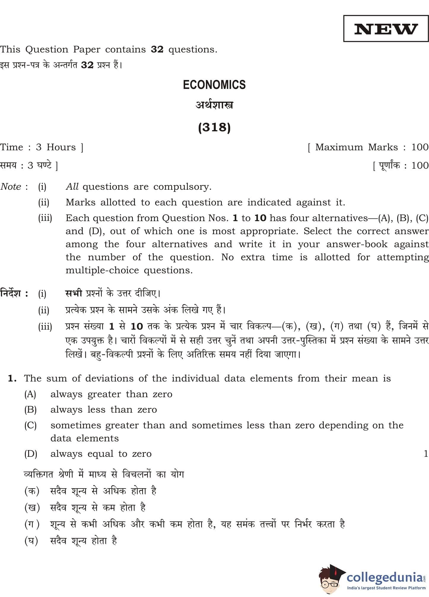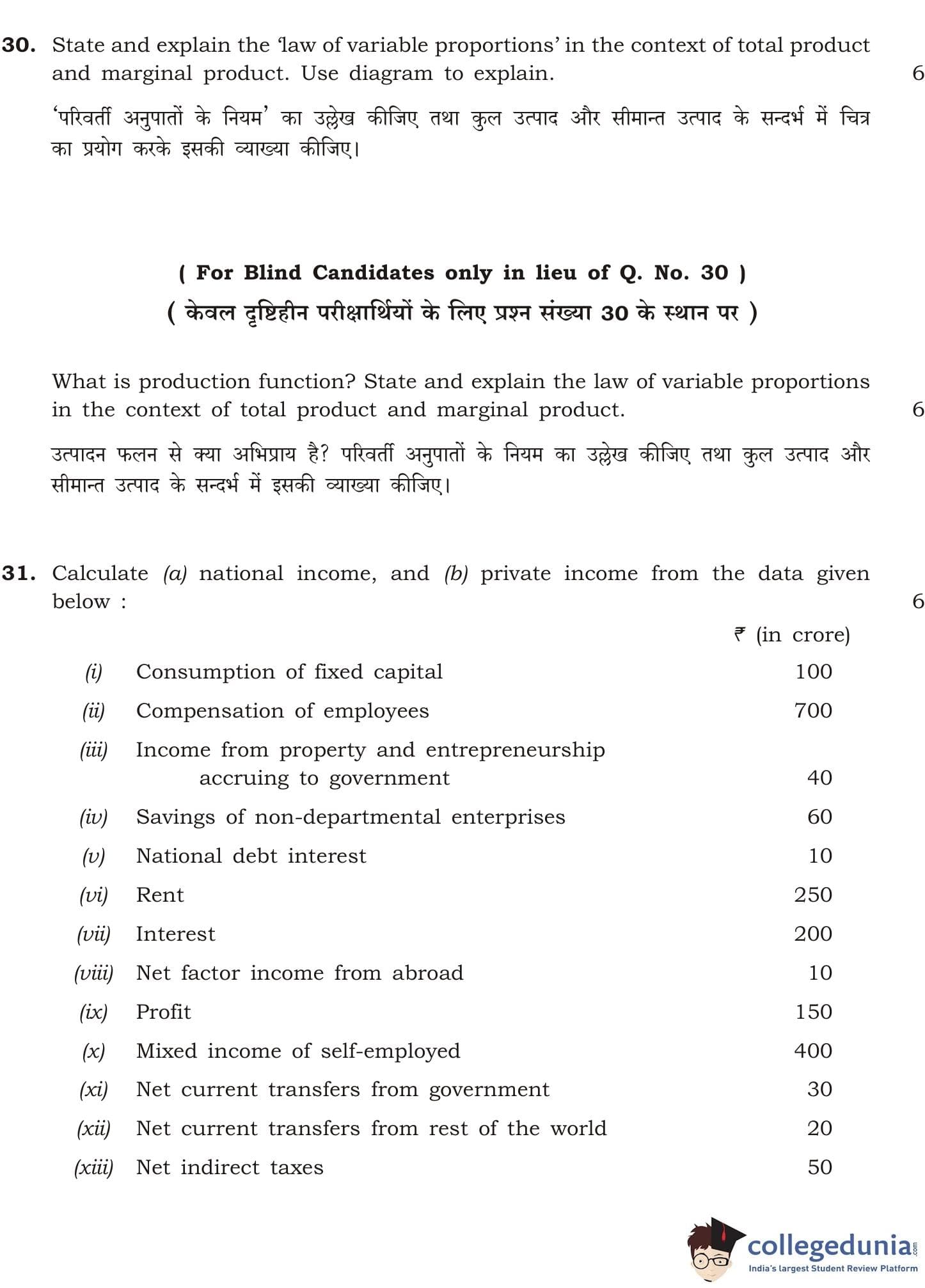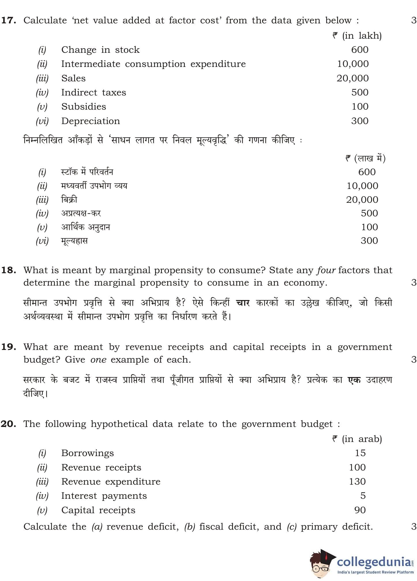 NIOS Class 12 Economics Compartment Question Paper 2016 with Answer Key