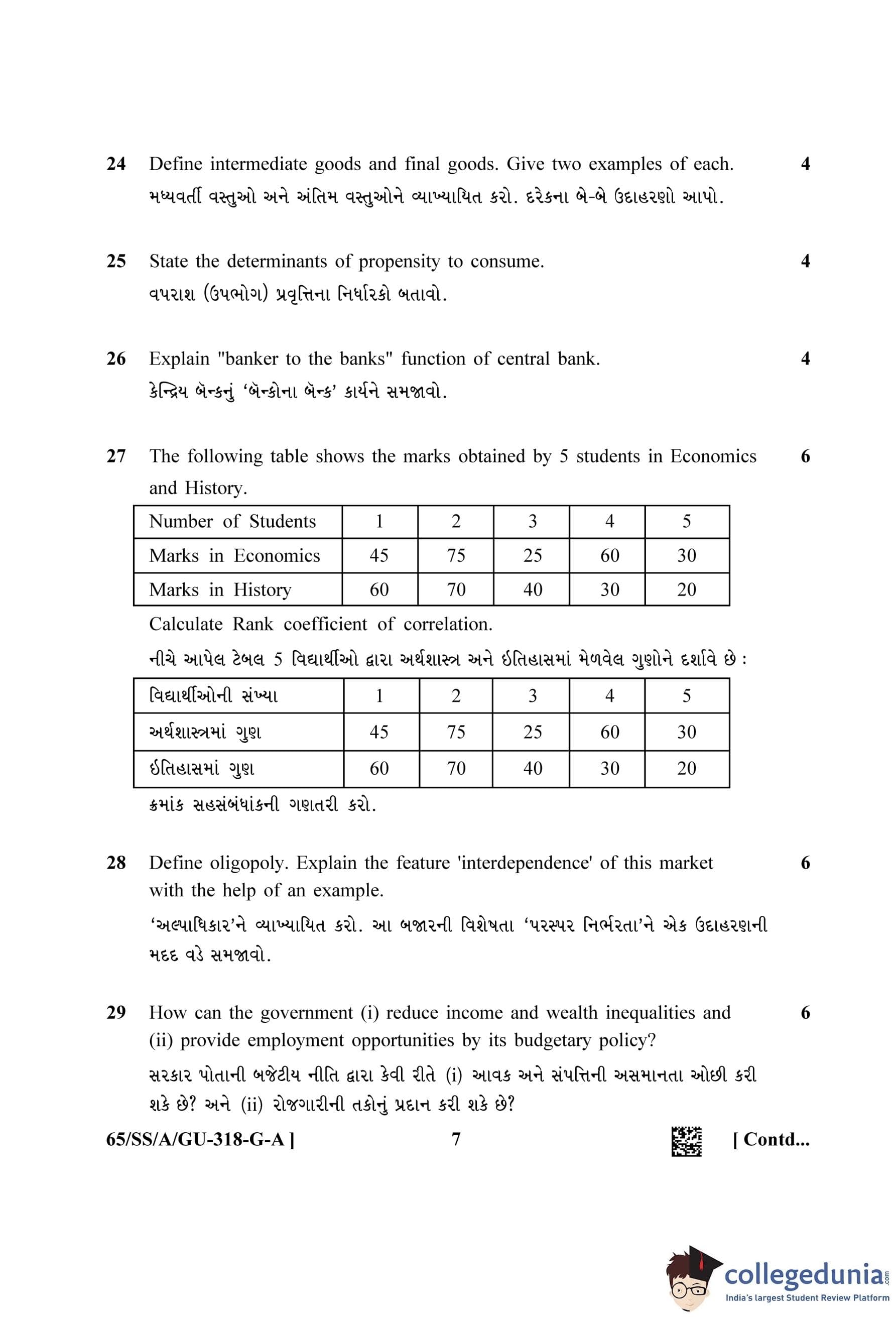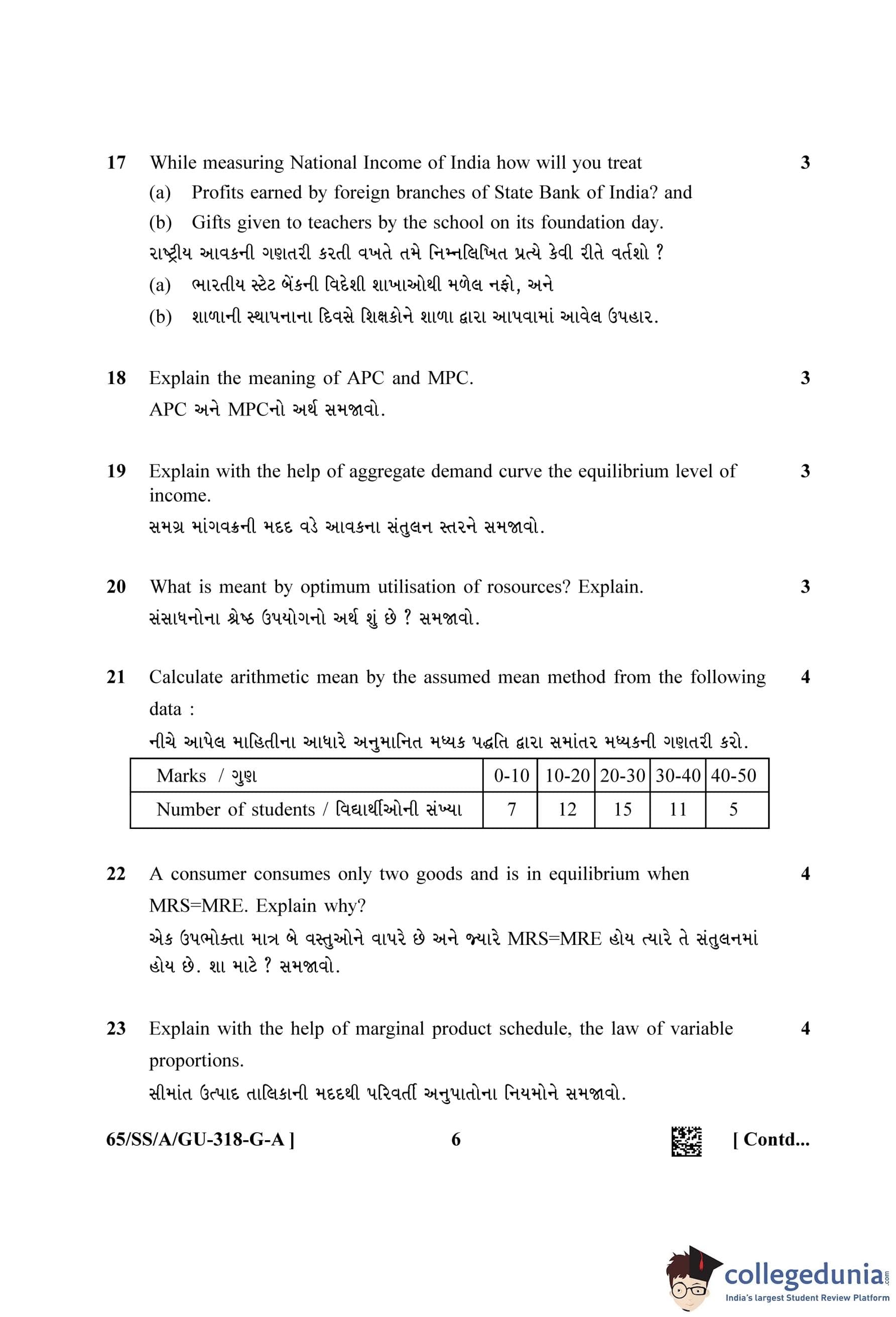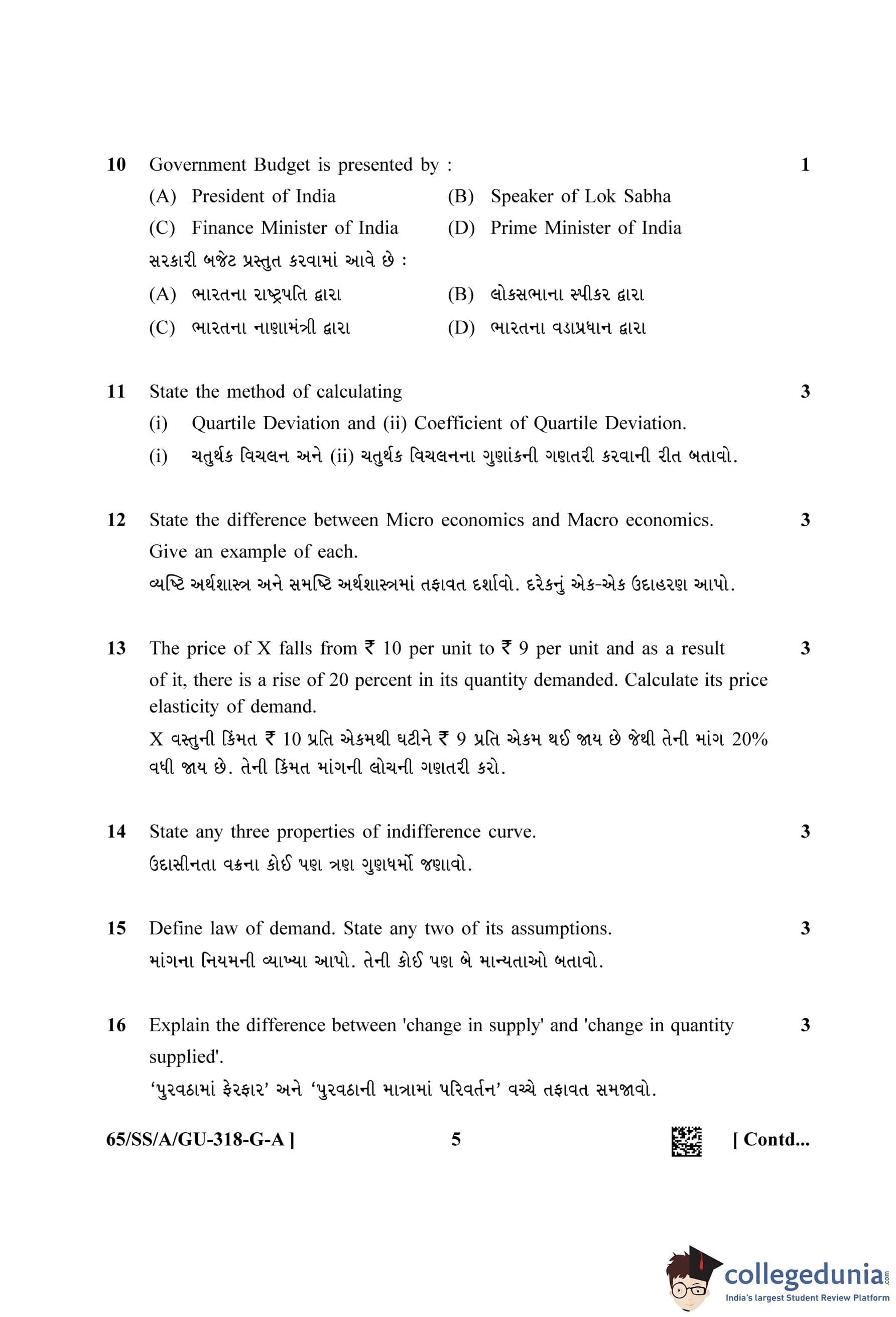 NIOS Class 12 Economics Gujarati (Set A) Question Paper 2023 with Answer Key