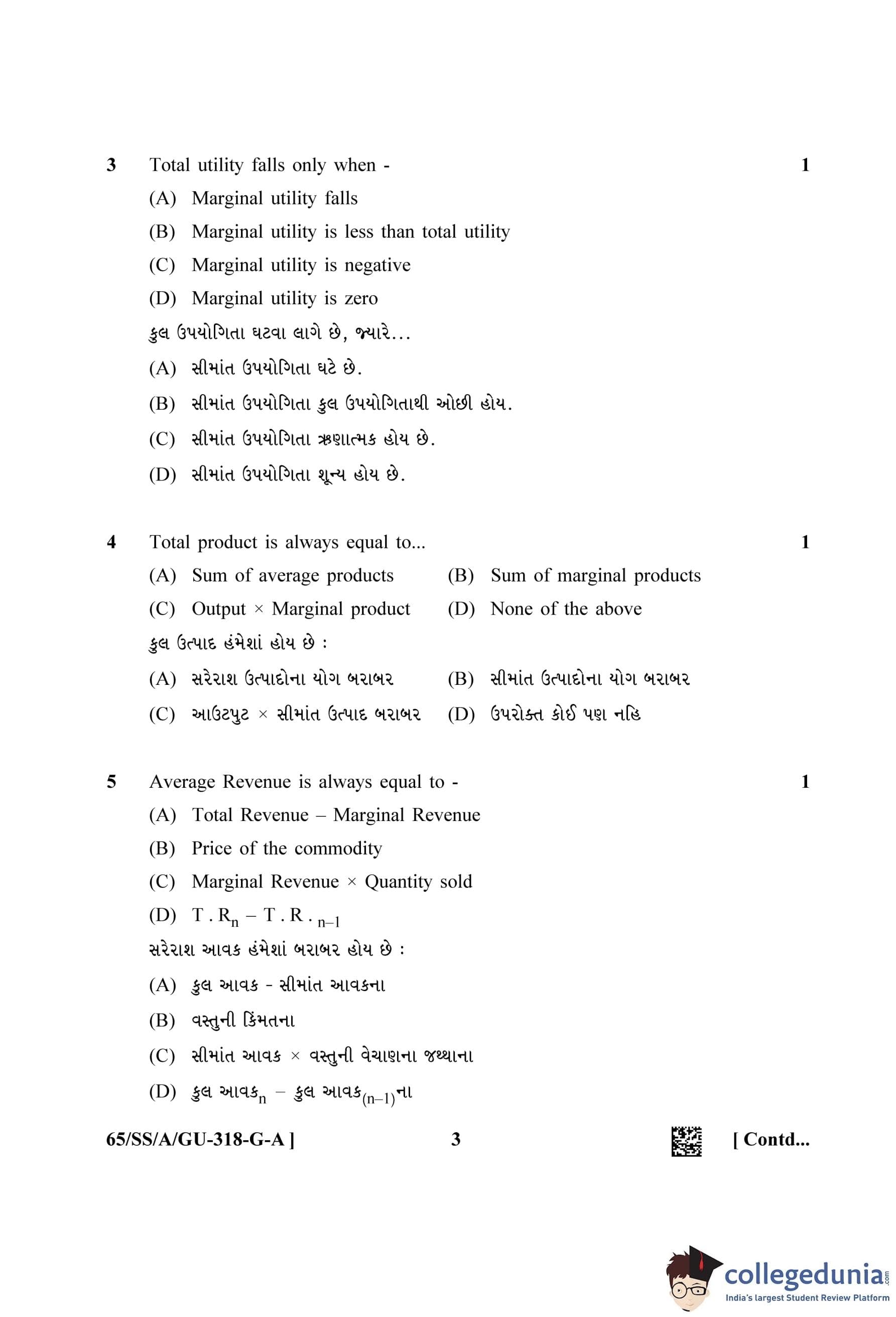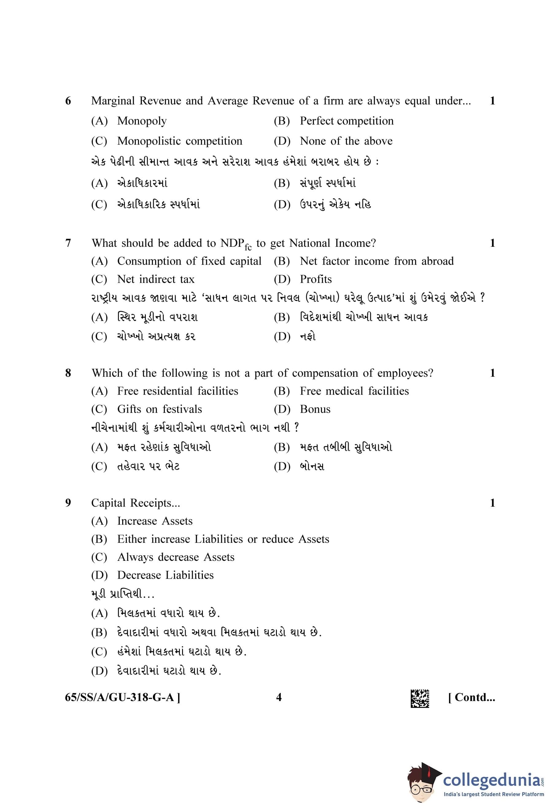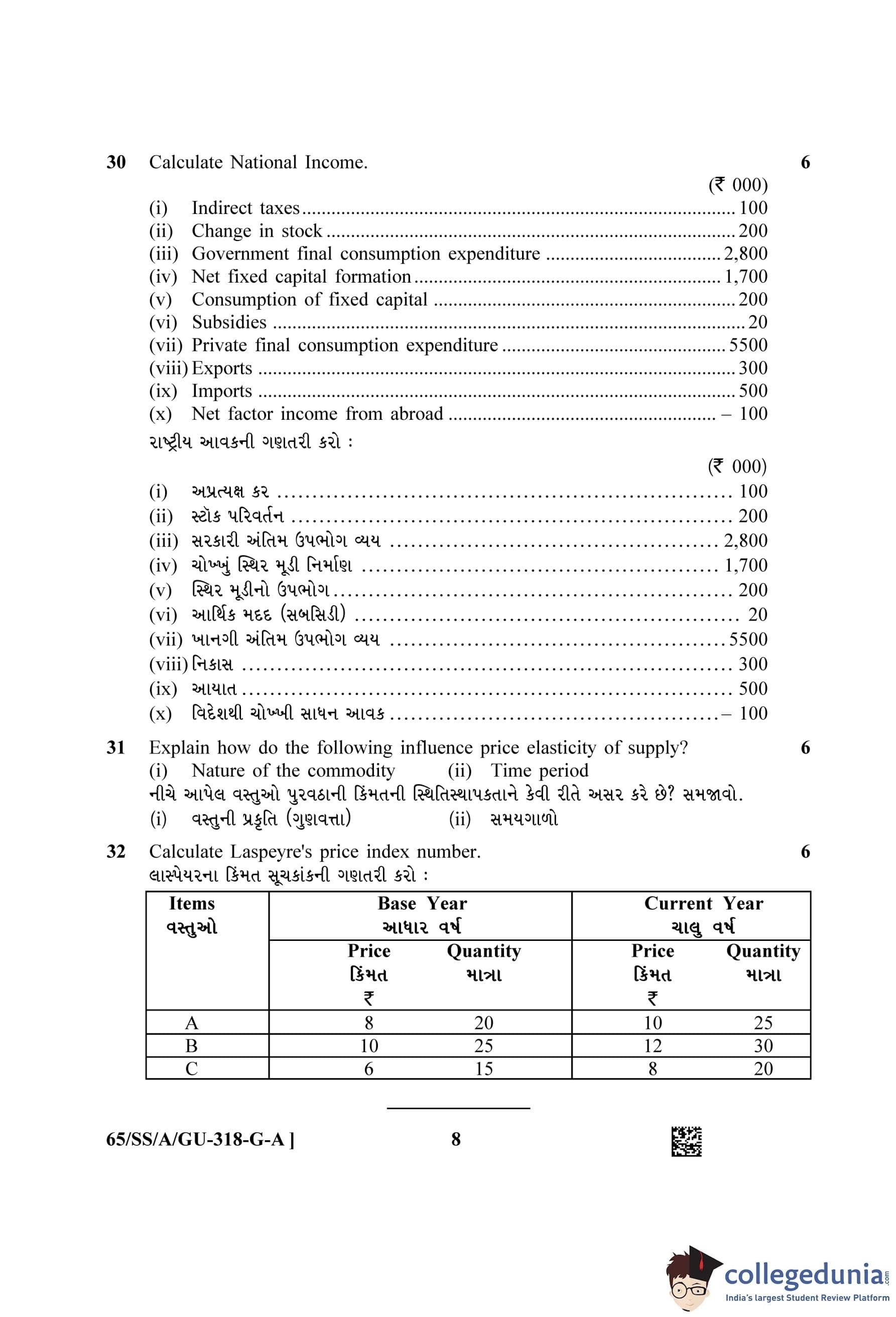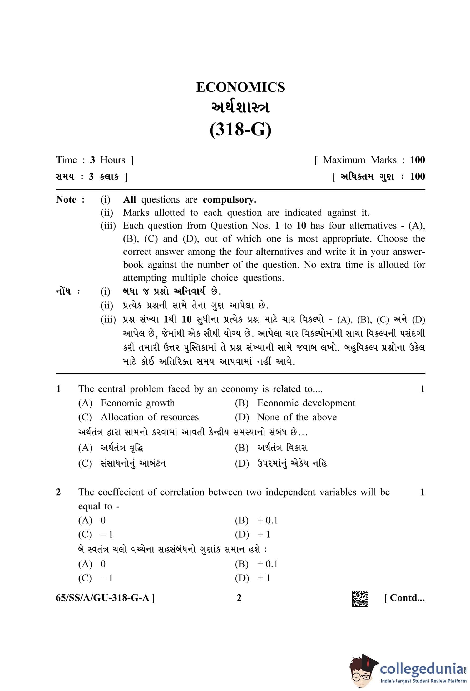 NIOS Class 12 Economics Gujarati (Set A) Question Paper 2023 with Answer Key