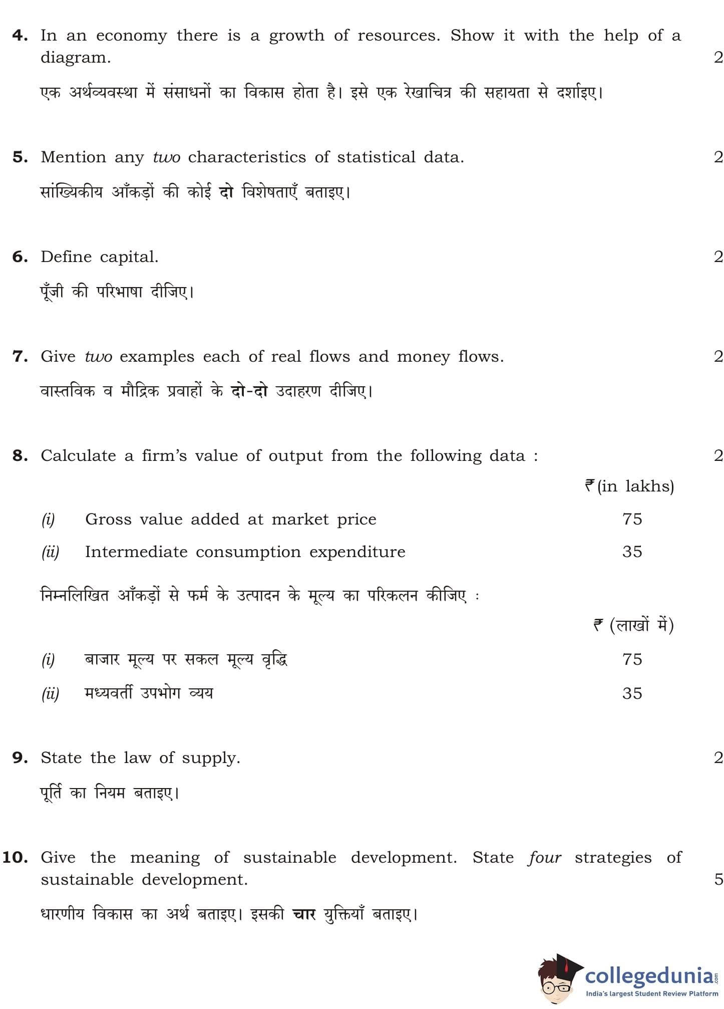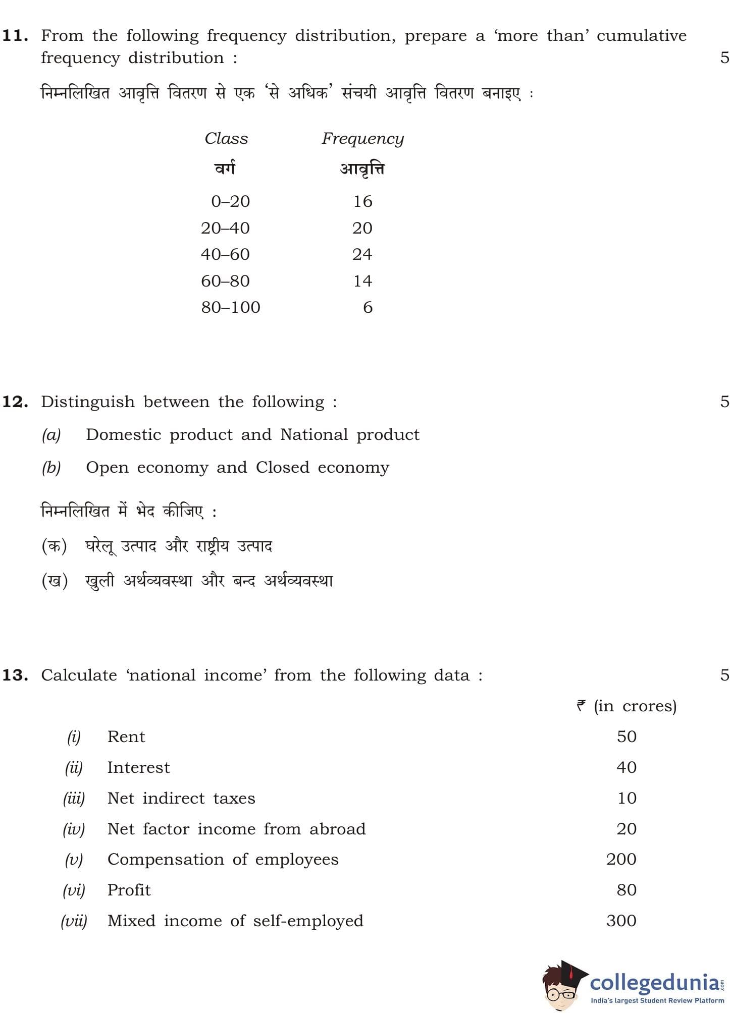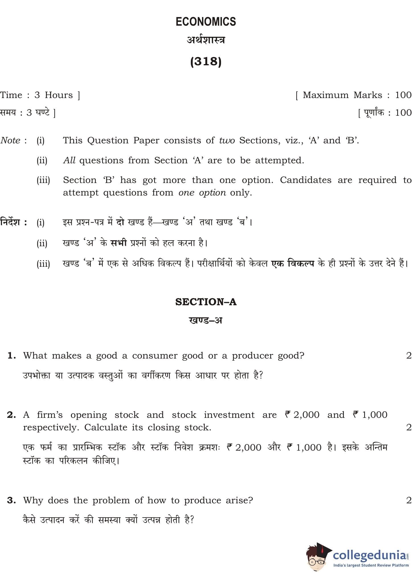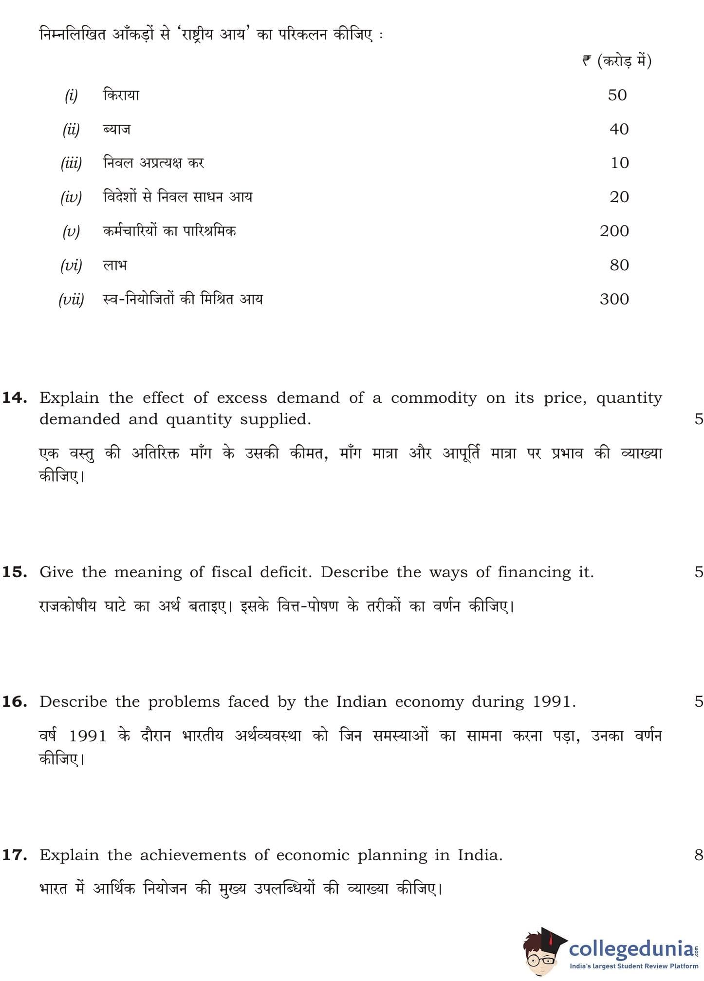 NIOS Class 12 Economics Question Paper 2015 with Answer Key
