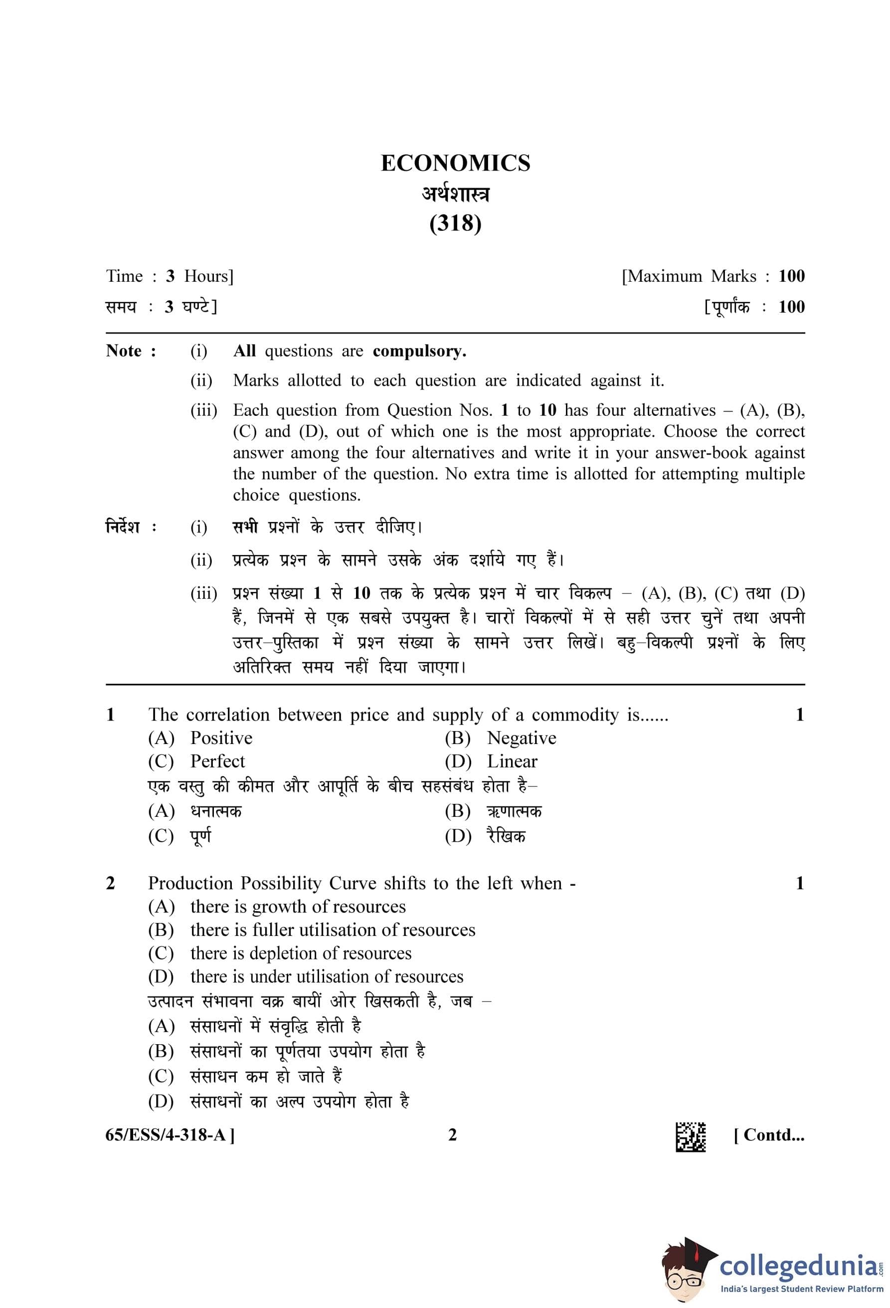 NIOS Class 12 Economics Question Paper 2023 with Answer Key pdf (Set A - ESS) is available for download here. The exam was conducted by National Institute of Open Schooling on April 12, 2023 in the Afternoon Session 2.30 PM to 5.30 PM. The question paper comprised a total of 32 questions.