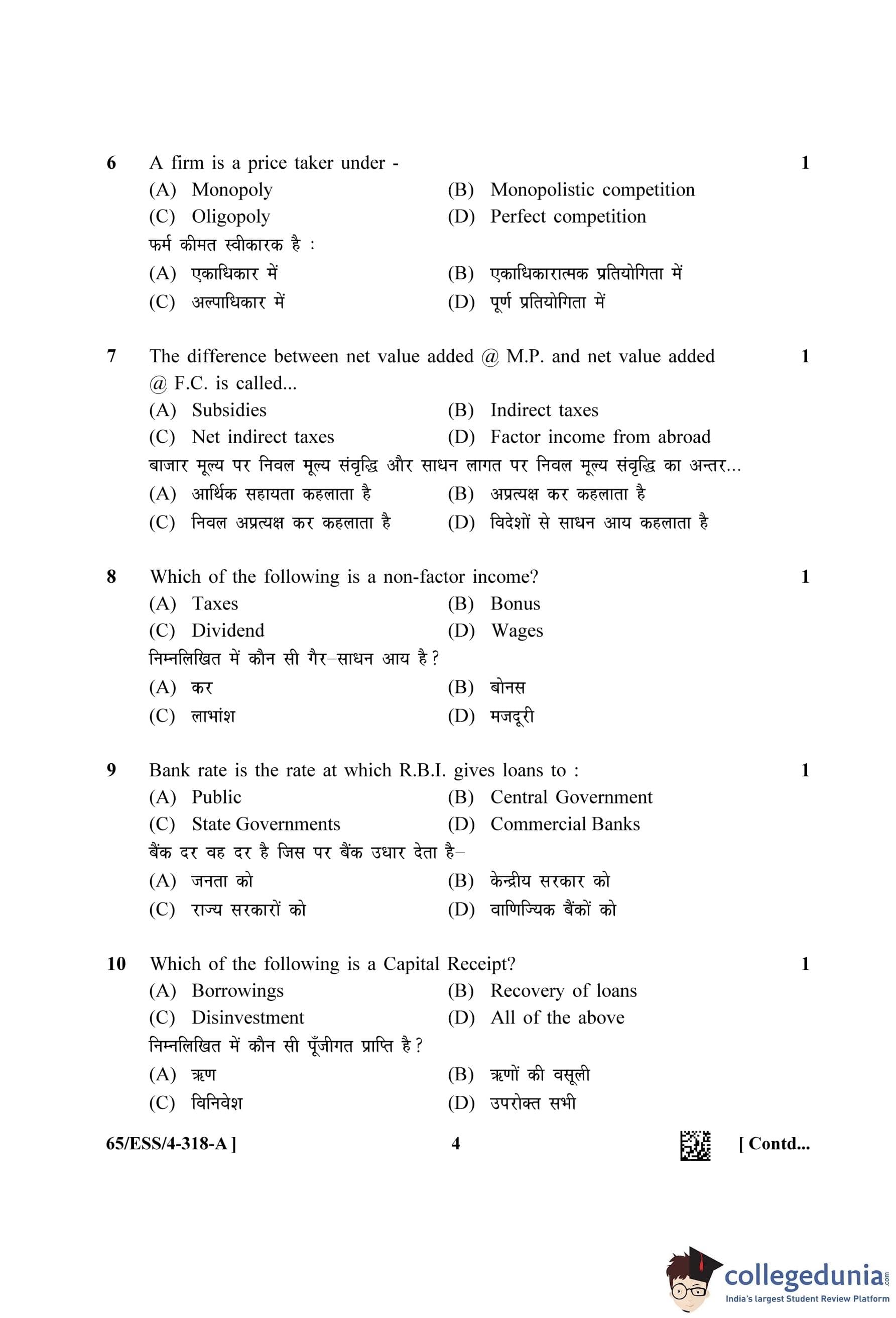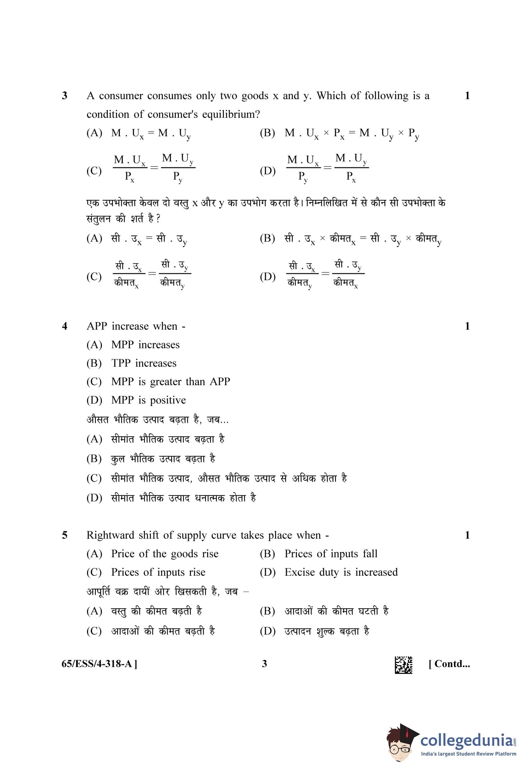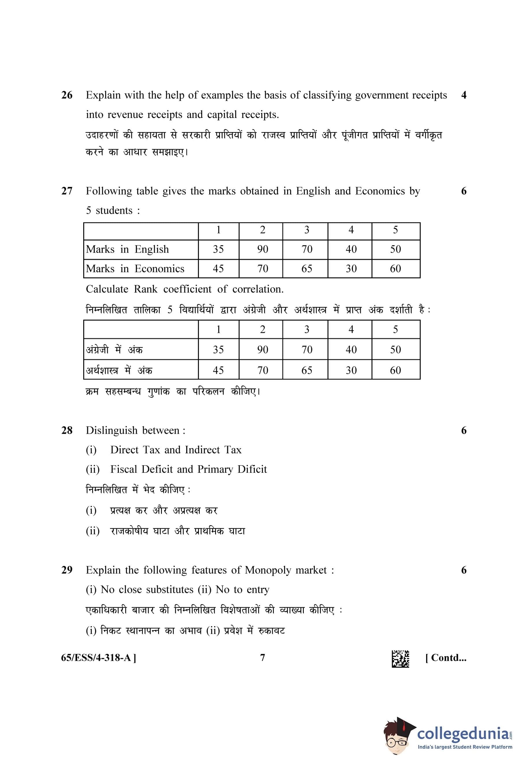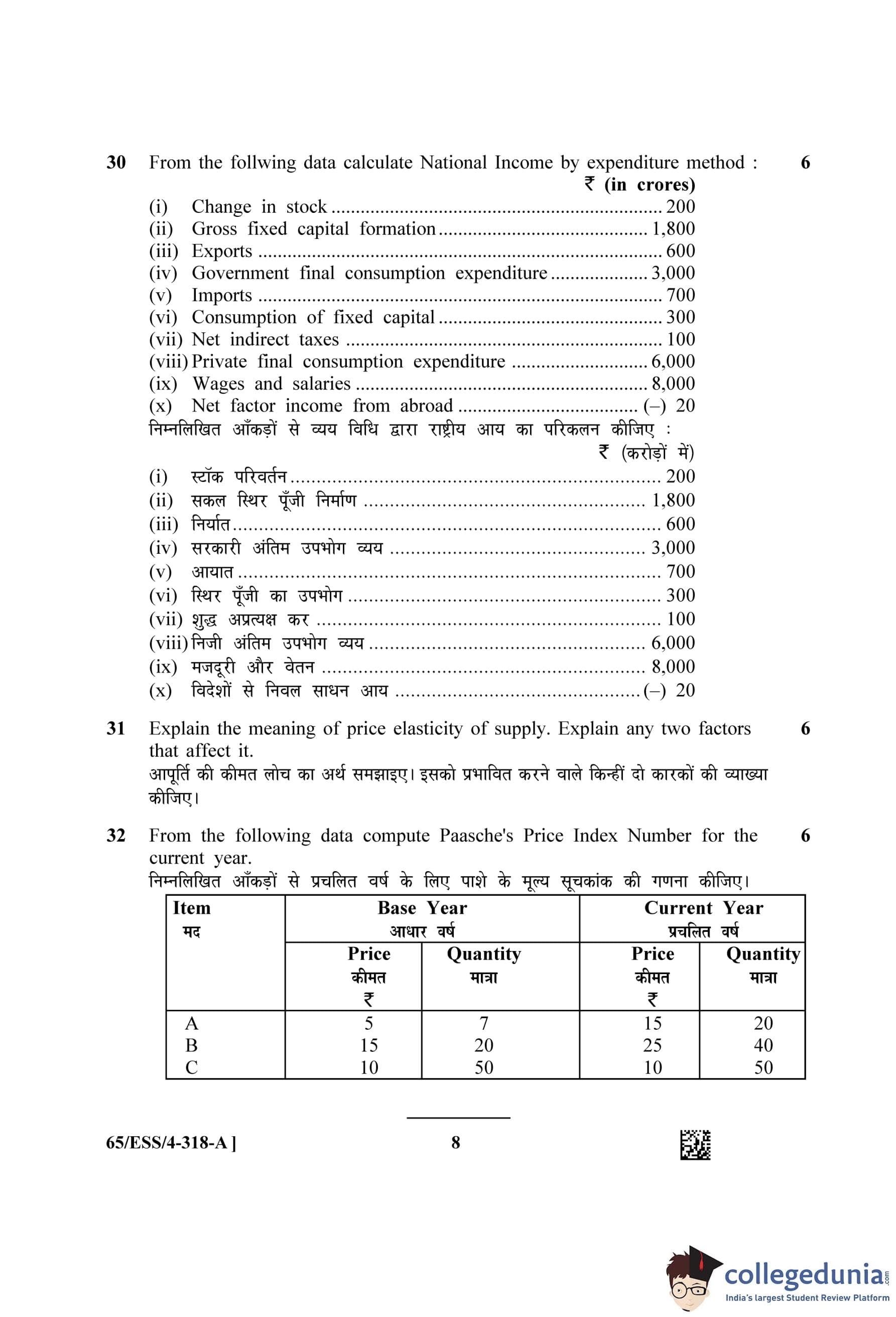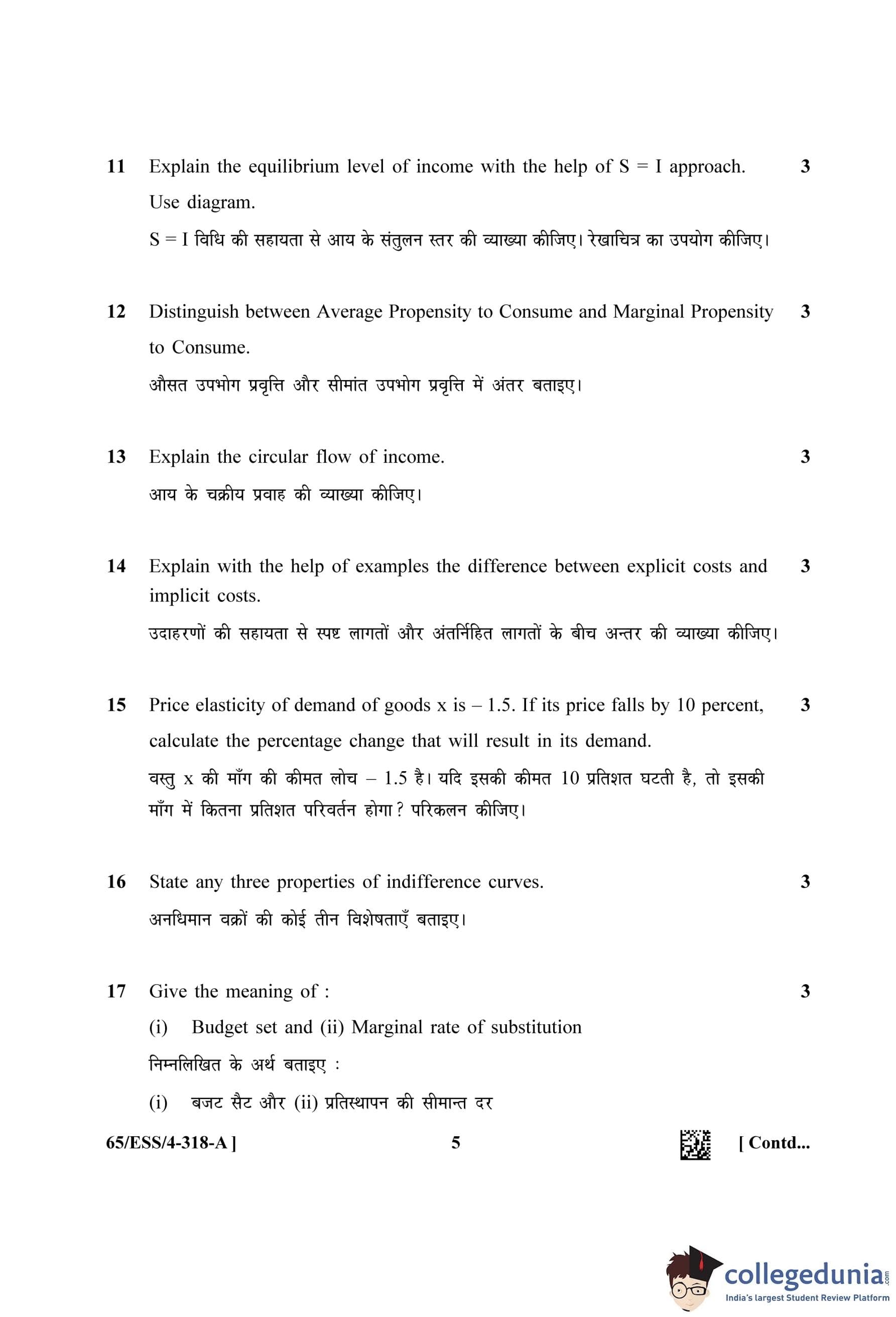 NIOS Class 12 Economics (Set A - ESS) Question Paper 2023 with Answer Key