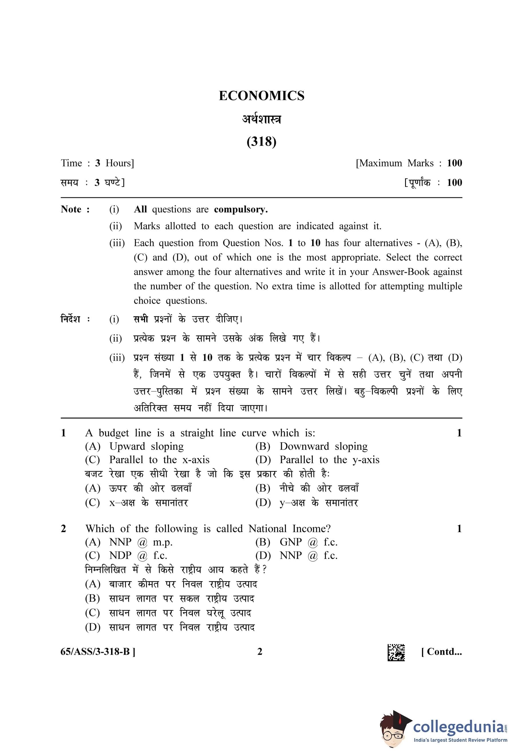 NIOS Class 12 Economics Question Paper 2023 with Answer Key pdf (Set B - ASS) is available for download here. The exam was conducted by National Institute of Open Schooling on April 12, 2023 in the Afternoon Session 2.30 PM to 5.30 PM. The question paper comprised a total of 32 questions.