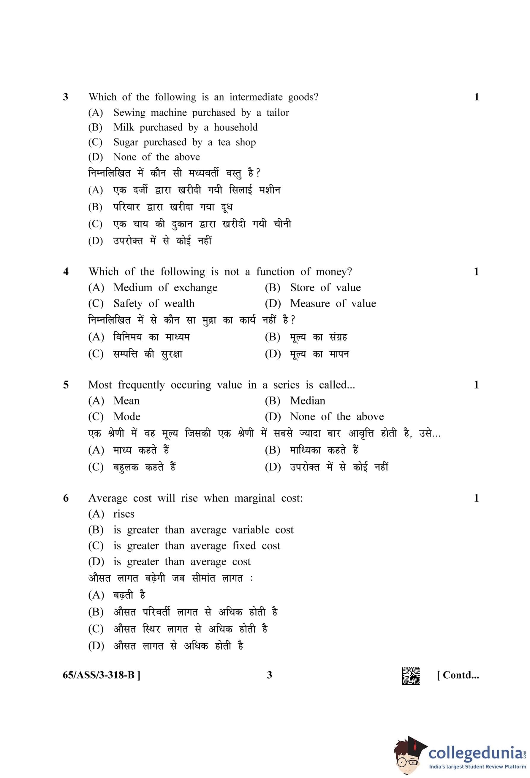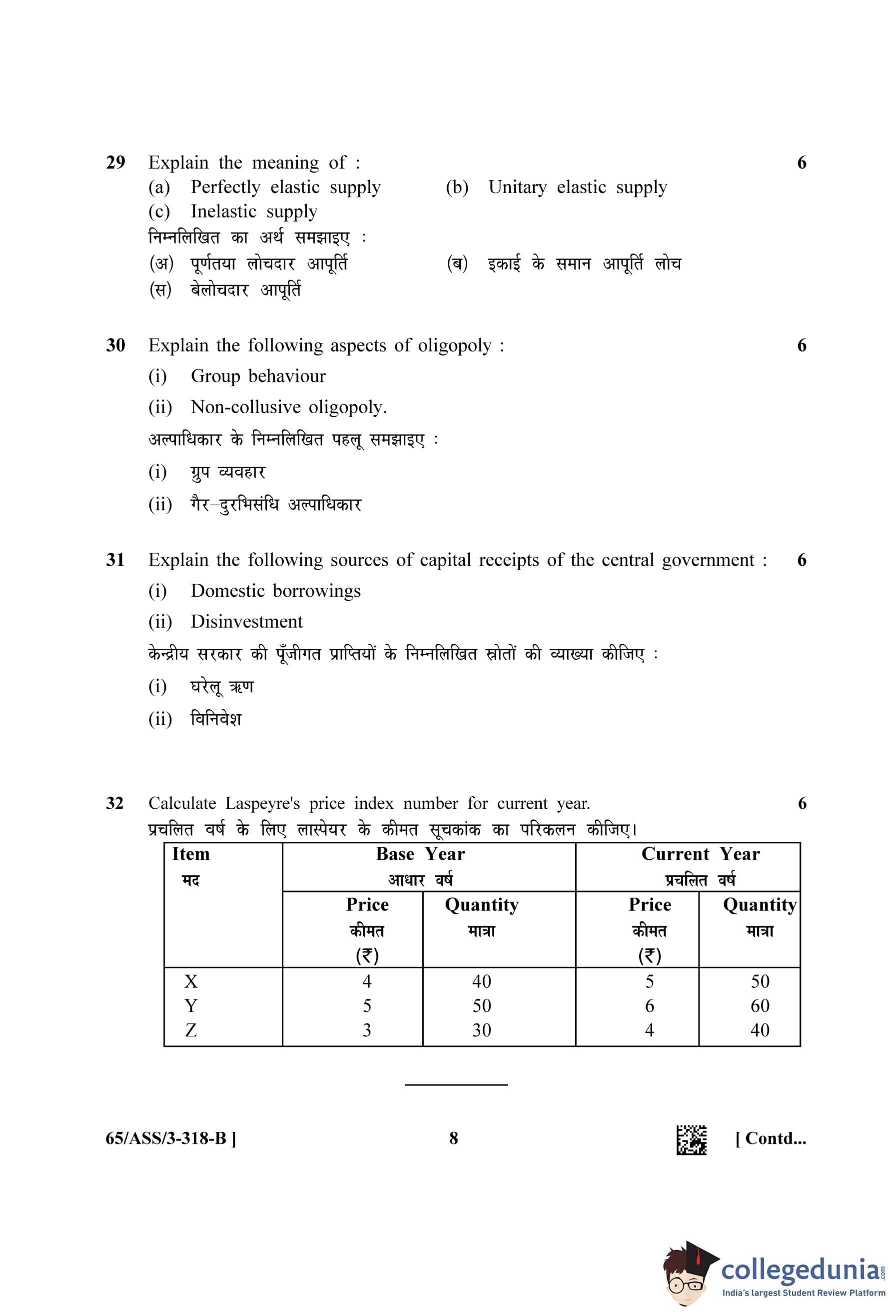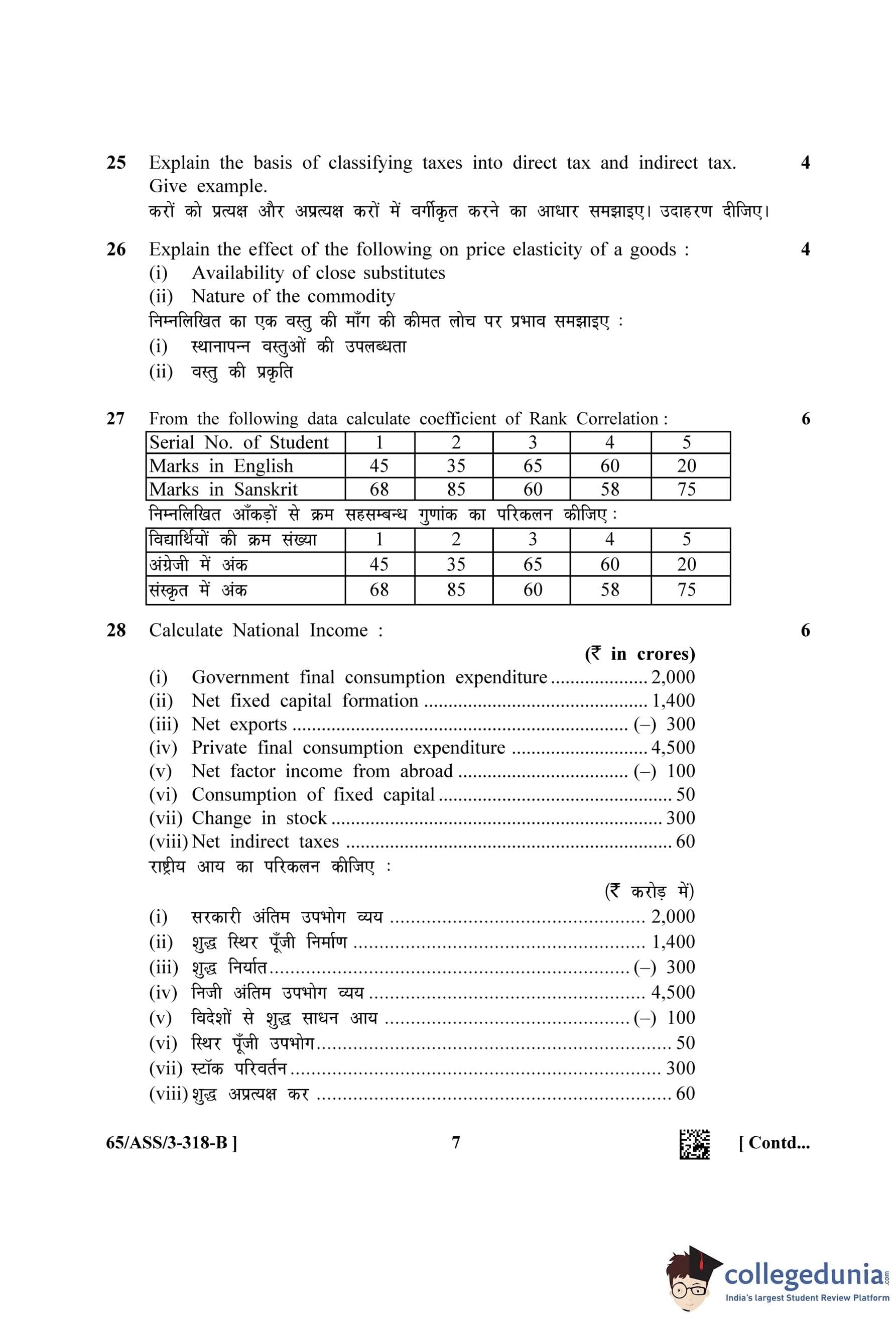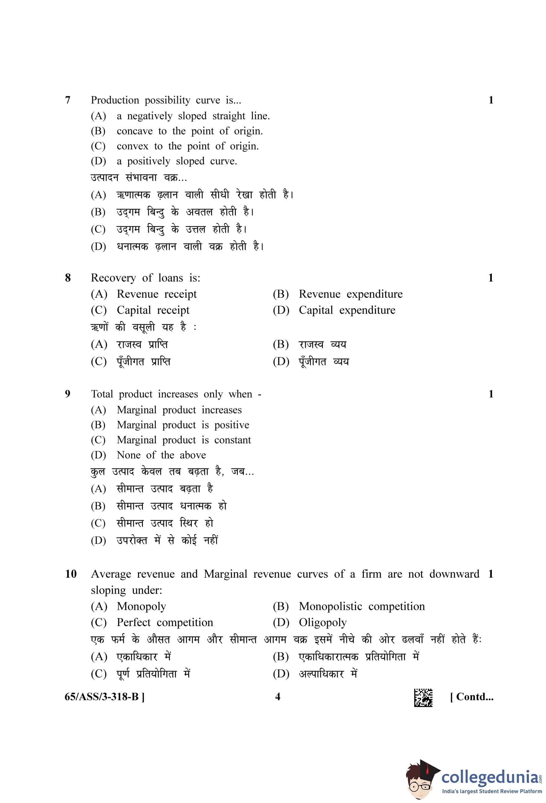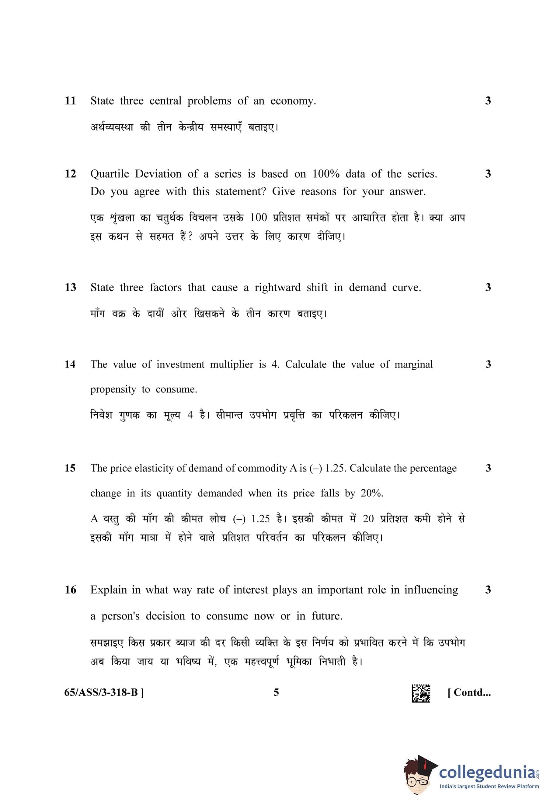 NIOS Class 12 Economics (Set B - ASS) Question Paper 2023 with Answer Key