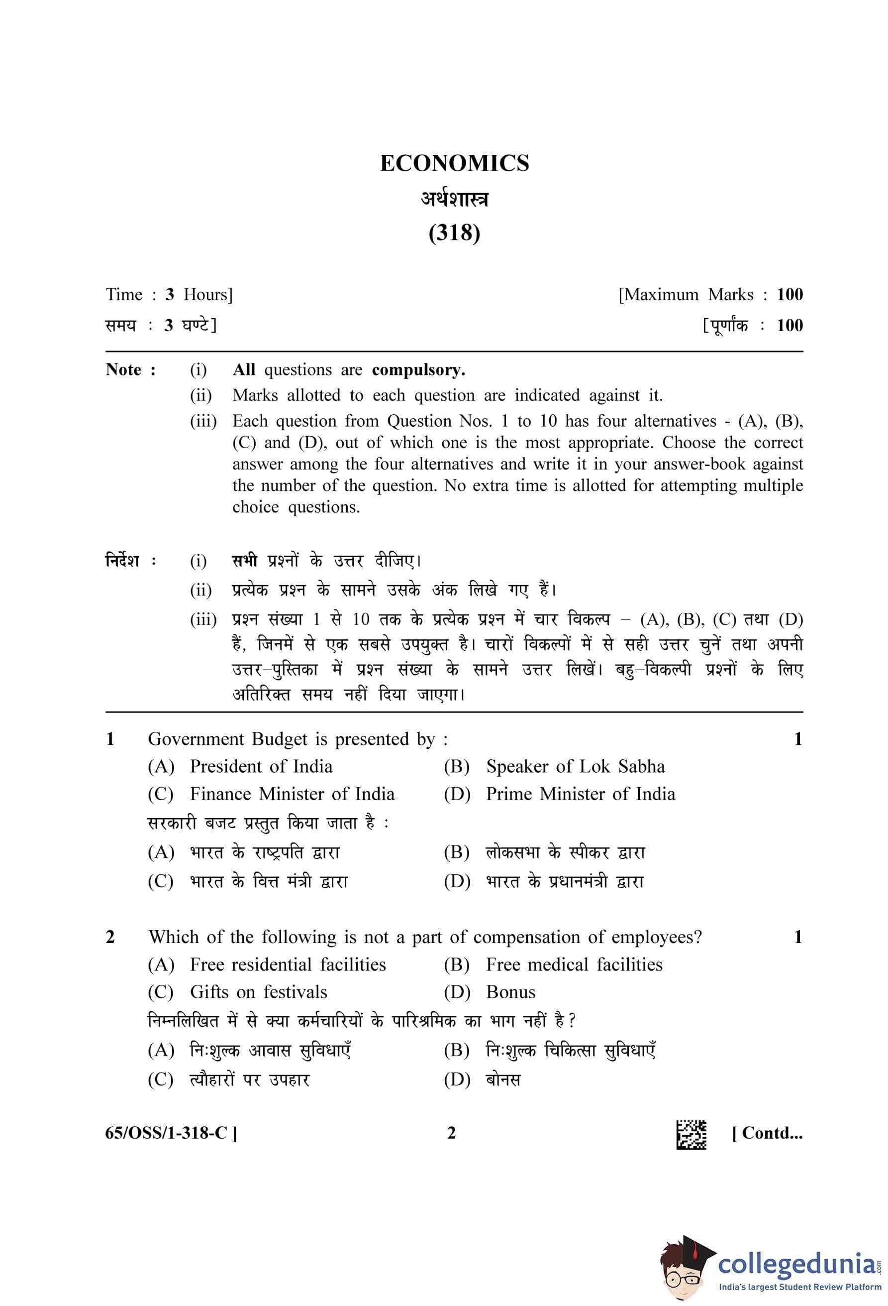 NIOS Class 12 Economics Question Paper 2023 with Answer Key pdf (Set C - OSS) is available for download here. The exam was conducted by National Institute of Open Schooling on April 12, 2023 in the Afternoon Session 2.30 PM to 5.30 PM. The question paper comprised a total of 32 questions.