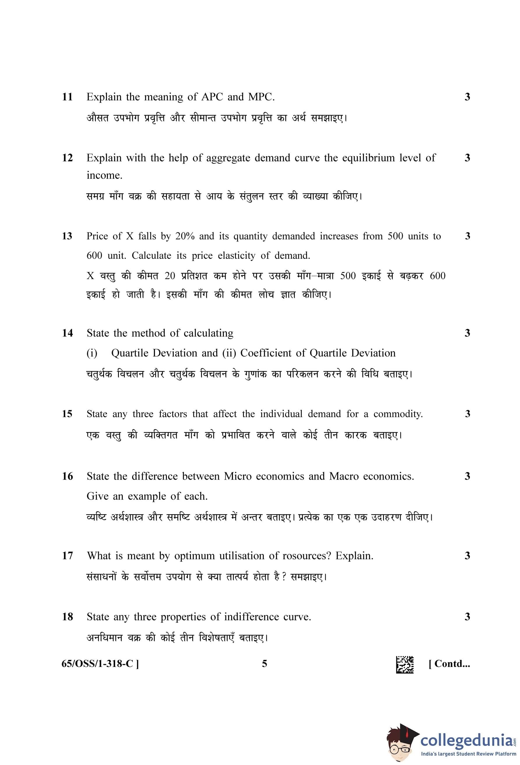 NIOS Class 12 Economics (Set C - OSS) Question Paper 2023 with Answer Key