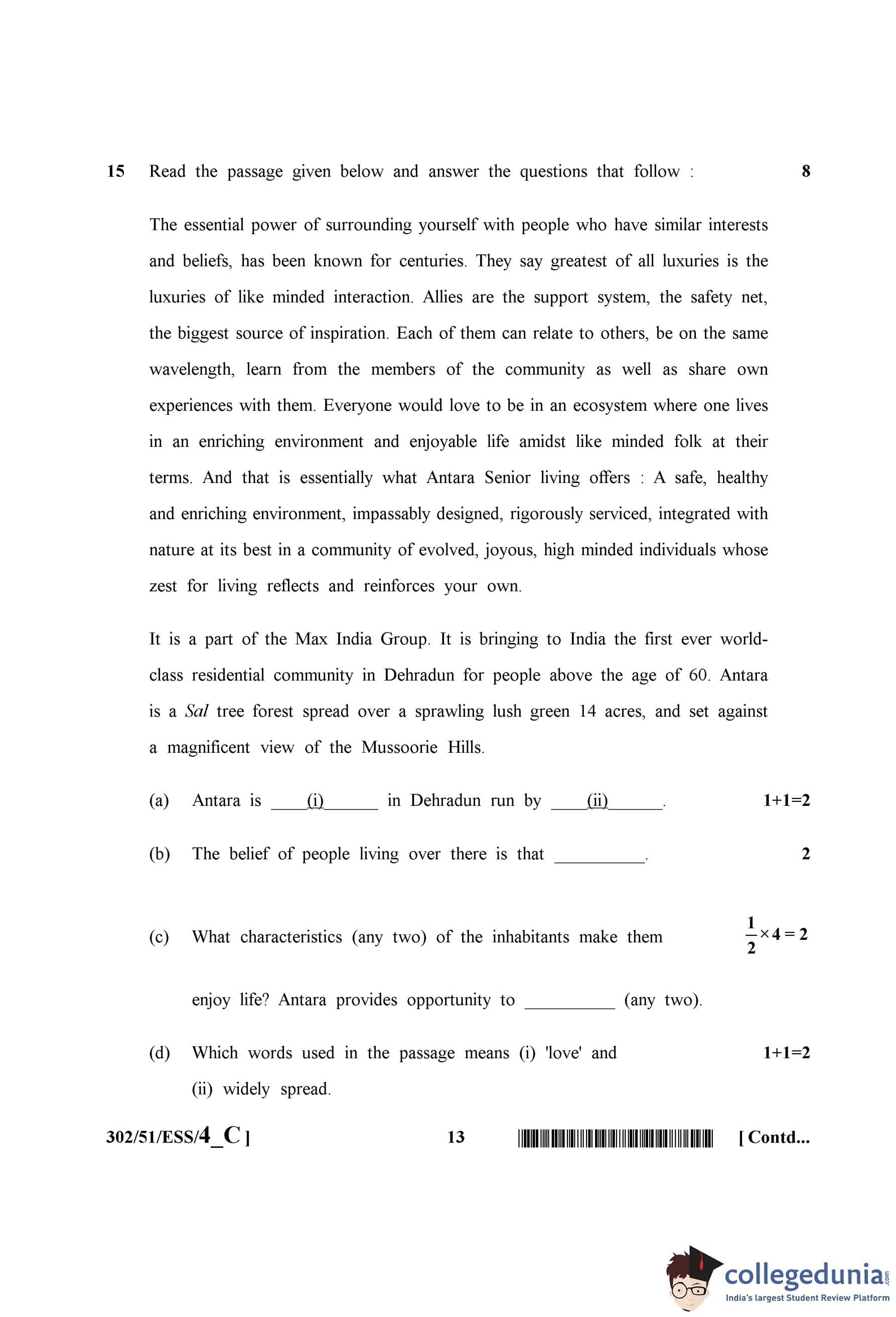 NIOS Class 12 English Compartment Question Paper 2015 with Answer Key