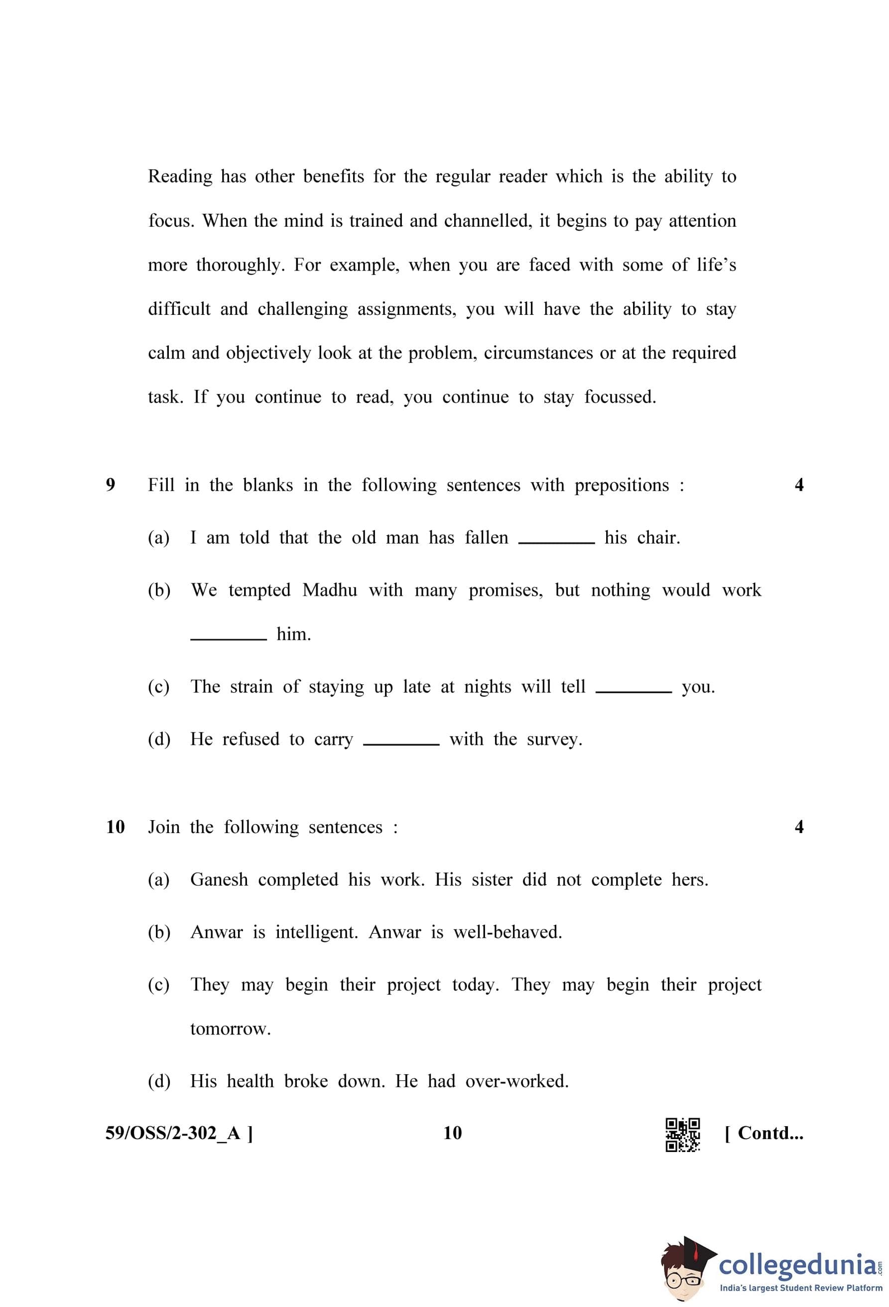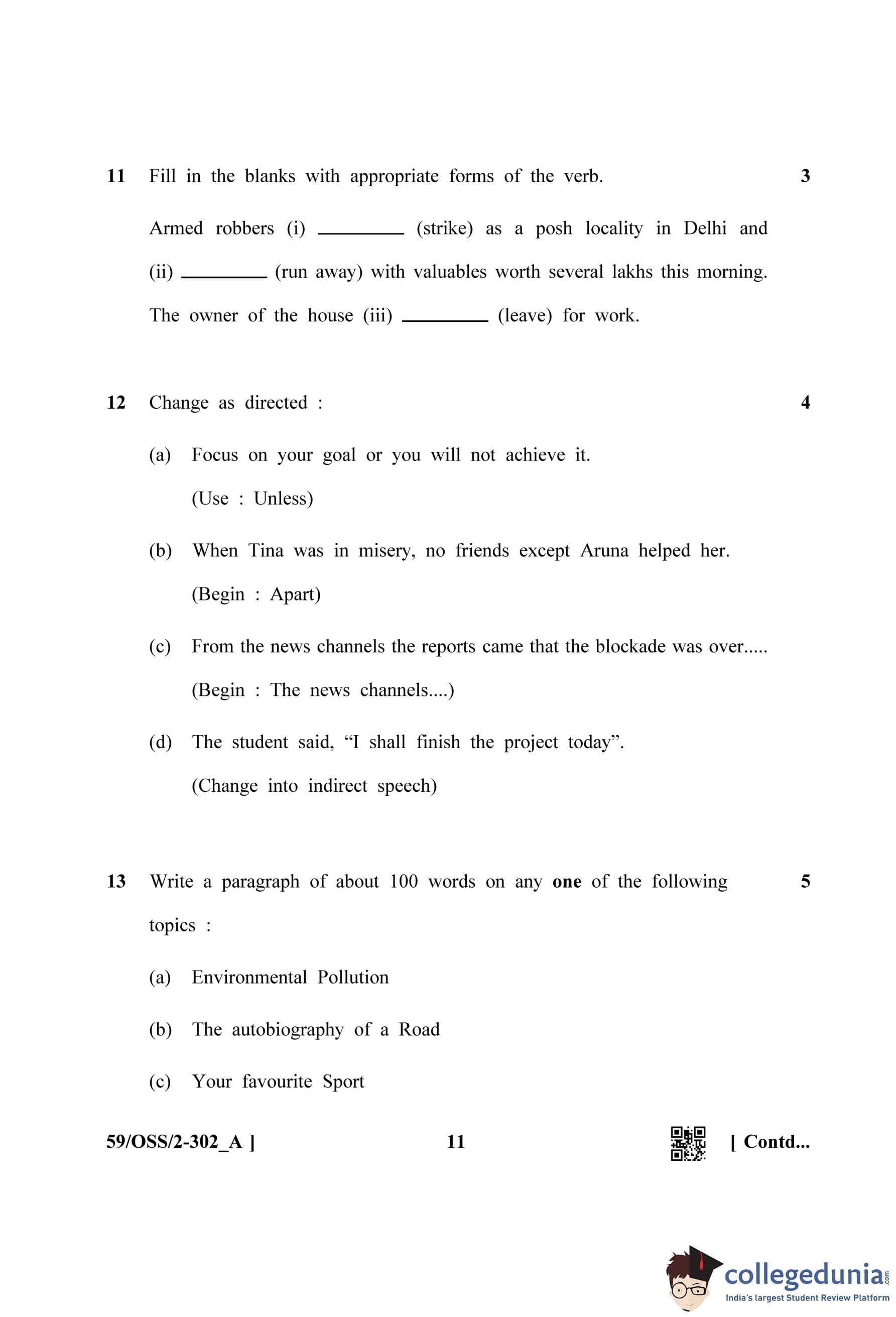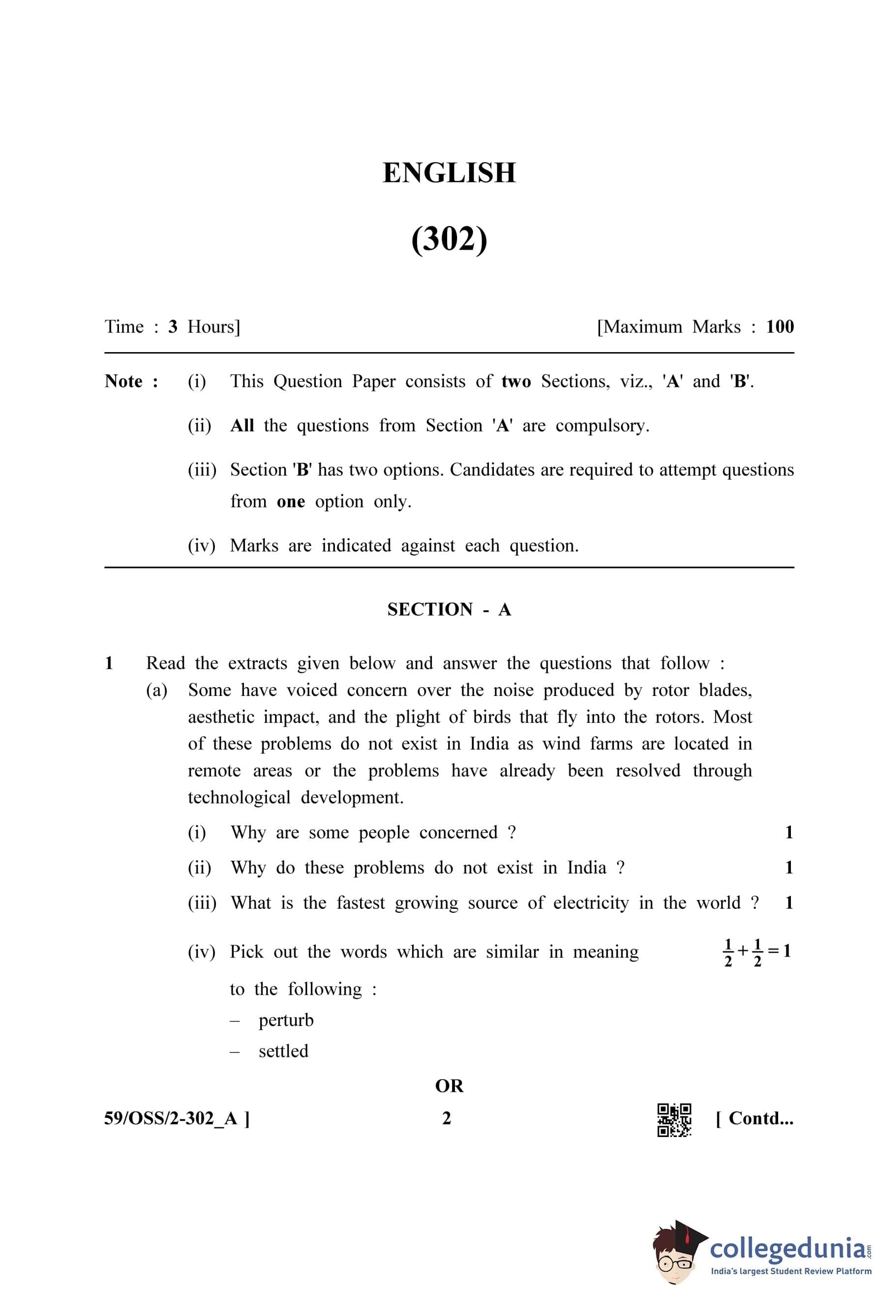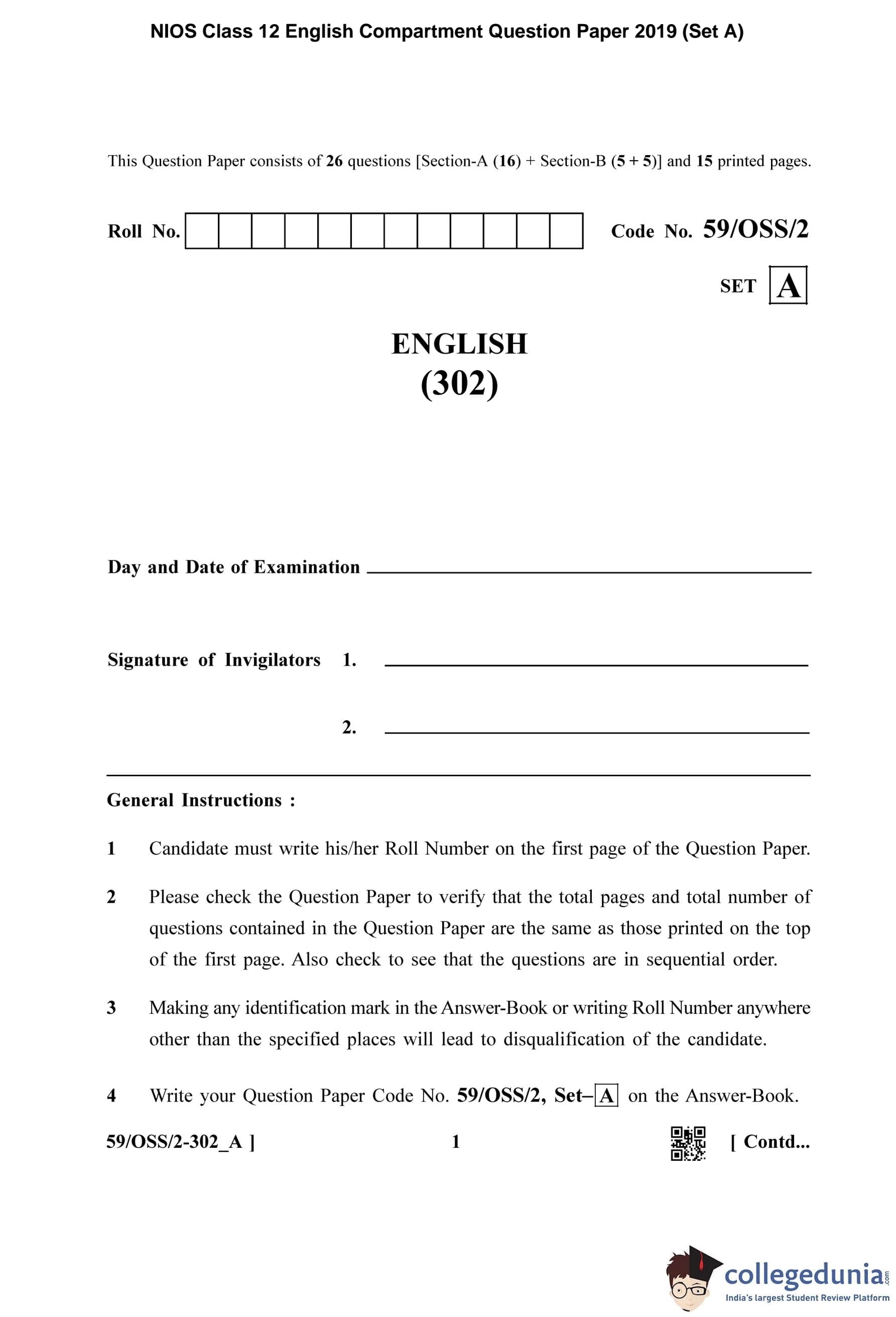 NIOS Class 12 English (Set A) Compartment Question Paper 2019 with Answer Key