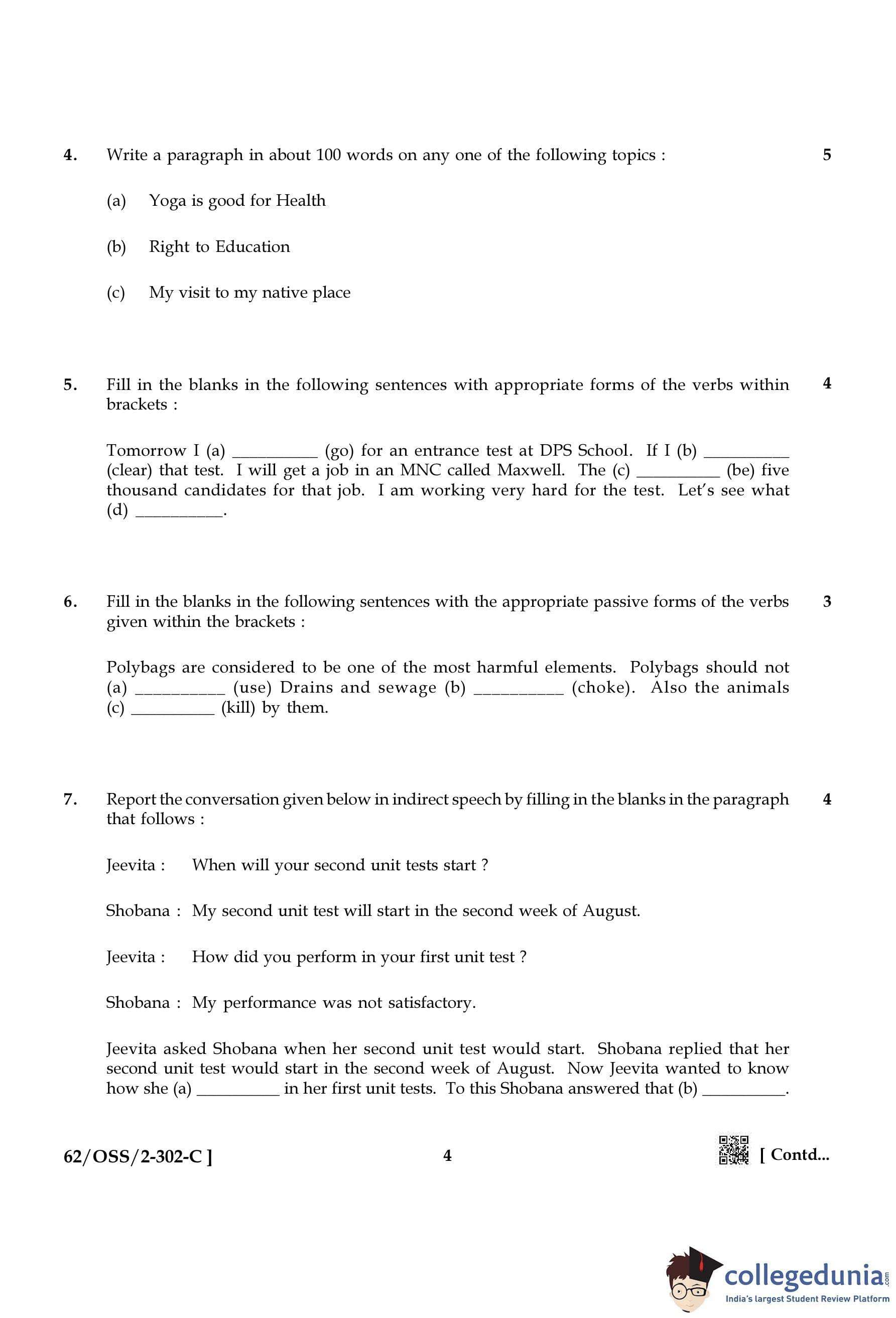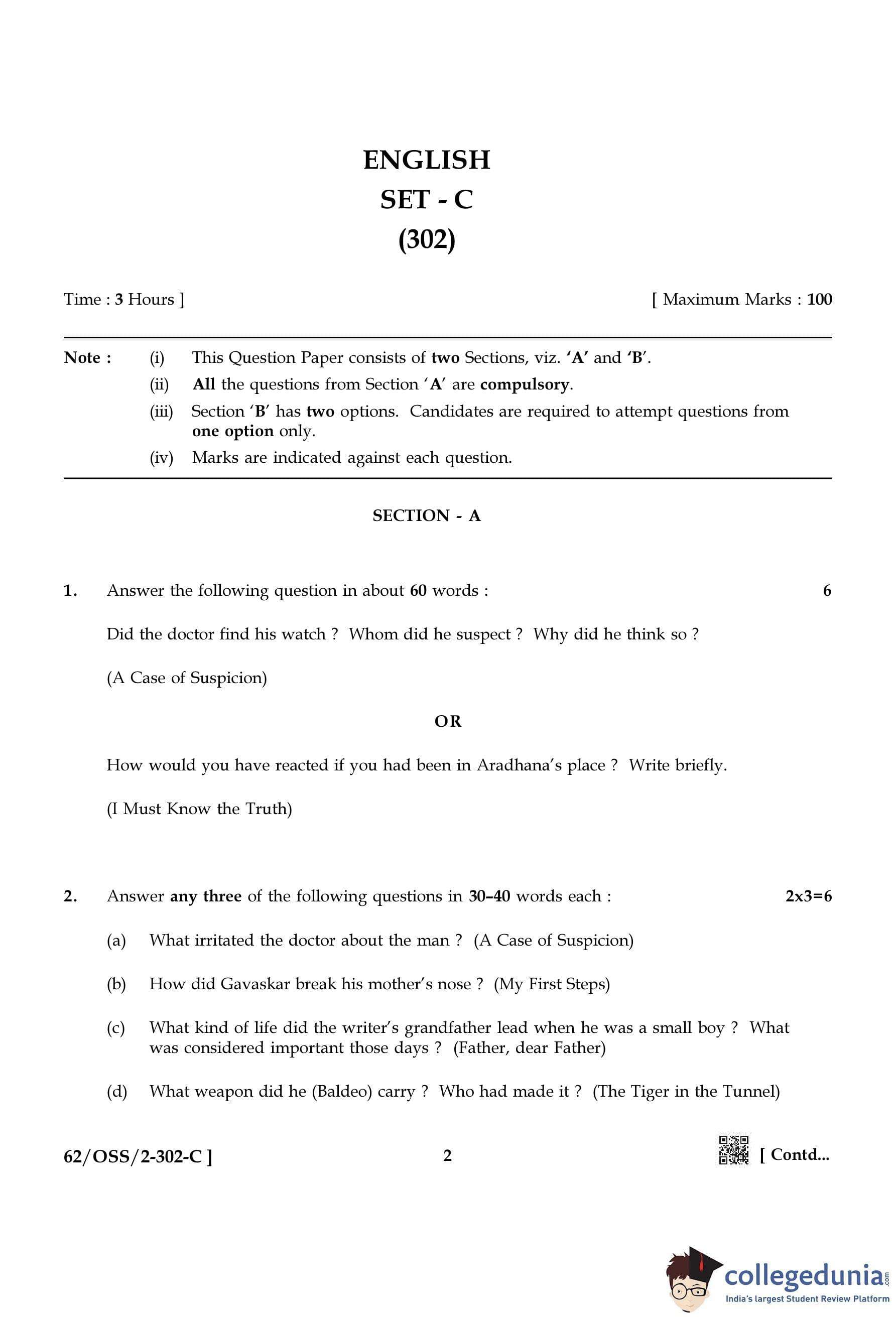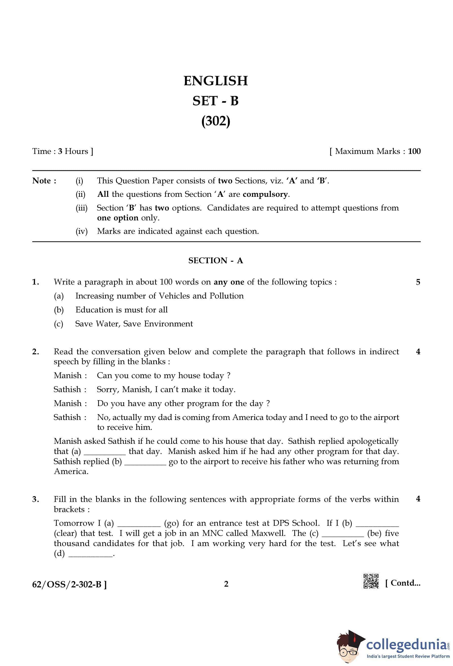 NIOS Class 12 English Compartment Question Paper 2021 with Answer Key