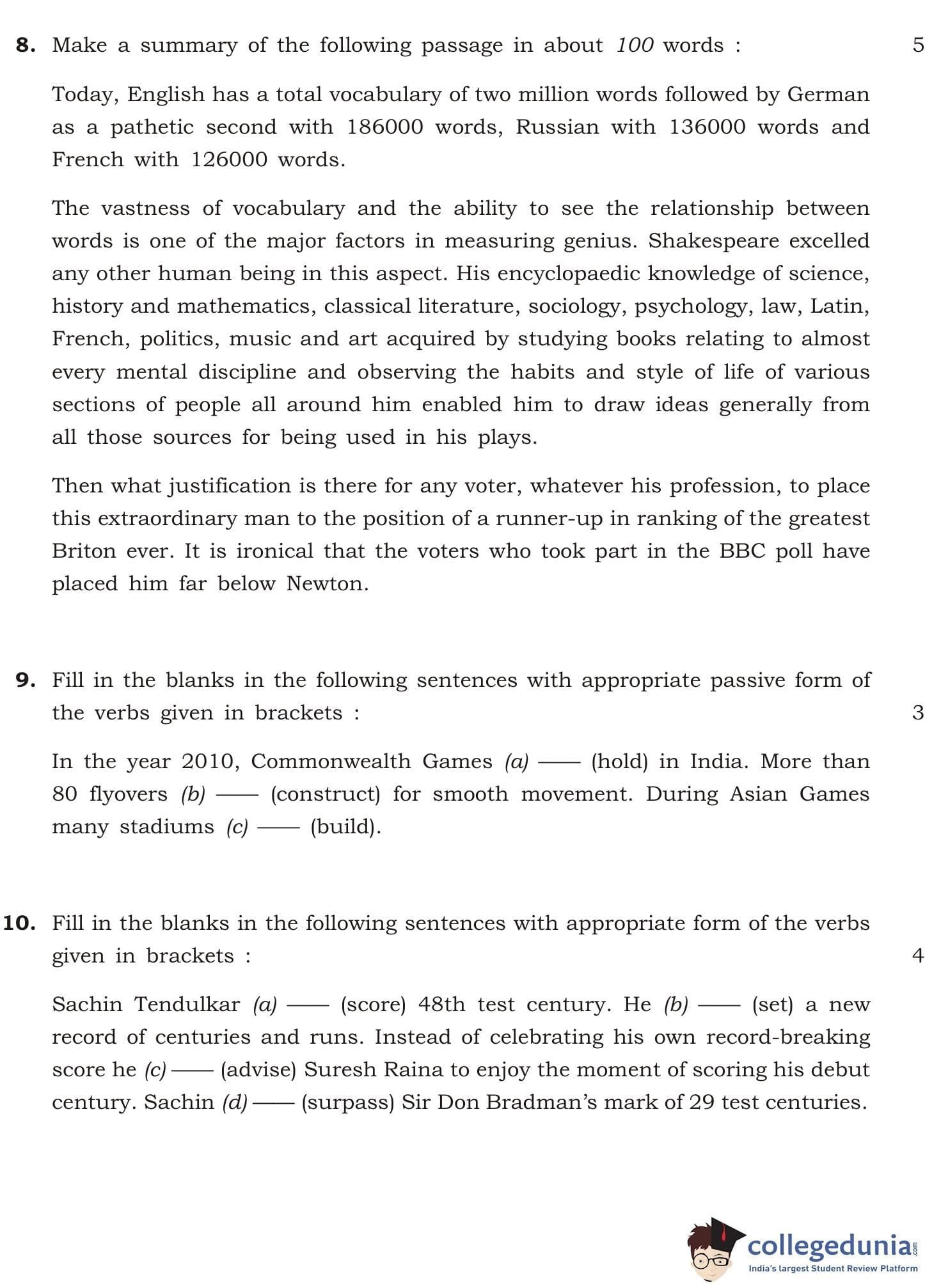 NIOS Class 12 English Question Paper 2011 with Answer Key