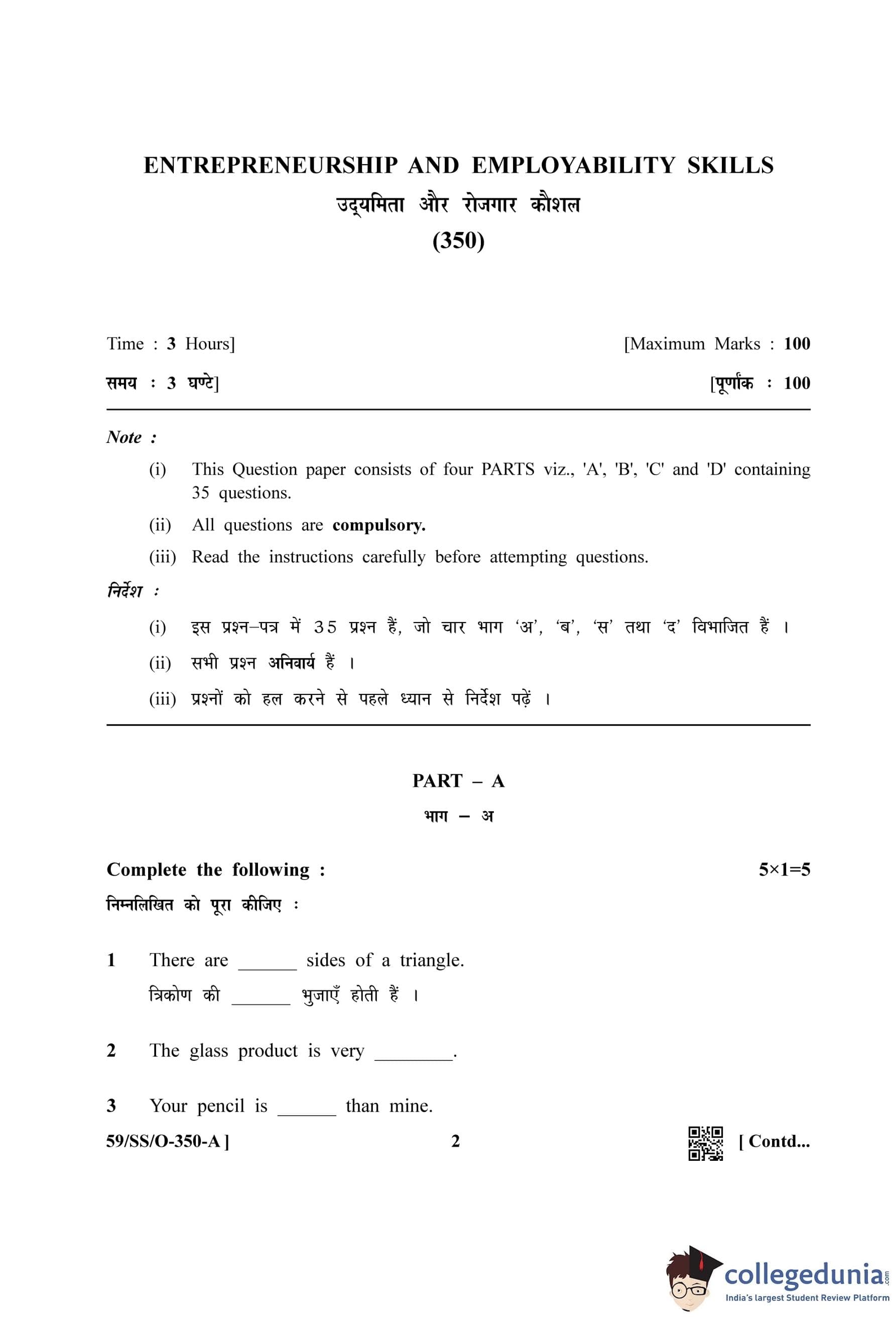 | NIOS Class 12 Entrepreneurship and Employability Skills Question Paper 2019 PDF | NIOS Class 12 Entrepreneurship and Employability Skills Answer Key 2019 PDF |