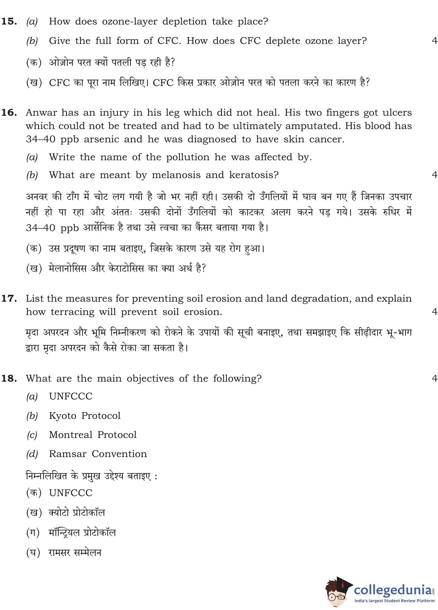 NIOS Class 12 Environmental Science Compartment Question Paper 2016 with Answer Key