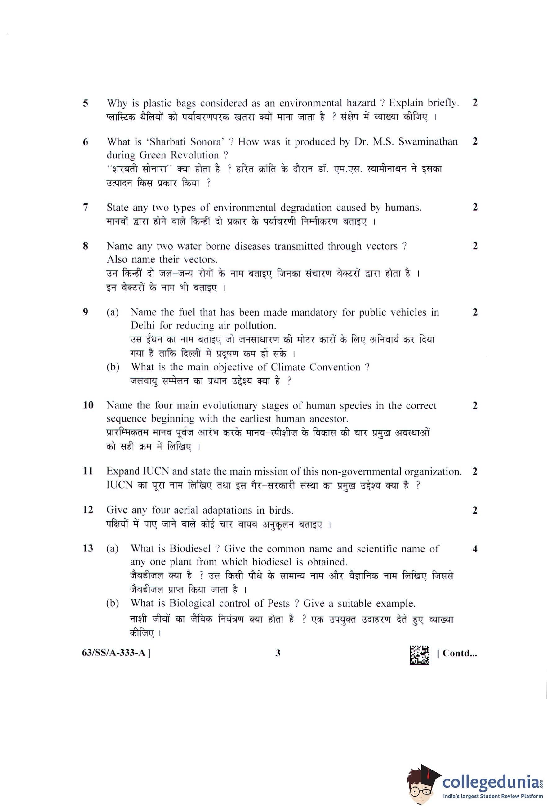 NIOS Class 12 Environmental Science Question Paper 2022 with Answer Key