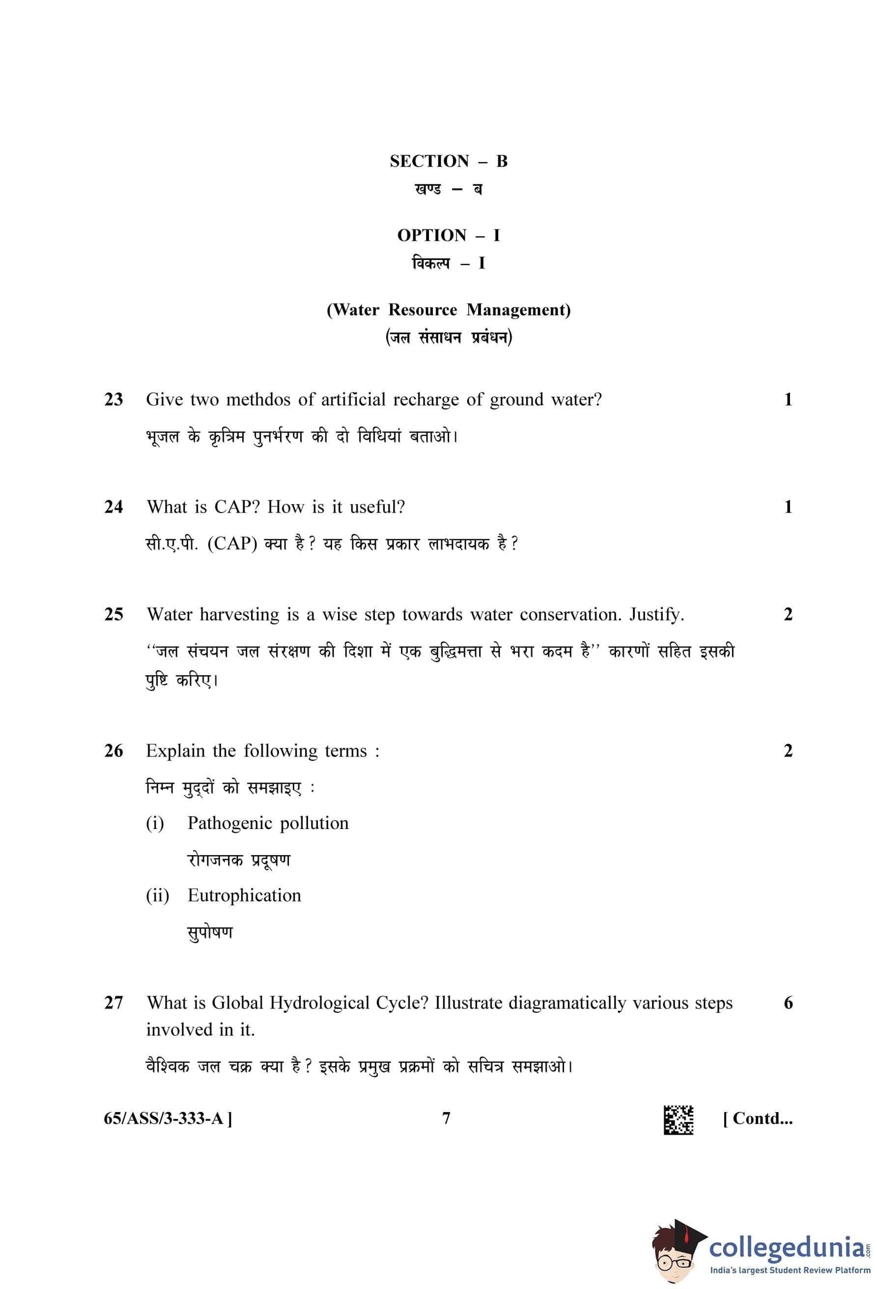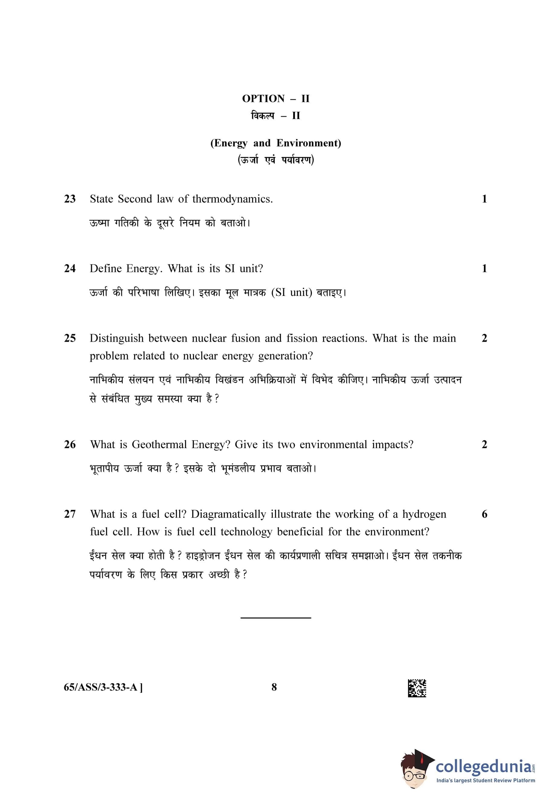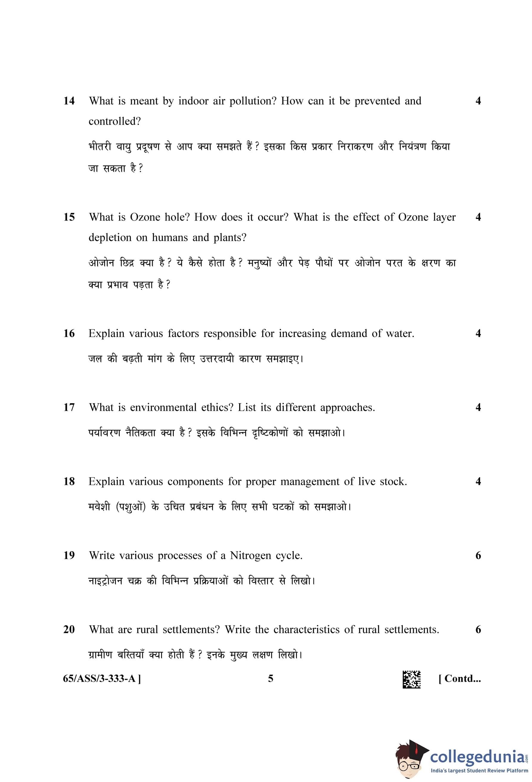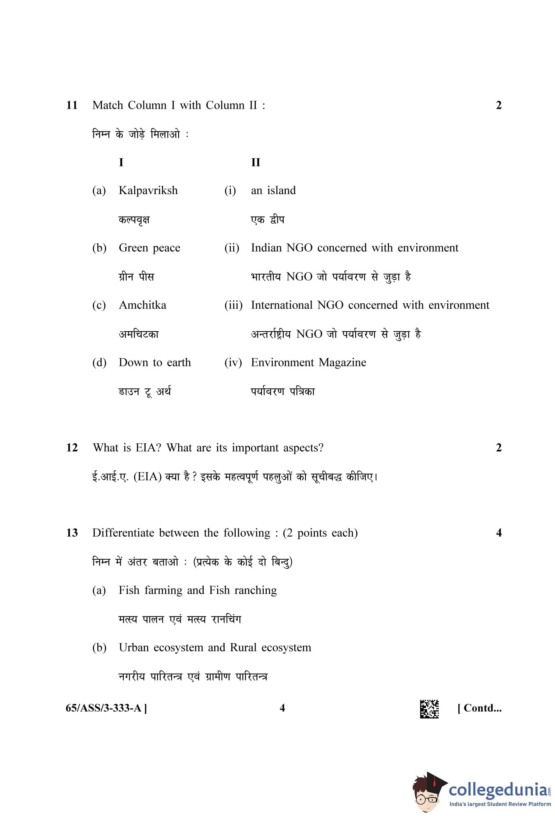 | NIOS Class 12 Environmental Science Question Paper 2023 | NIOS Class 12 Environmental Science Answer Key 2023 |