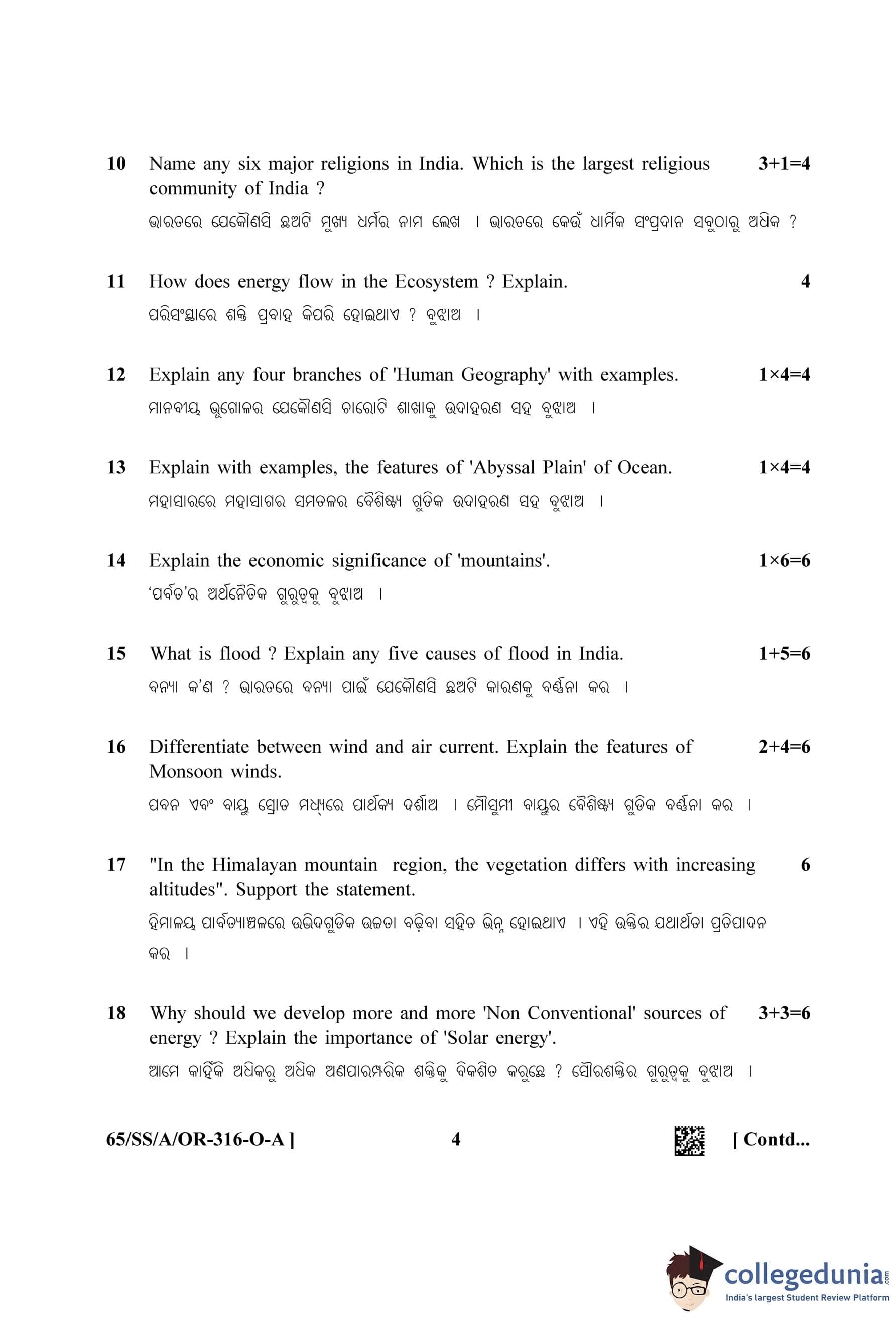 NIOS Class 12 Geography Oriya (Set A) Question Paper 2023 with Answer Key