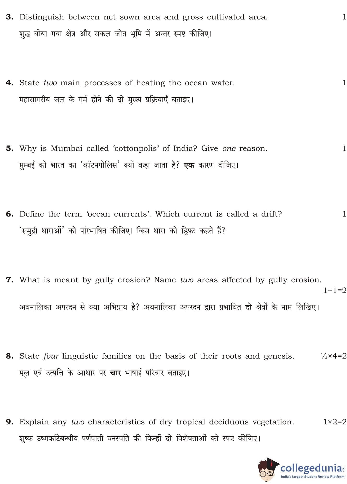 NIOS Class 12 Geography Question Paper 2012 with Answer Key