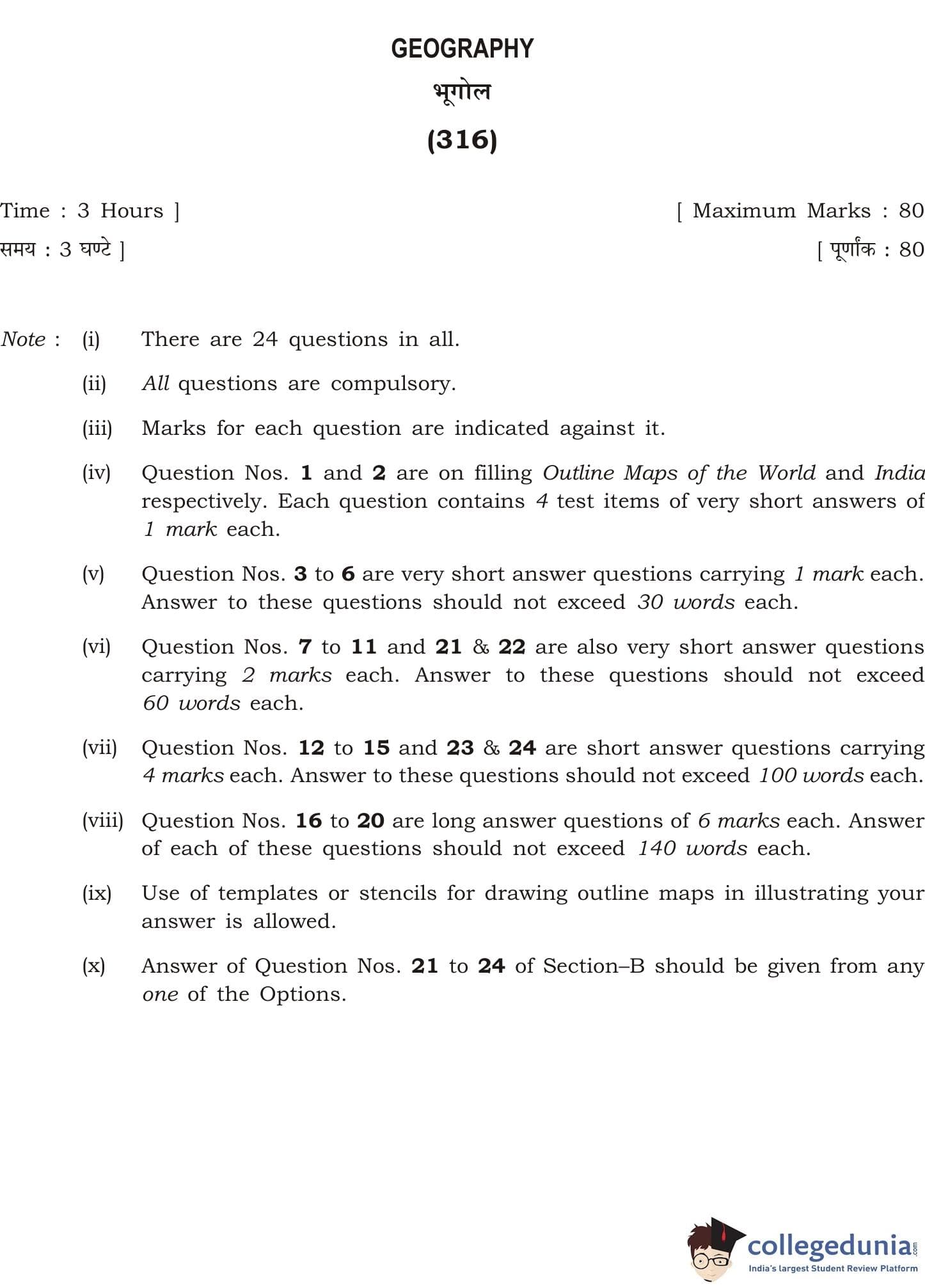 NIOS Class 12 Geography Question Paper 2015 with Answer Key pdf is available for download here. The exam was conducted by National Institute of Open Schooling on April 27, 2015 in the Afternoon Session 2:30 PM to 5:30 PM. The question paper comprised a total of 24 questions divided among 2 sections.
