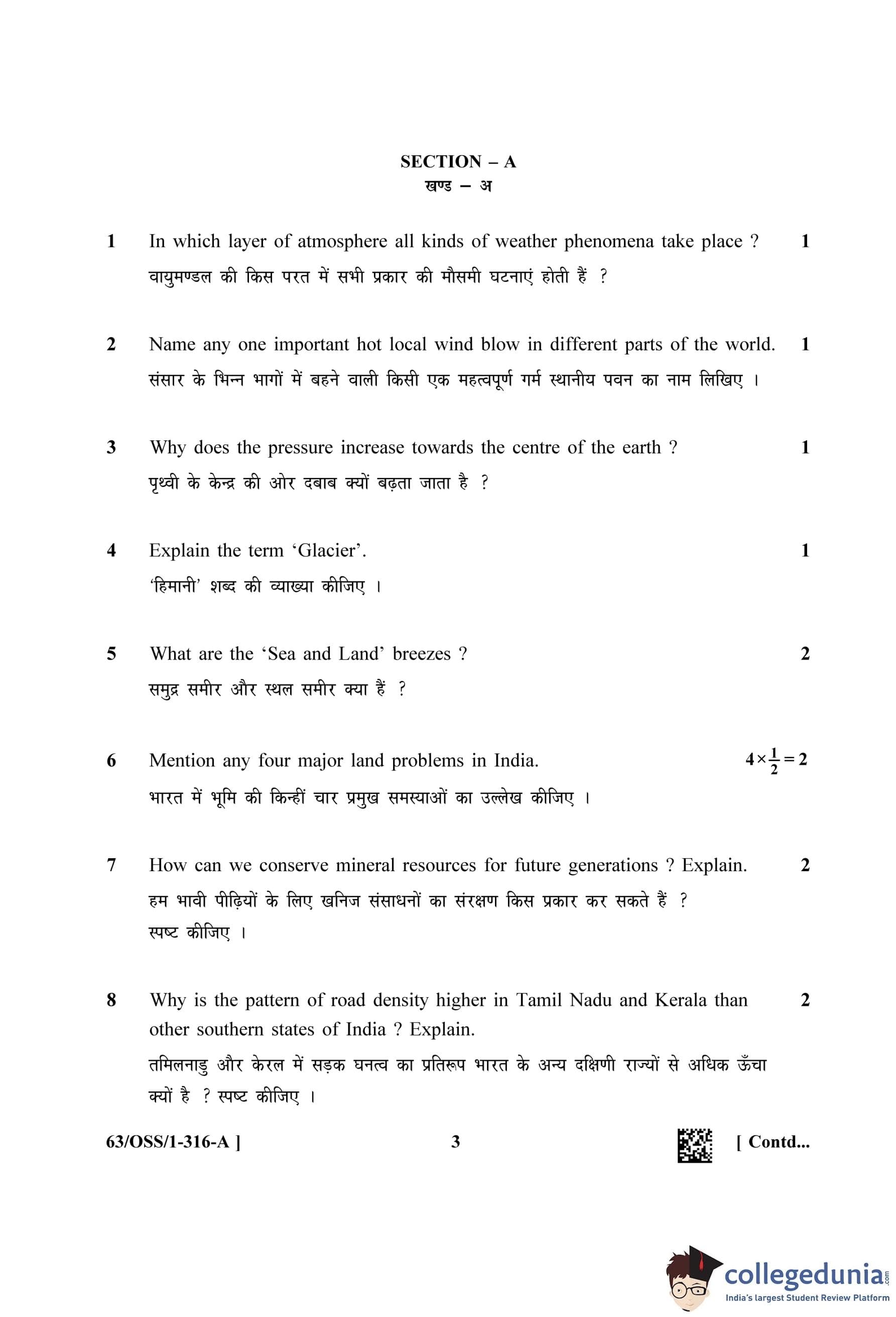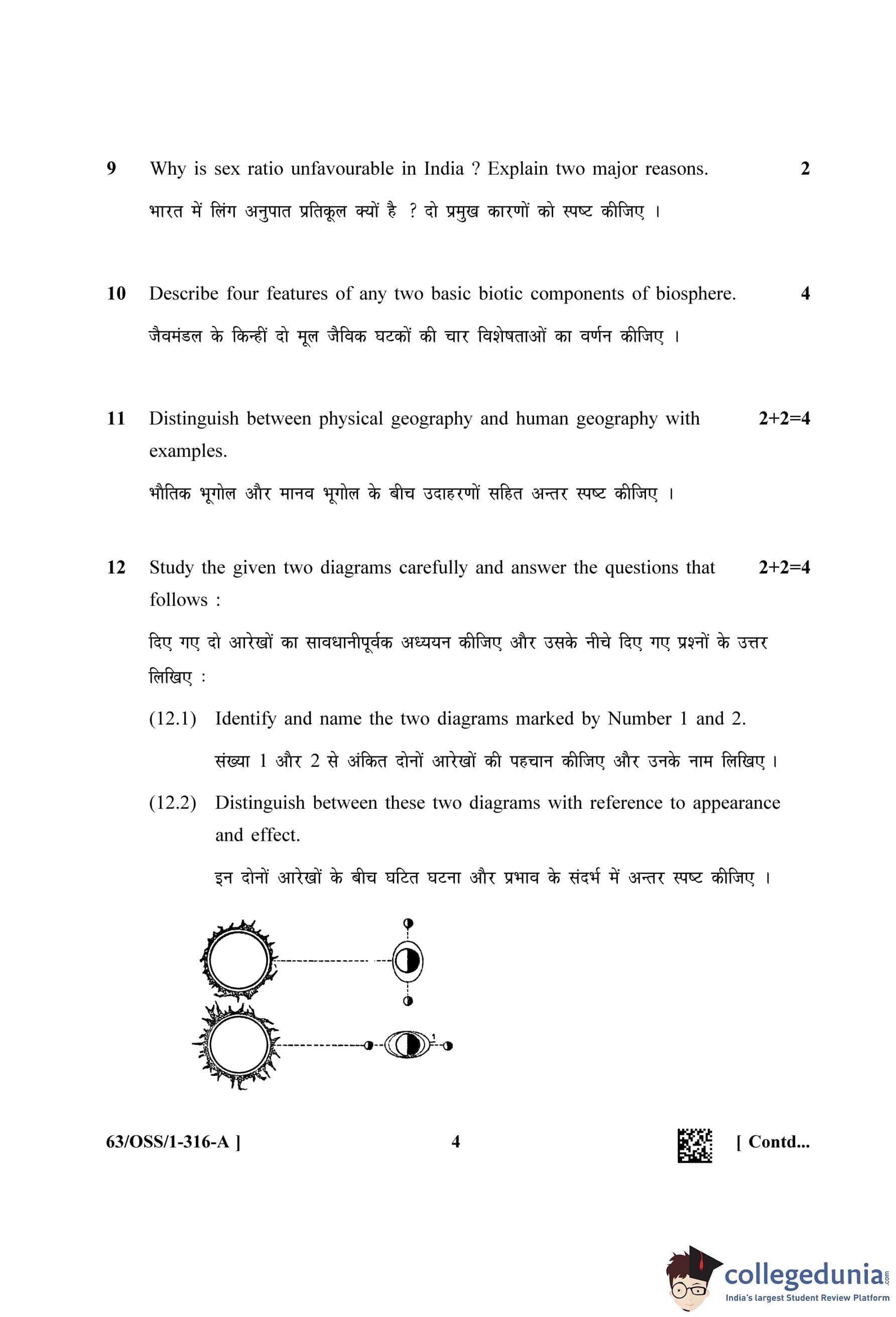 NIOS Class 12 Geography (Set A - OSS) Question Paper 2022 with Answer Key