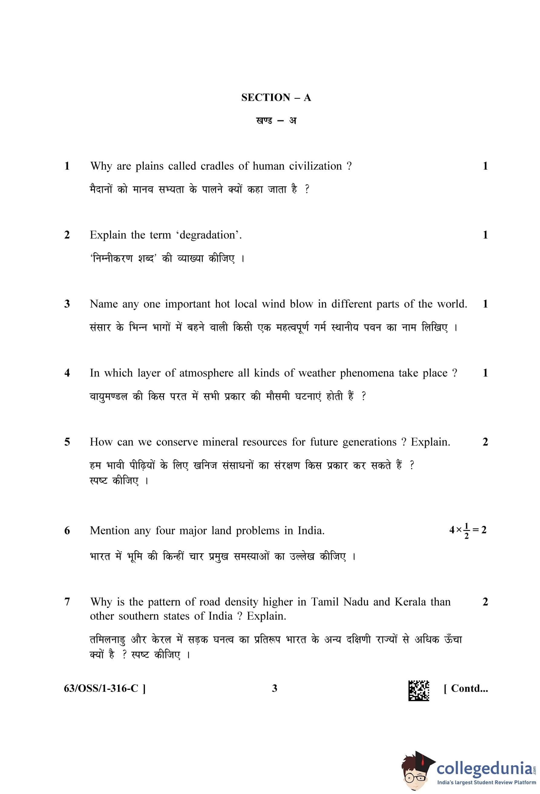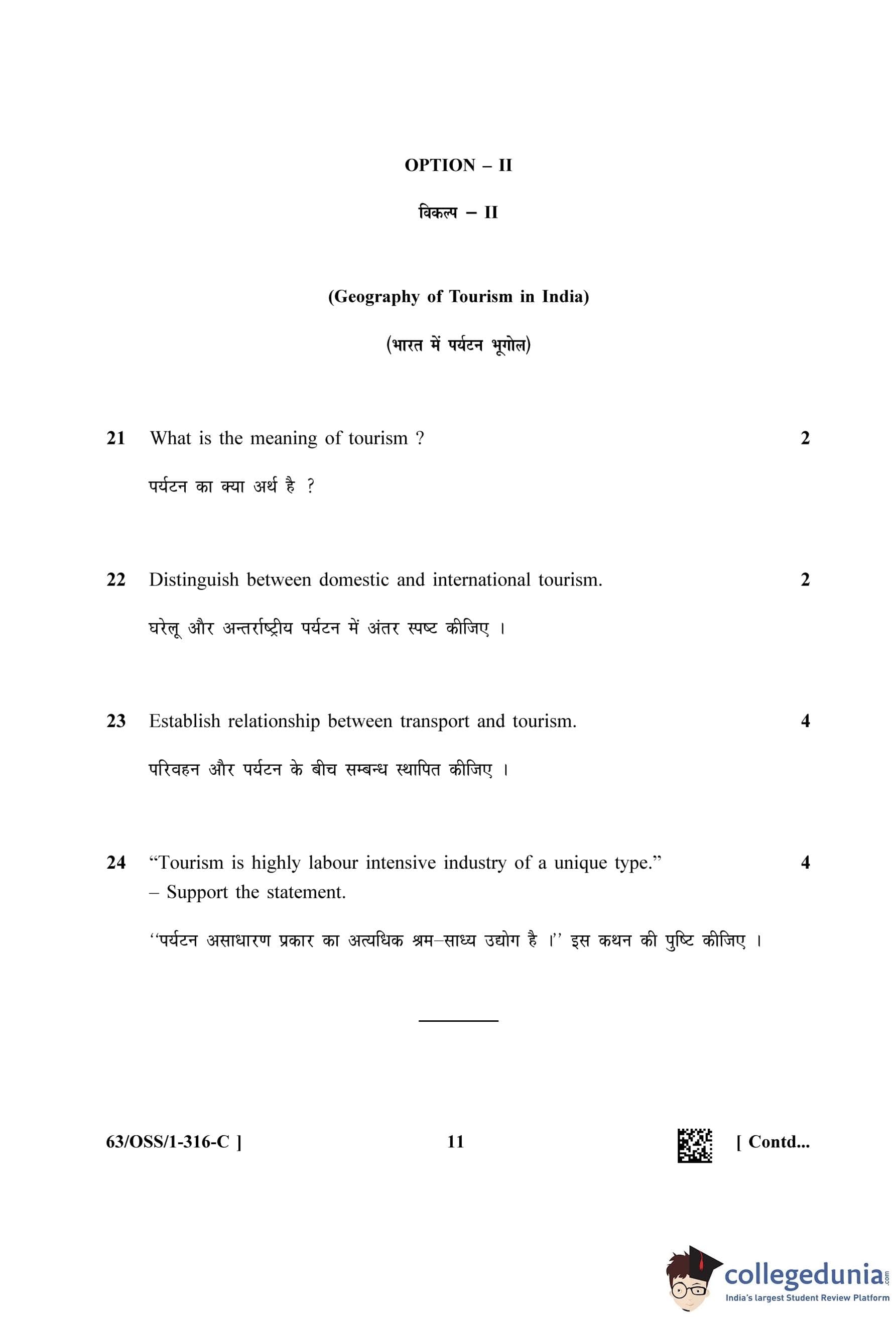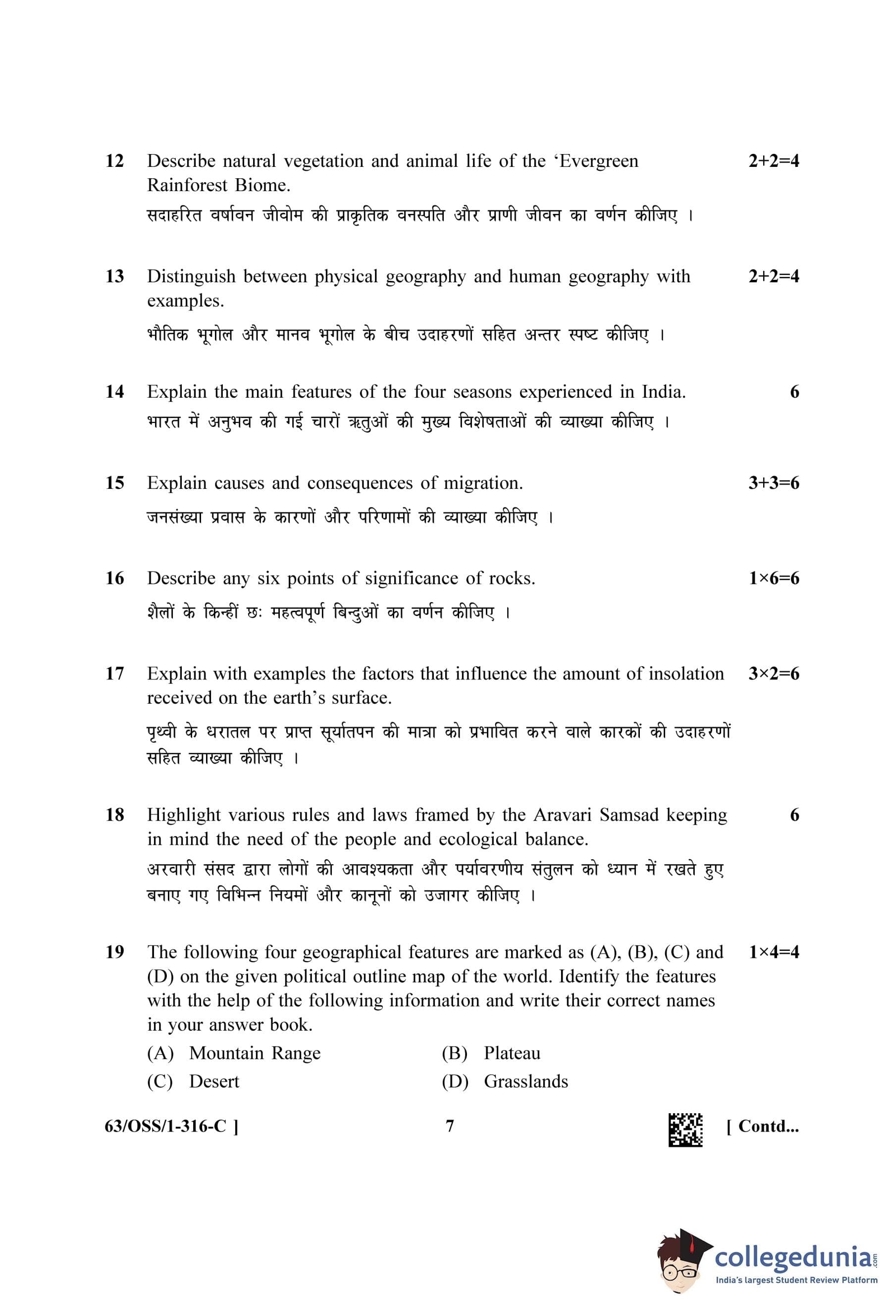 NIOS Class 12 Geography (Set C - OSS) Question Paper 2022 with Answer Key