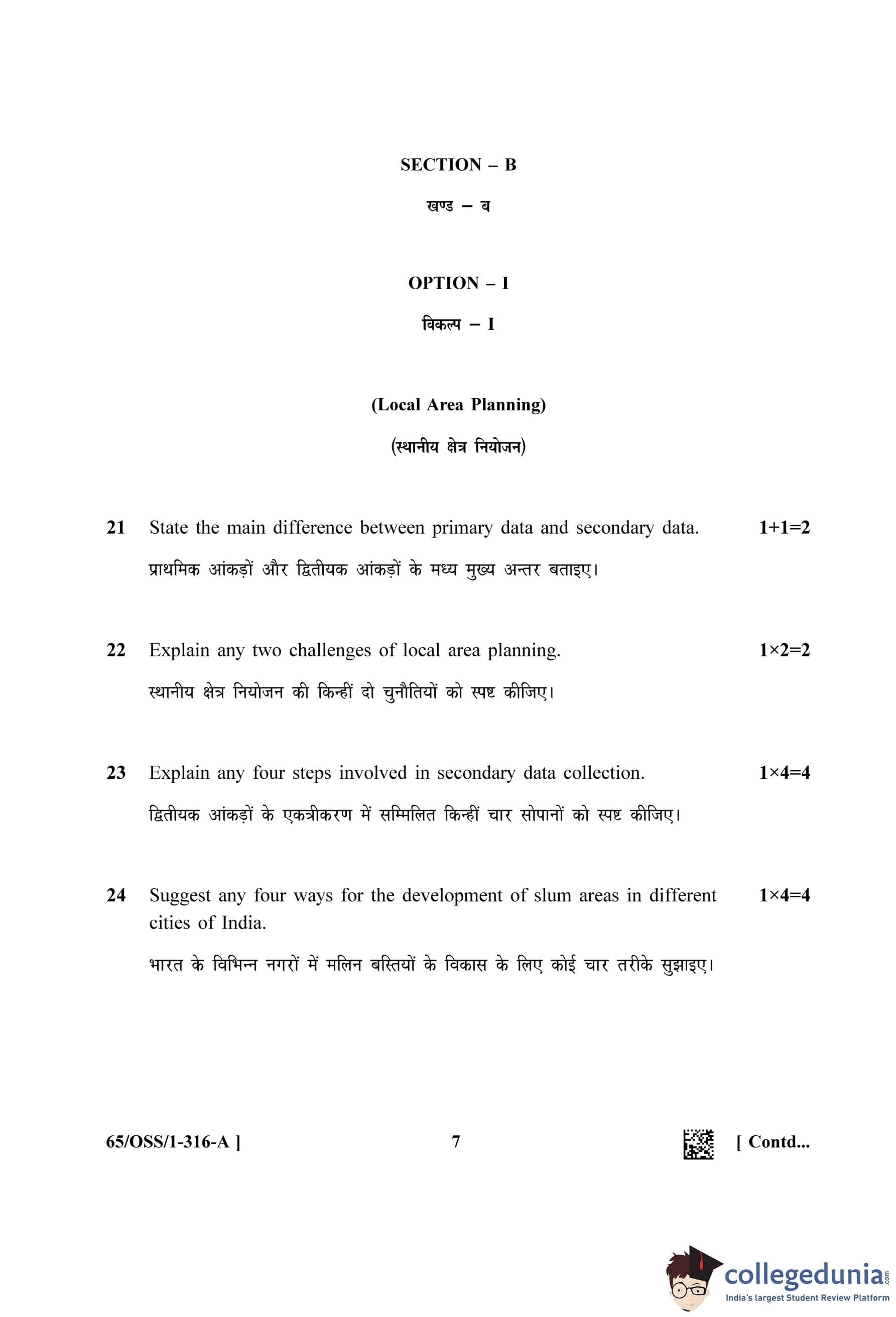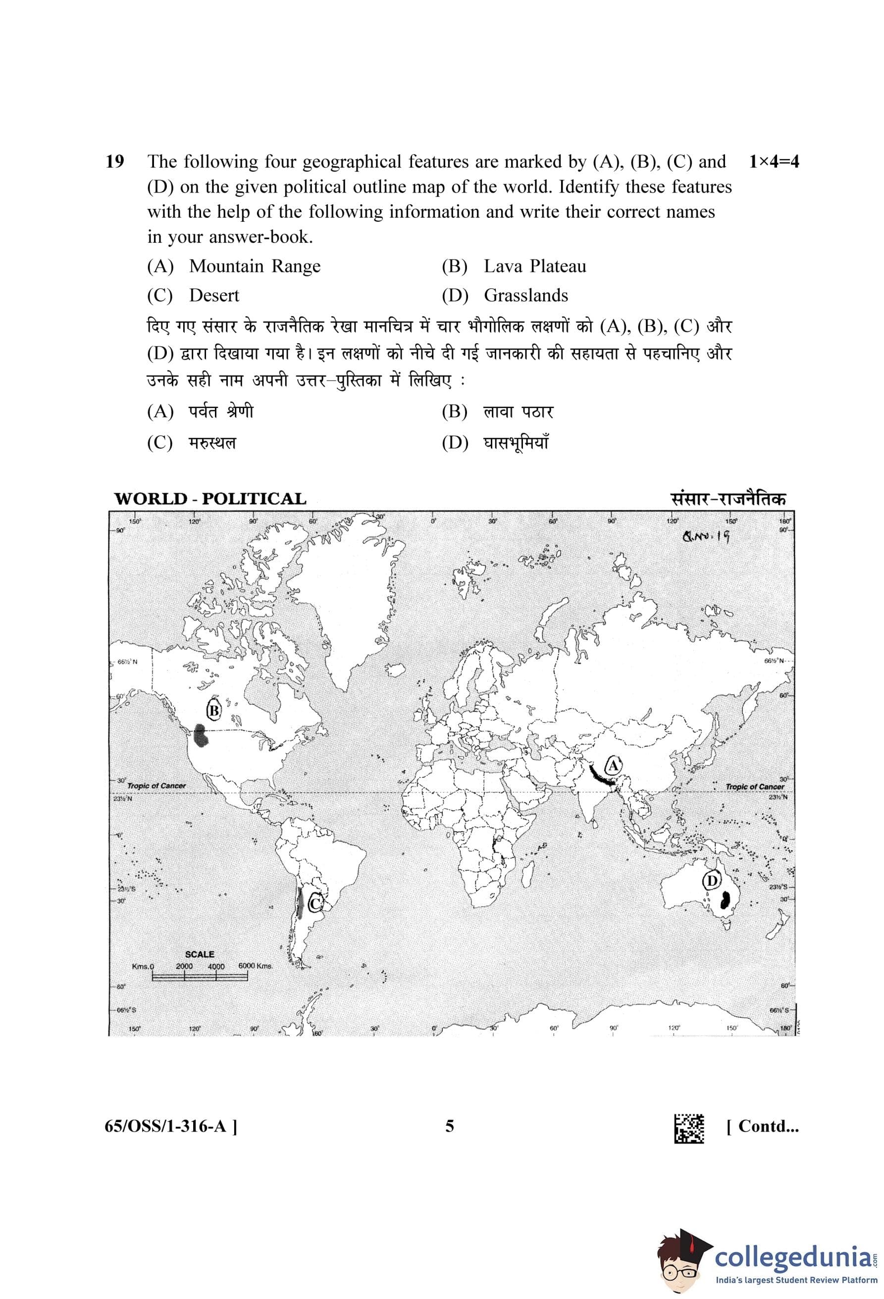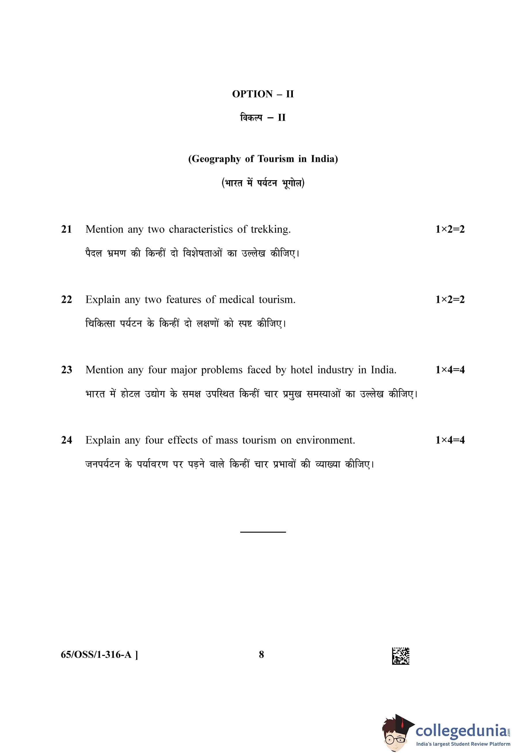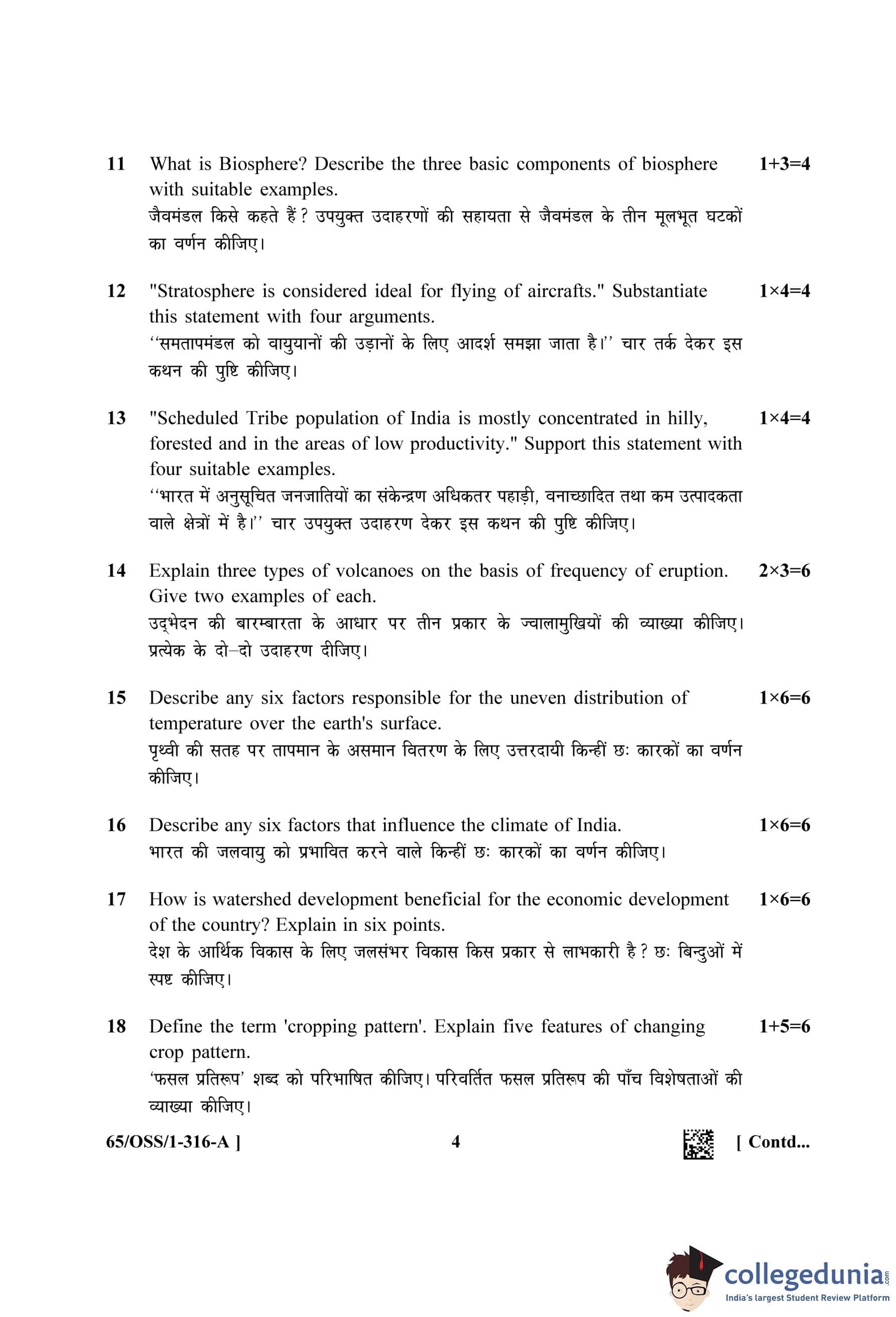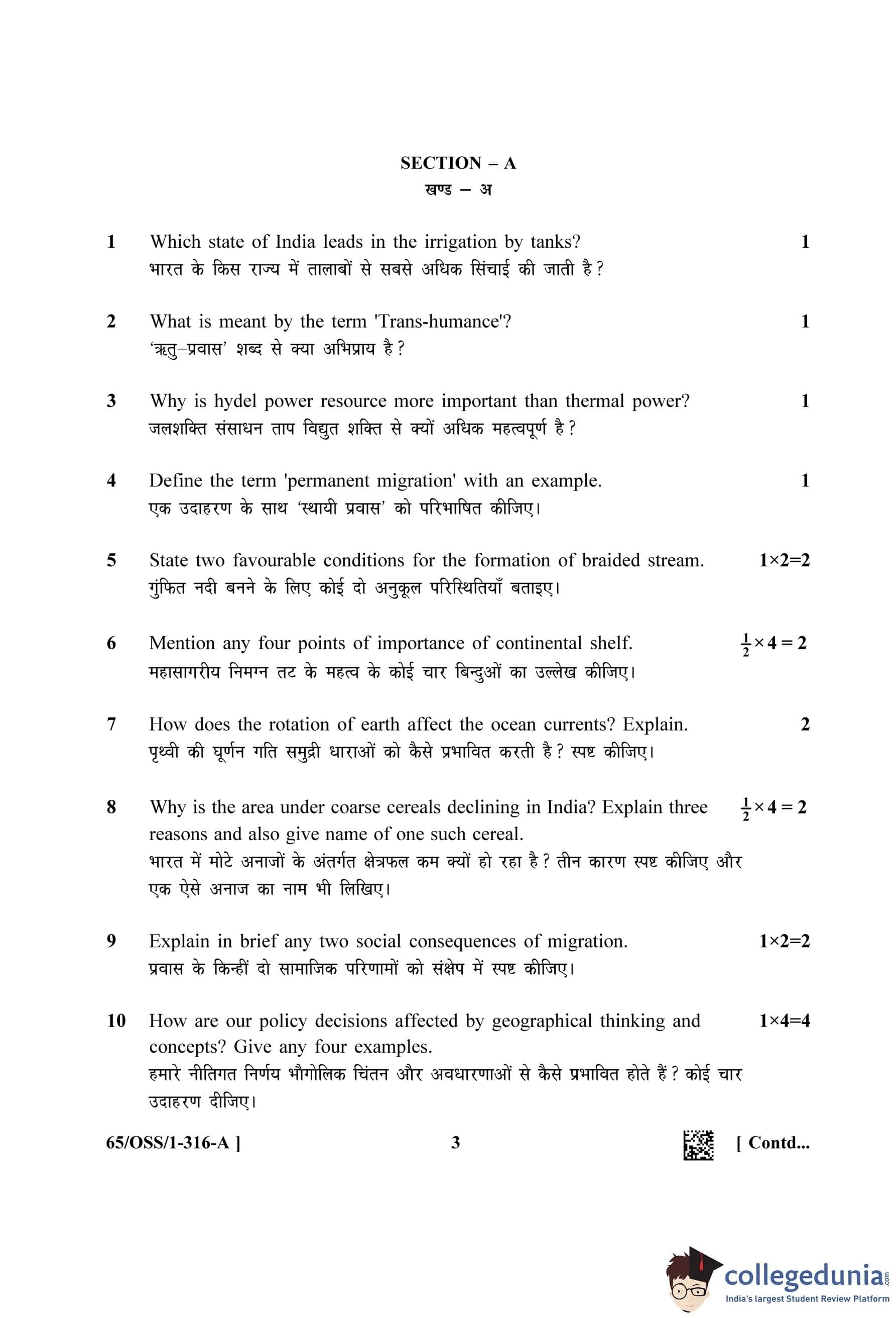 NIOS Class 12 Geography (Set A - OSS) Question Paper 2023 with Answer Key
