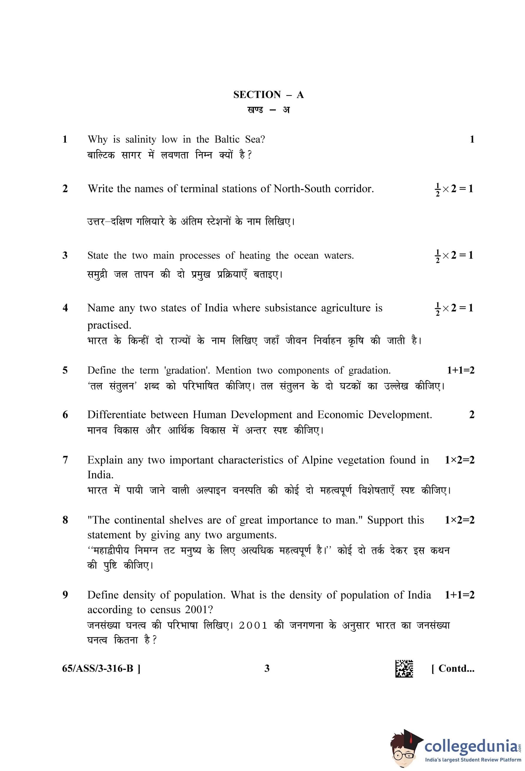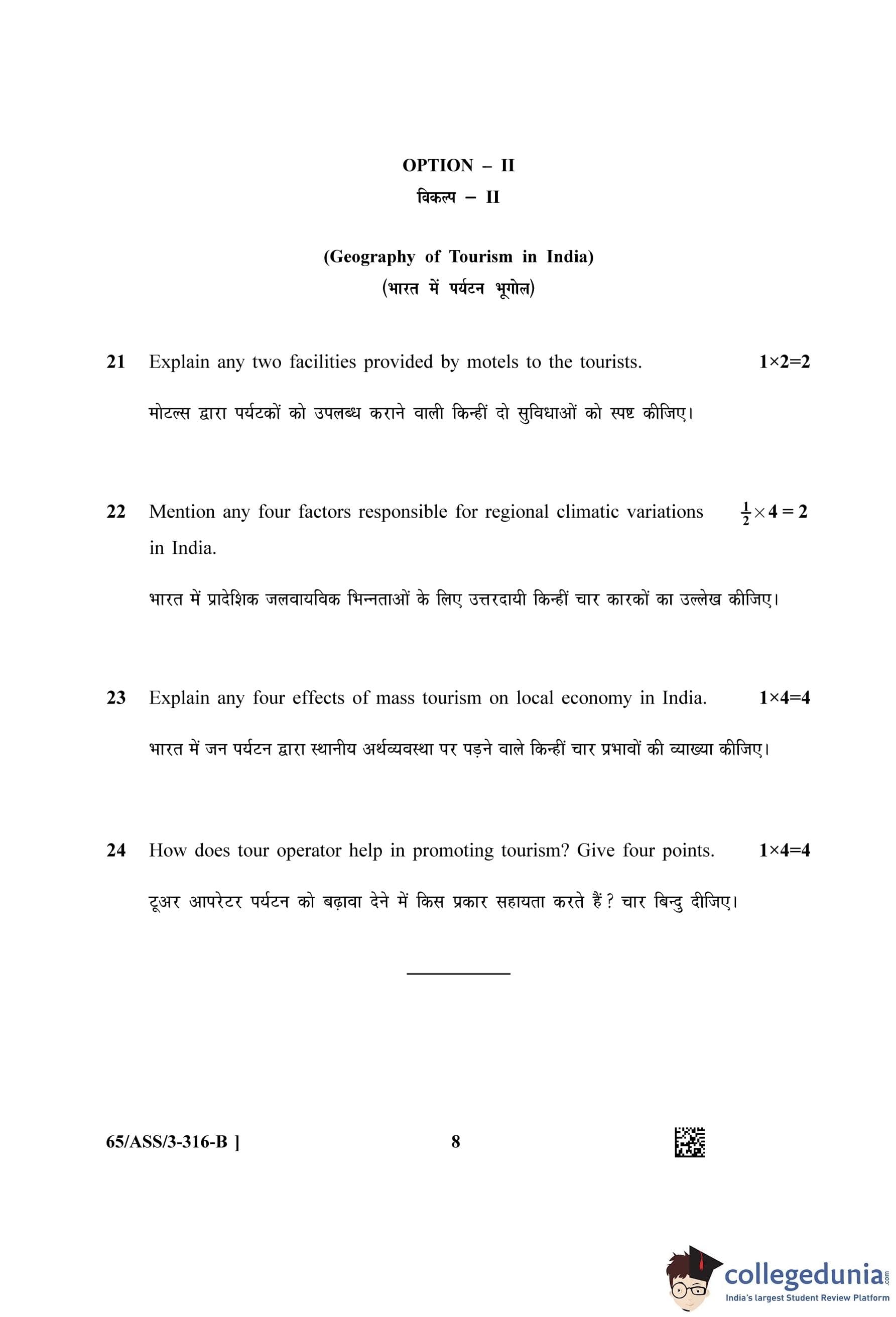 NIOS Class 12 Geography (Set B - ASS) Question Paper 2023 with Answer Key