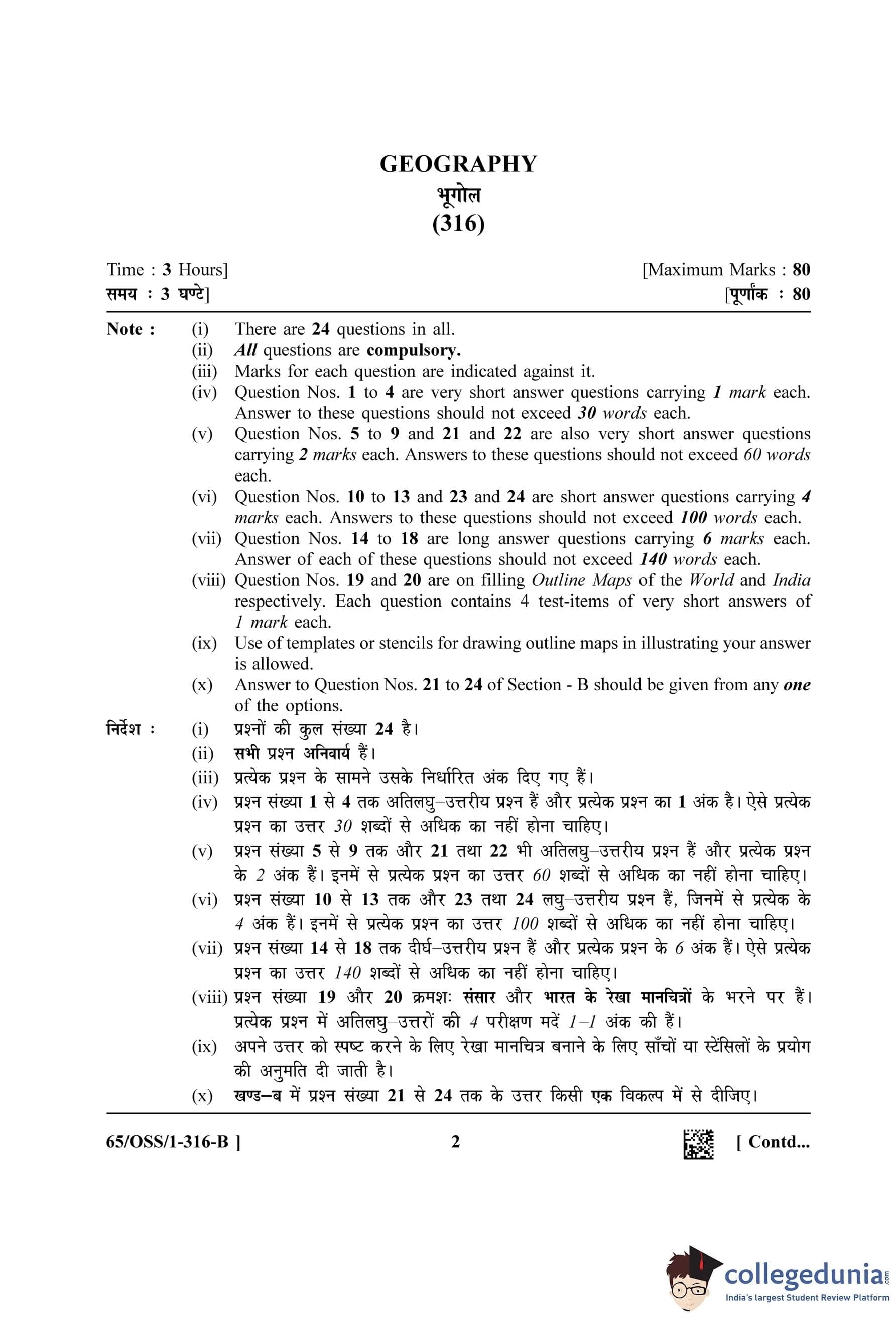 NIOS Class 12 Geography Question Paper 2023 with Answer Key pdf (Set B - OSS) is available for download here. The exam was conducted by National Institute of Open Schooling on April 29, 2023 in the Afternoon Session 2.30 PM to 5.30 PM. The question paper comprised a total of 28 questions divided among 2 sections.