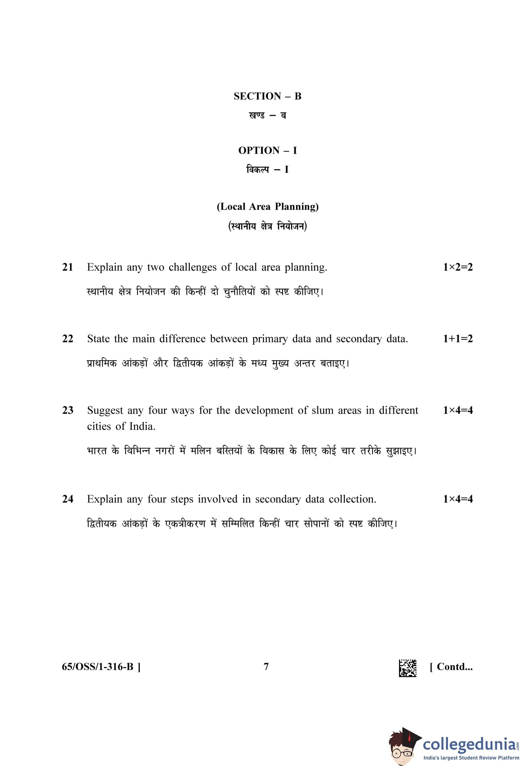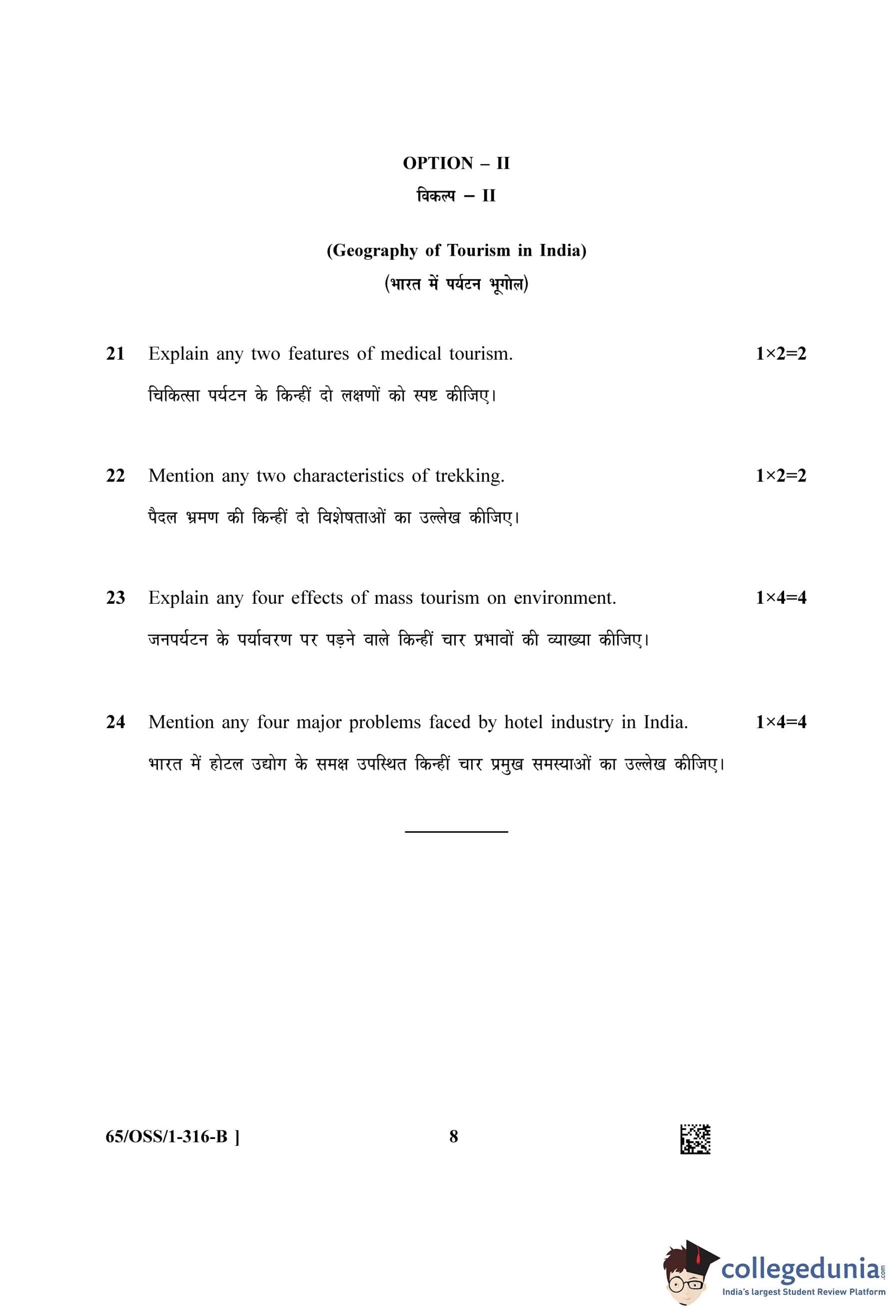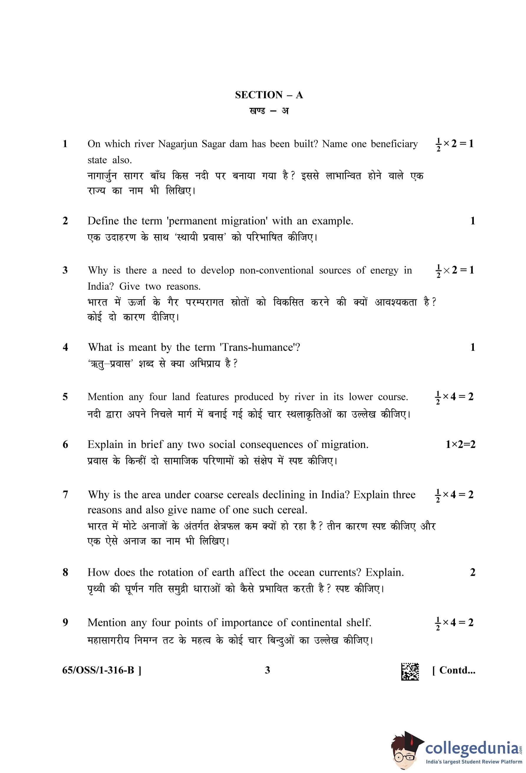 NIOS Class 12 Geography (Set B - OSS) Question Paper 2023 with Answer Key