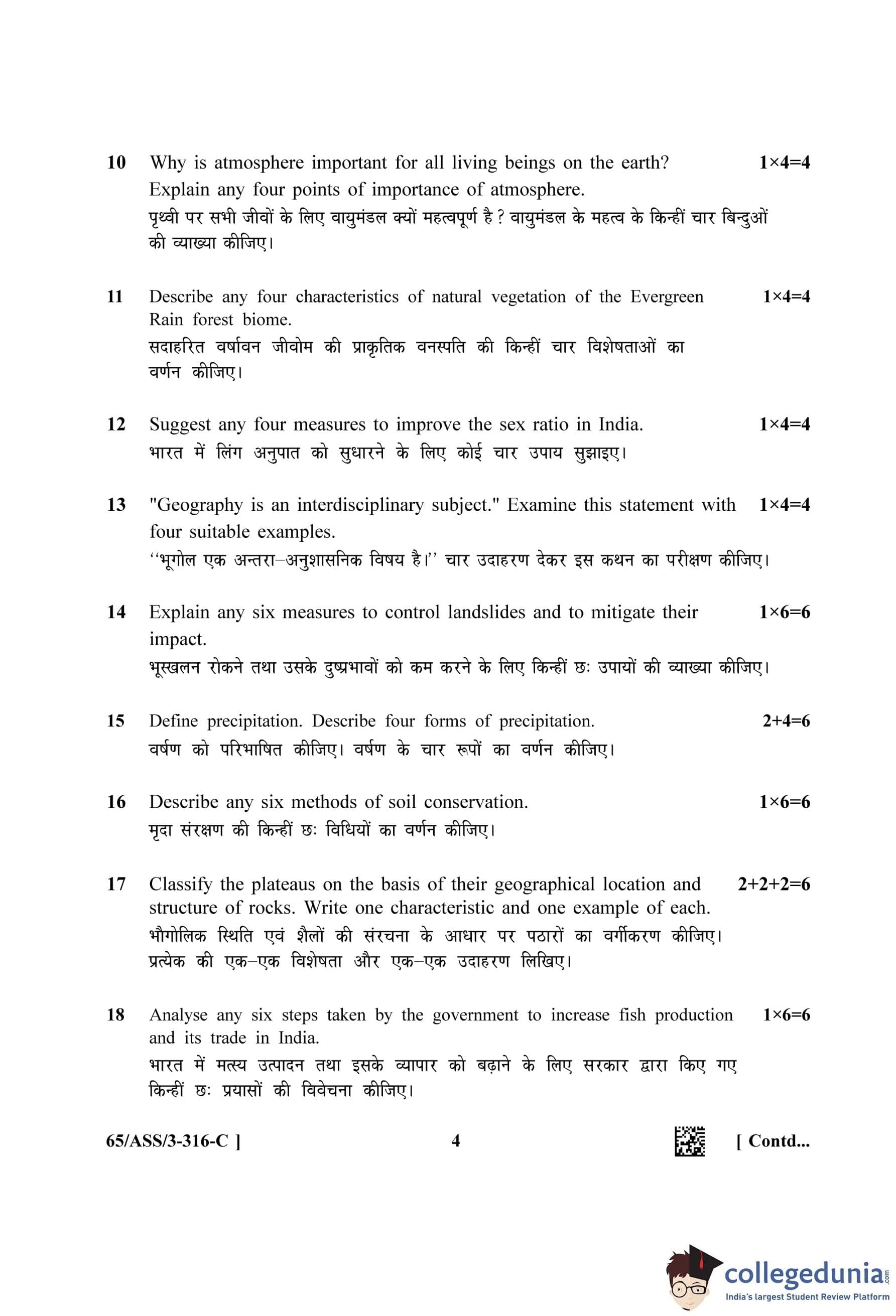 NIOS Class 12 Geography Question Paper 2023 with Answer Key pdf (Set C - ASS) is available for download here. The exam was conducted by National Institute of Open Schooling on April 29, 2023 in the Afternoon Session 2.30 PM to 5.30 PM. The question paper comprised a total of 28 questions divided among 2 sections.