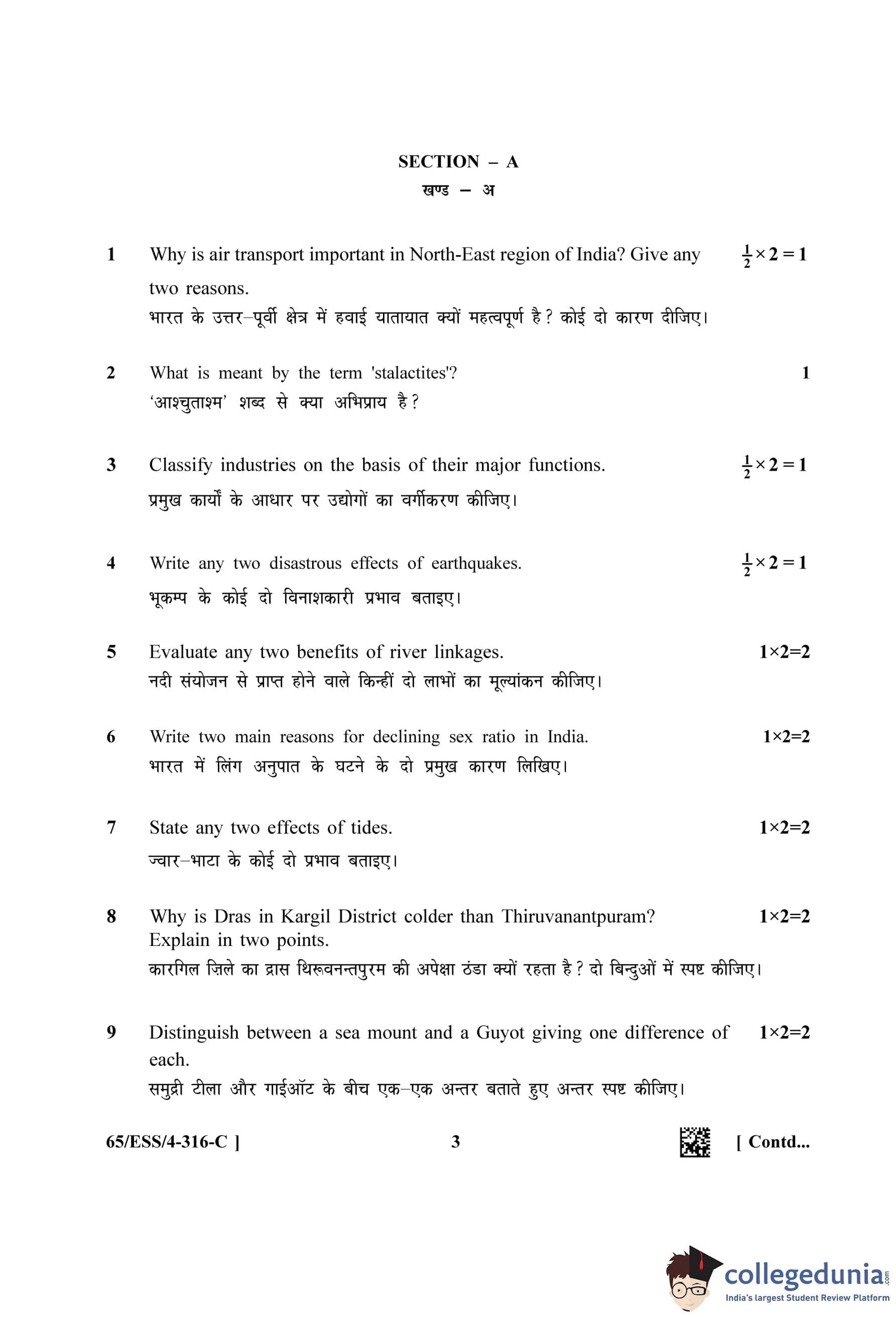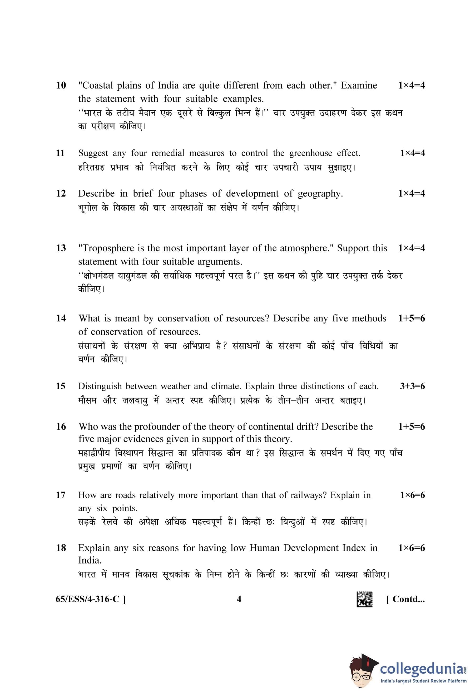 NIOS Class 12 Geography (Set C - ESS) Question Paper 2023 with Answer Key
